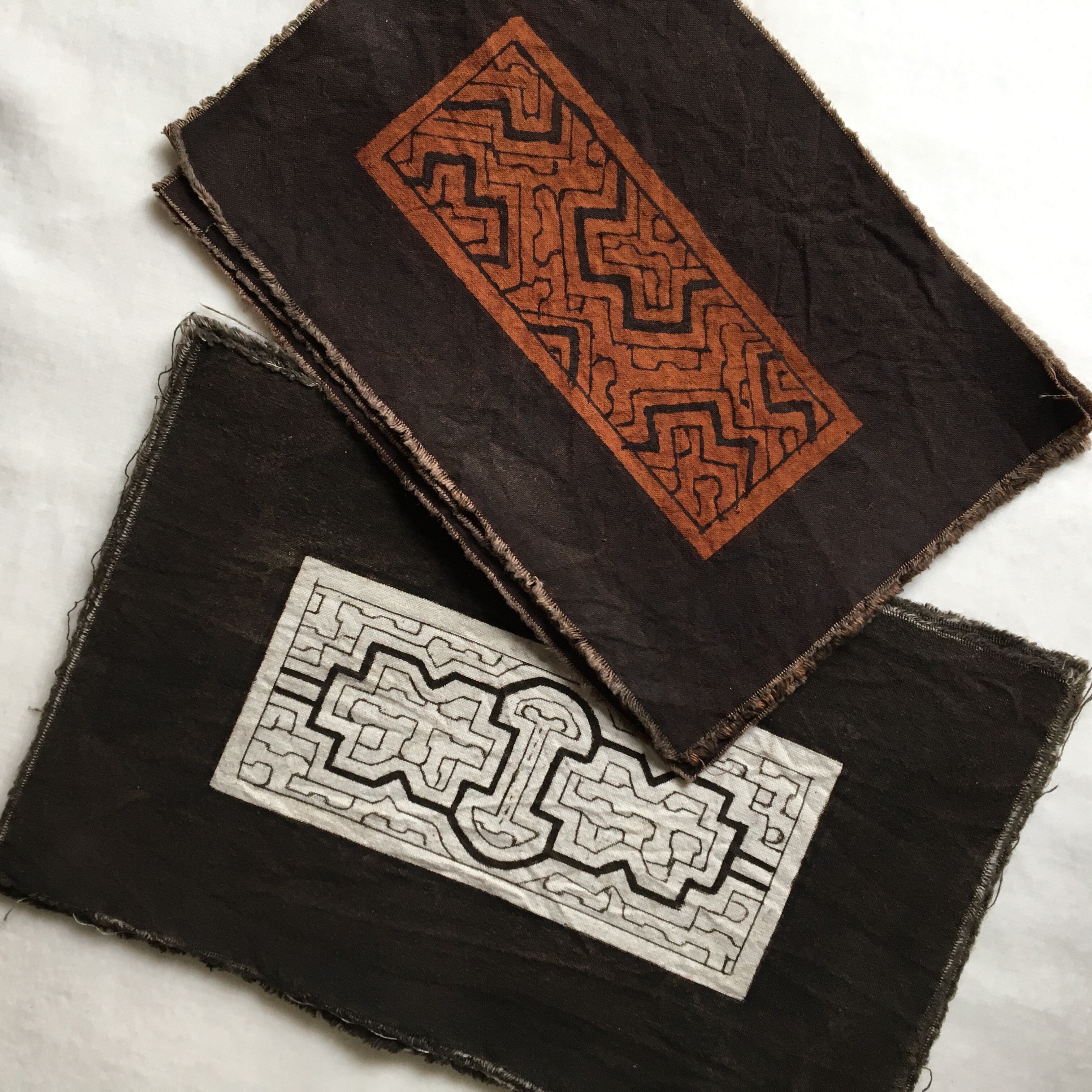 ミニマット 白15x24cm-6 アマゾン シピボ族の泥染め プレイスマット・額装