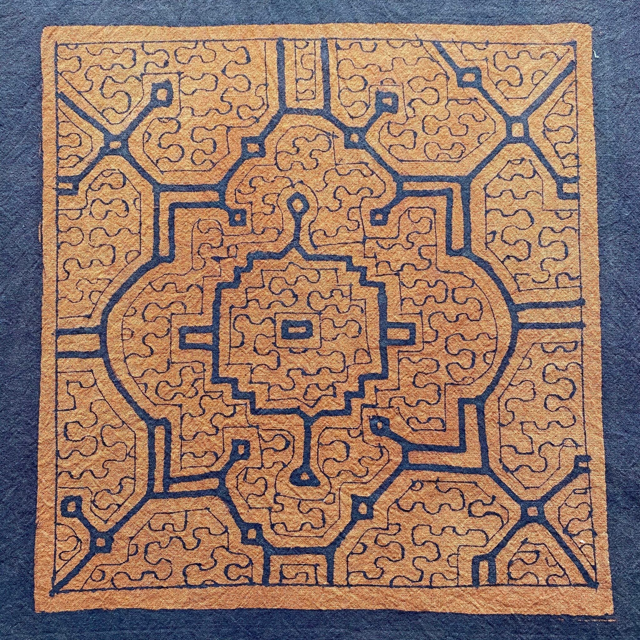 アマゾンの泥染め 小型のクッションサイズ、テーブルセンター、プレイスマット、タペストリー額装、家電に目隠し、暖簾、インテリア雑貨として