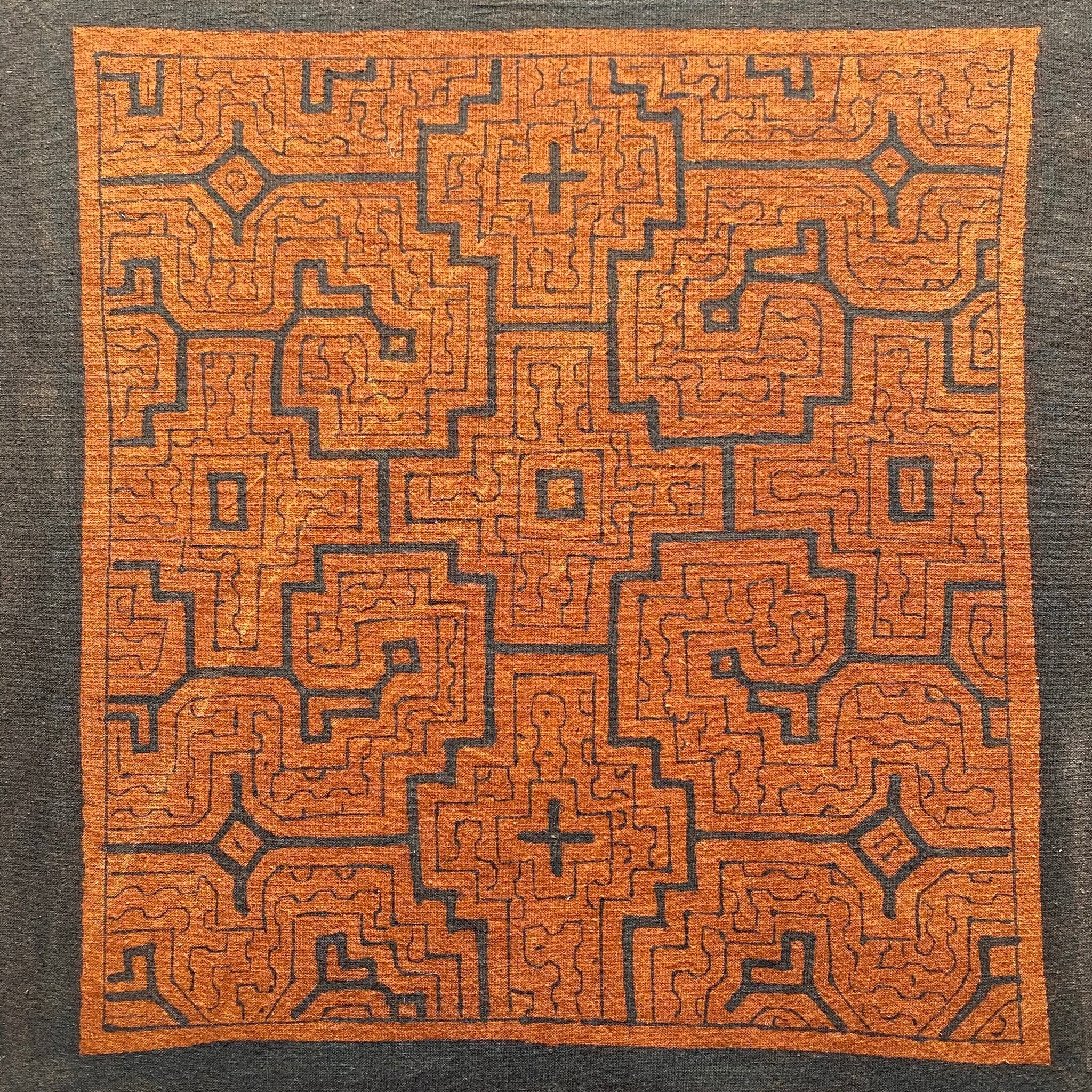 アマゾンの泥染め 小型のクッションサイズ、テーブルセンター、プレイスマット、タペストリー額装、家電に目隠し、暖簾、インテリア雑貨として