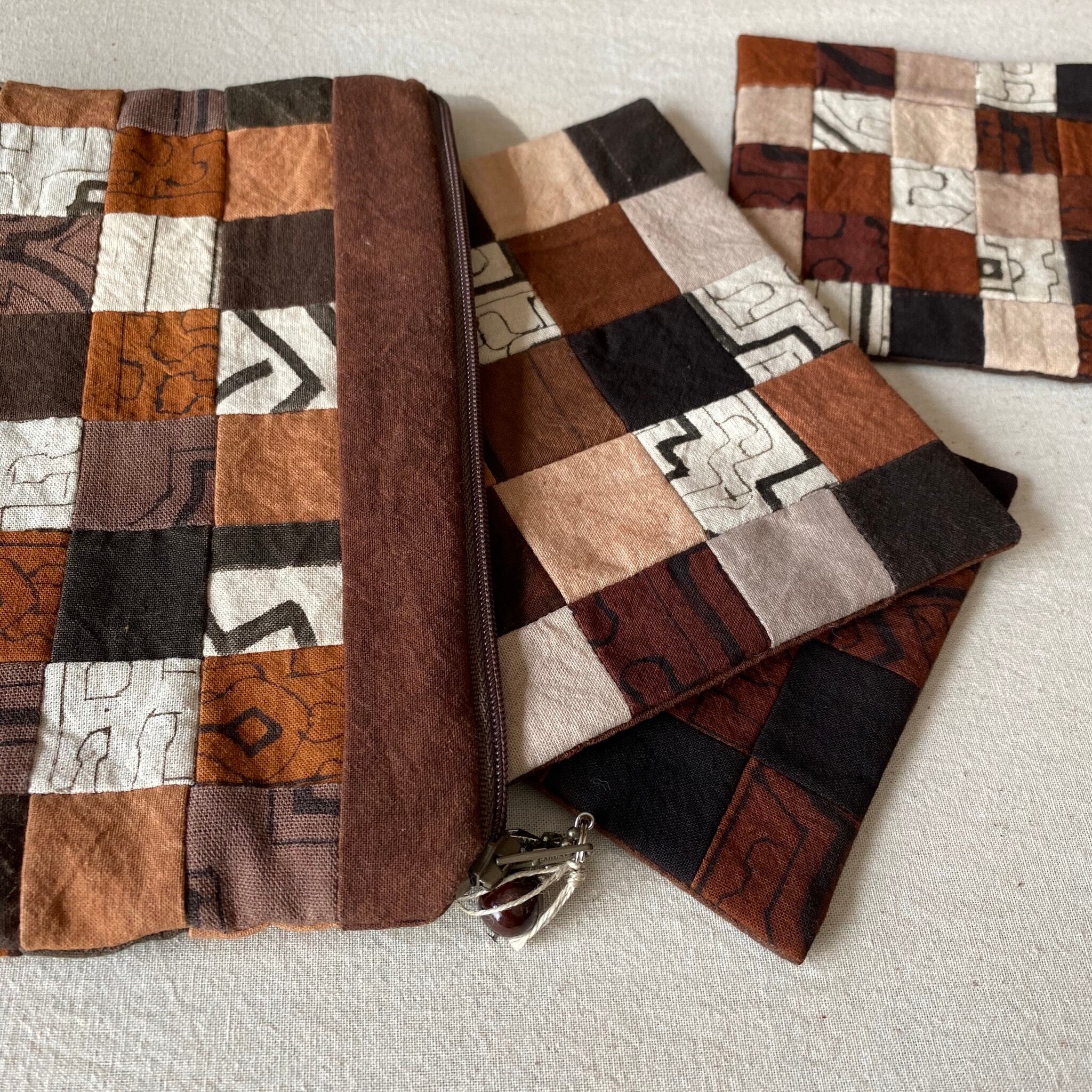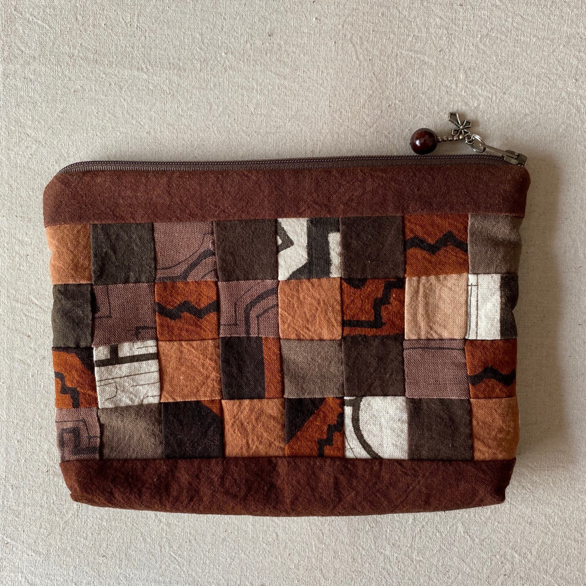 ポーチ 泥染めパッチワーク キルト 20x15x2cm 泥染め