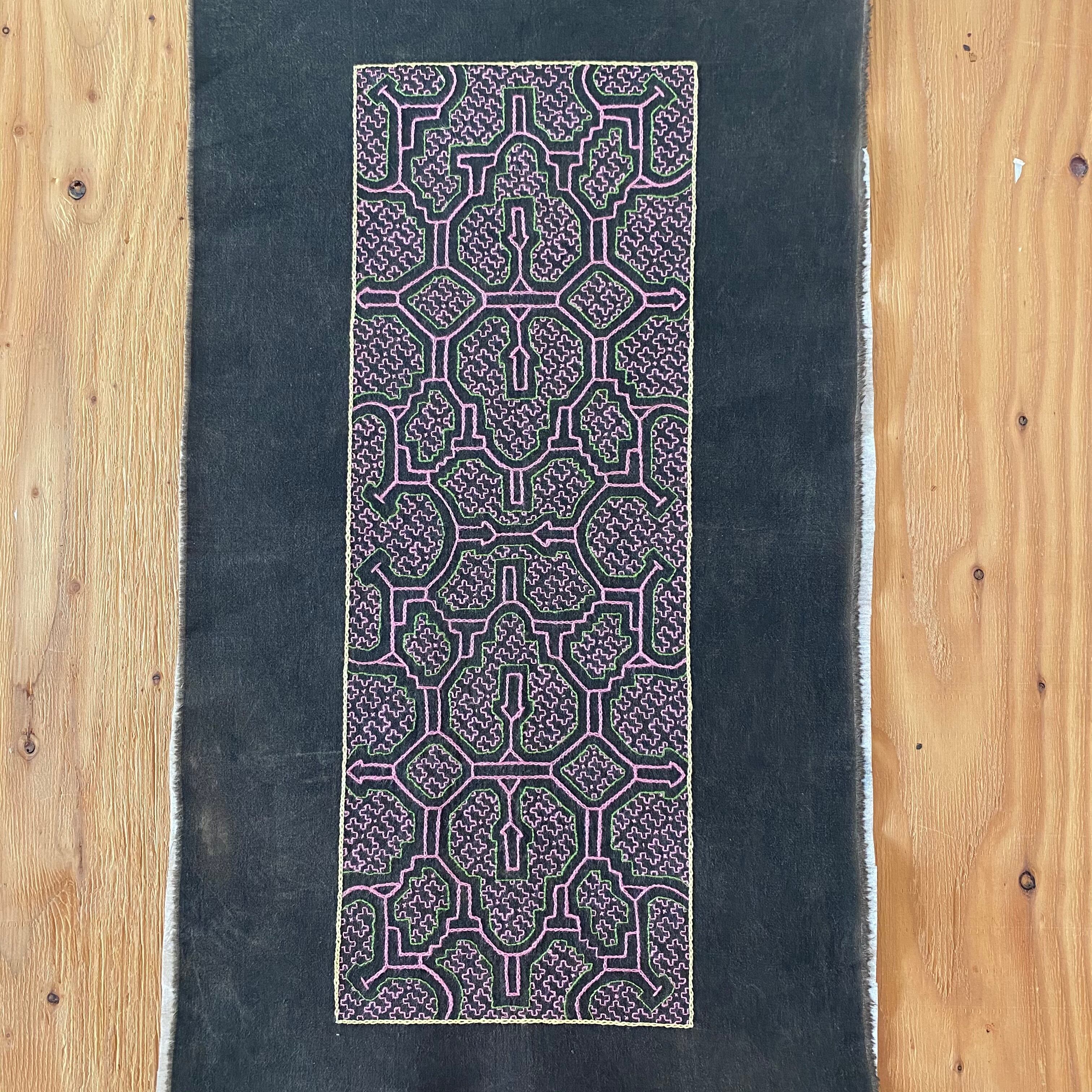刺繍 中型 46x85cm 泥染め地にピンク刺繍 額装用 シピボ族の刺繍