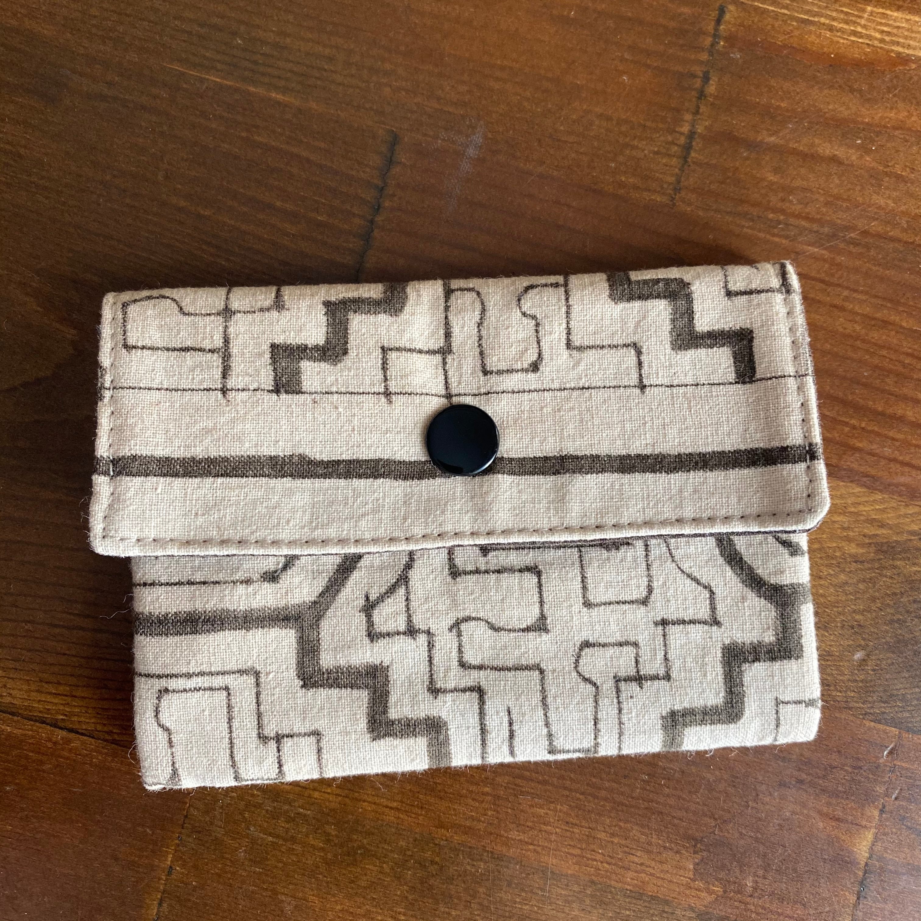 アマゾンの泥染めは、先住民族シピボ族の伝統工芸で、フリーハンドの幾何学模様を染める、希少価値の高い手工芸です。この布を使ってオーナー(AYACHI S)がバッグや布雑貨を手作りしています。 貴重な伝統工芸を少しでも長く作り続けて欲しいという想いから続けている活動です。