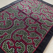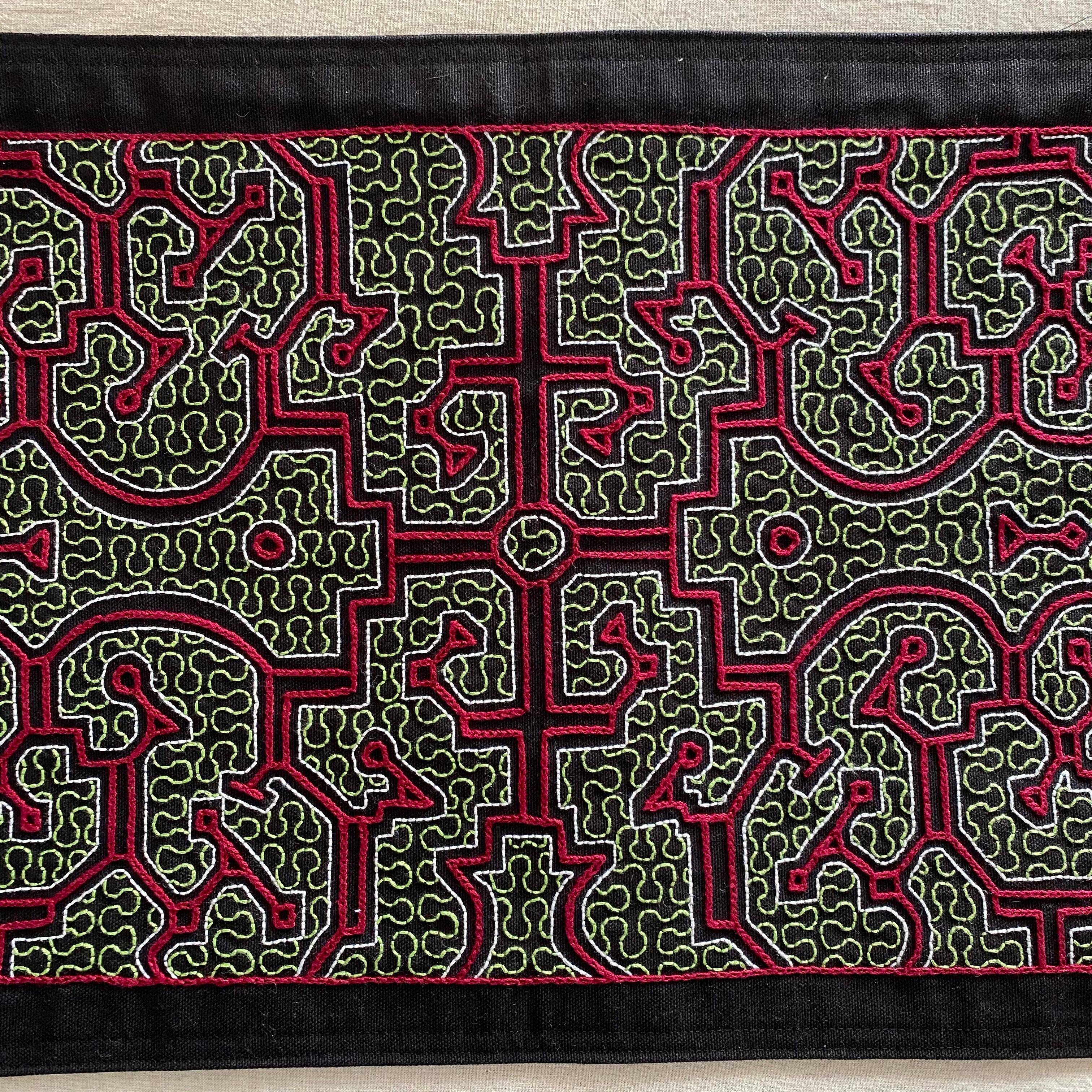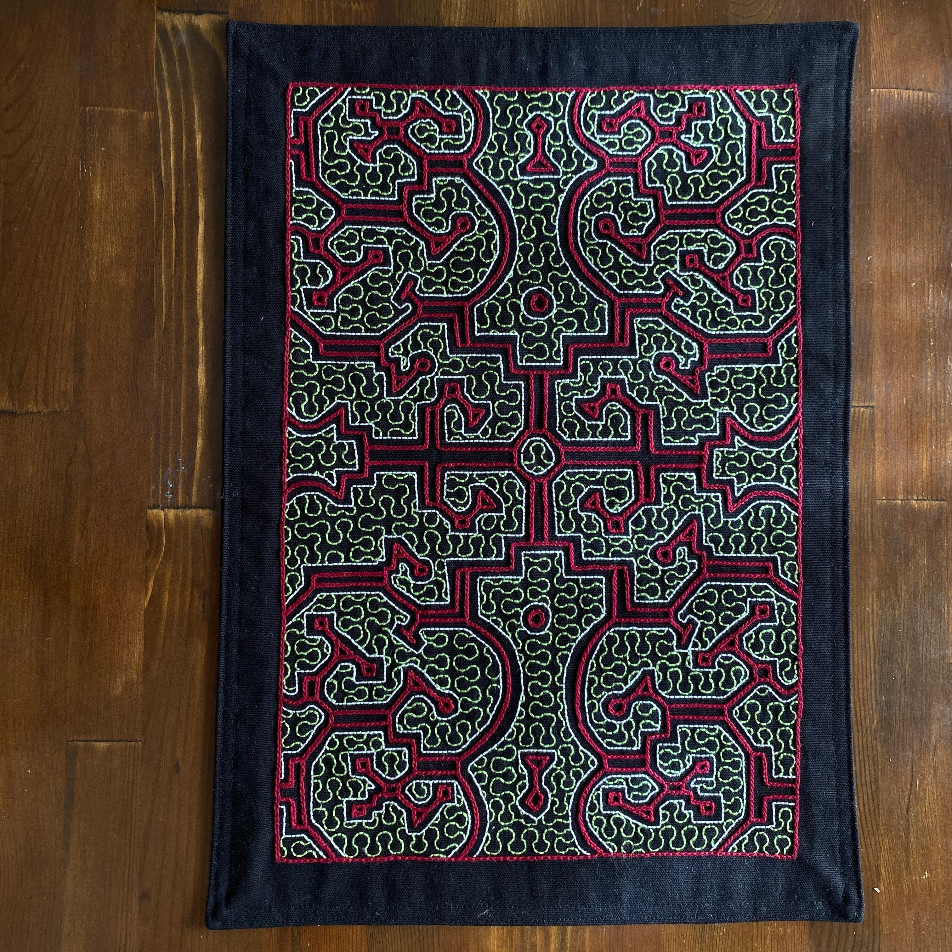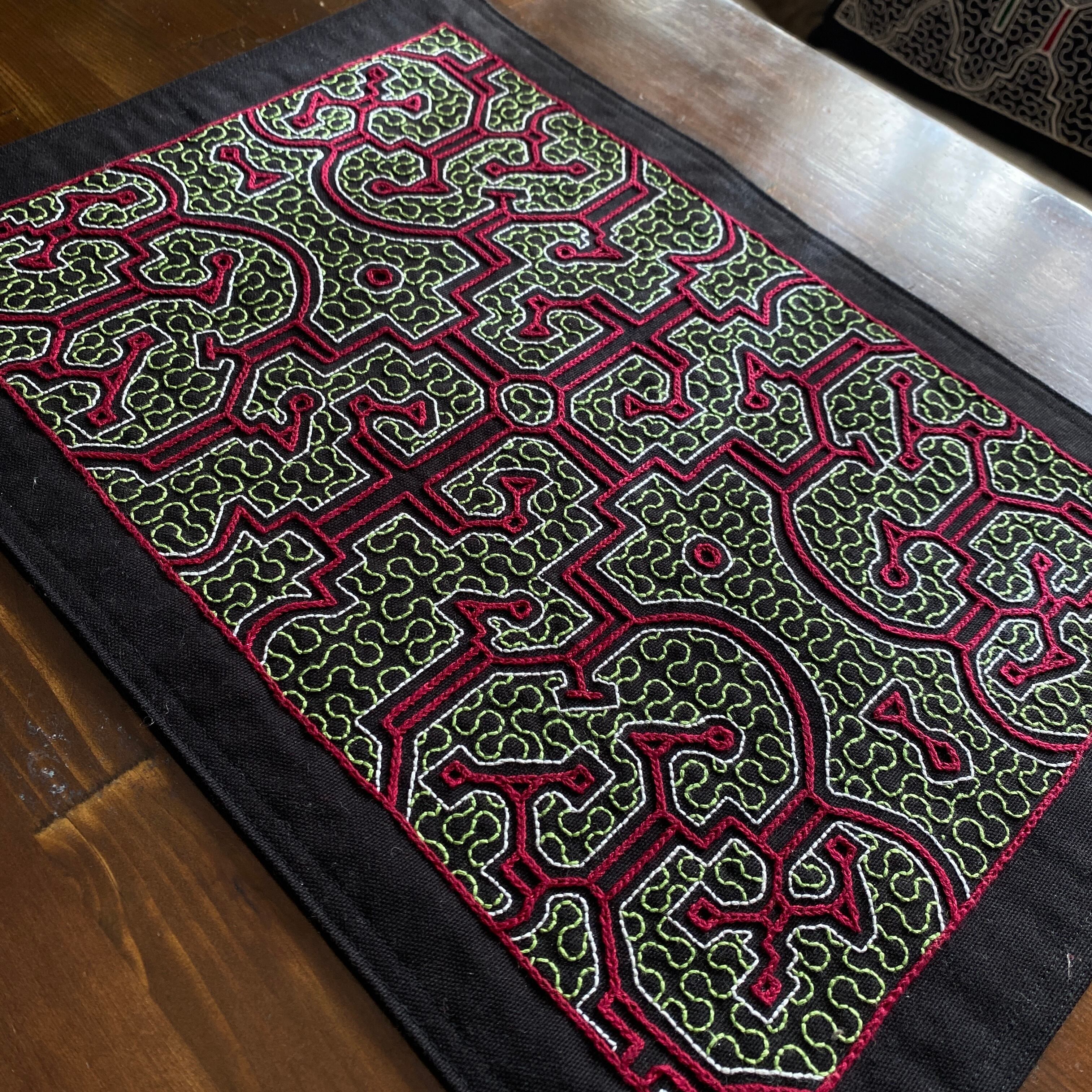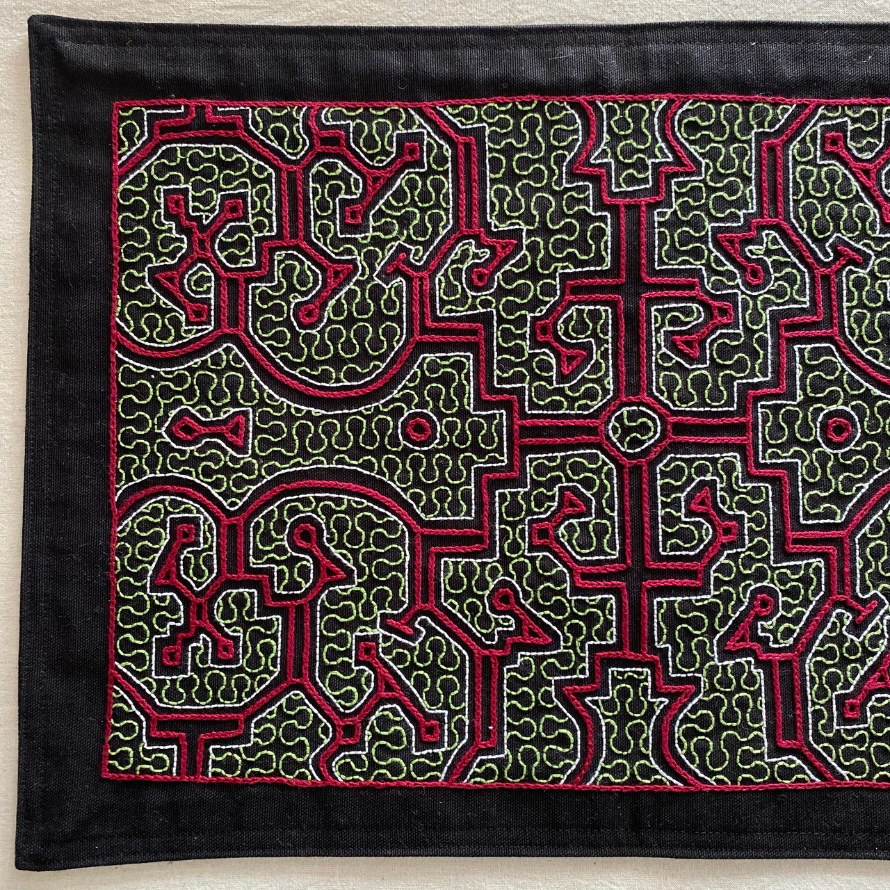 中型刺繍マット テーブルセンター 32x45 緑と赤 Xmas大 シピボ族の刺繍
