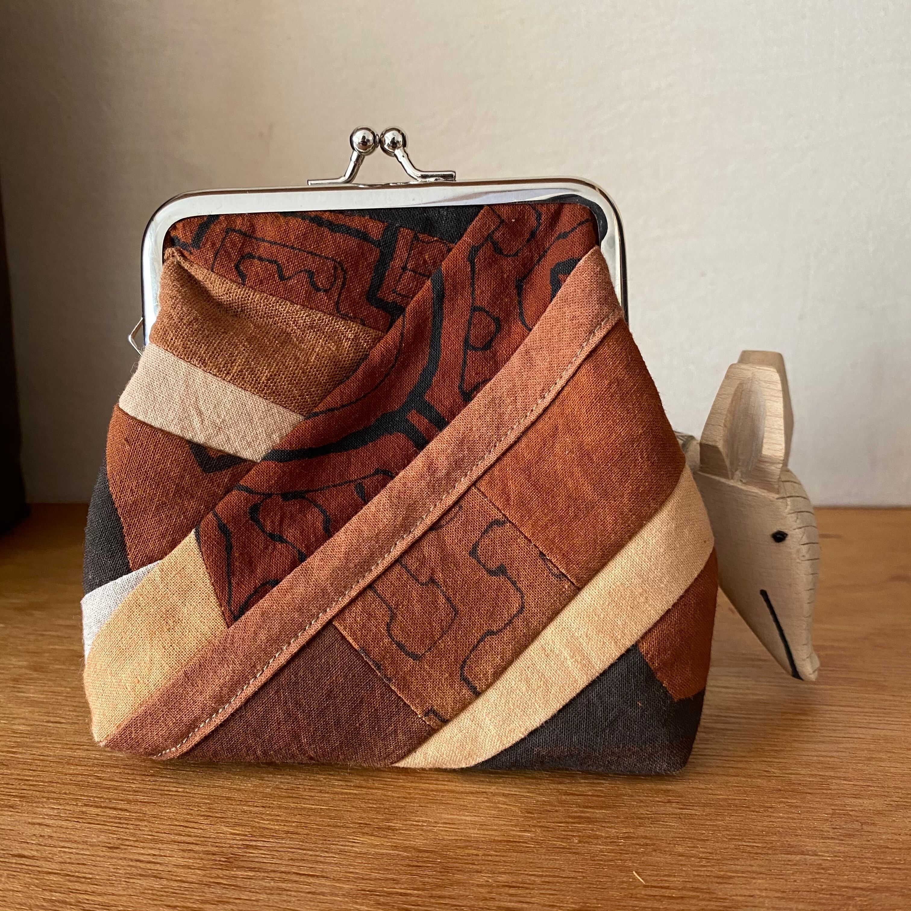 がまぐち2 泥染めパッチワーク シピボ族の泥染め