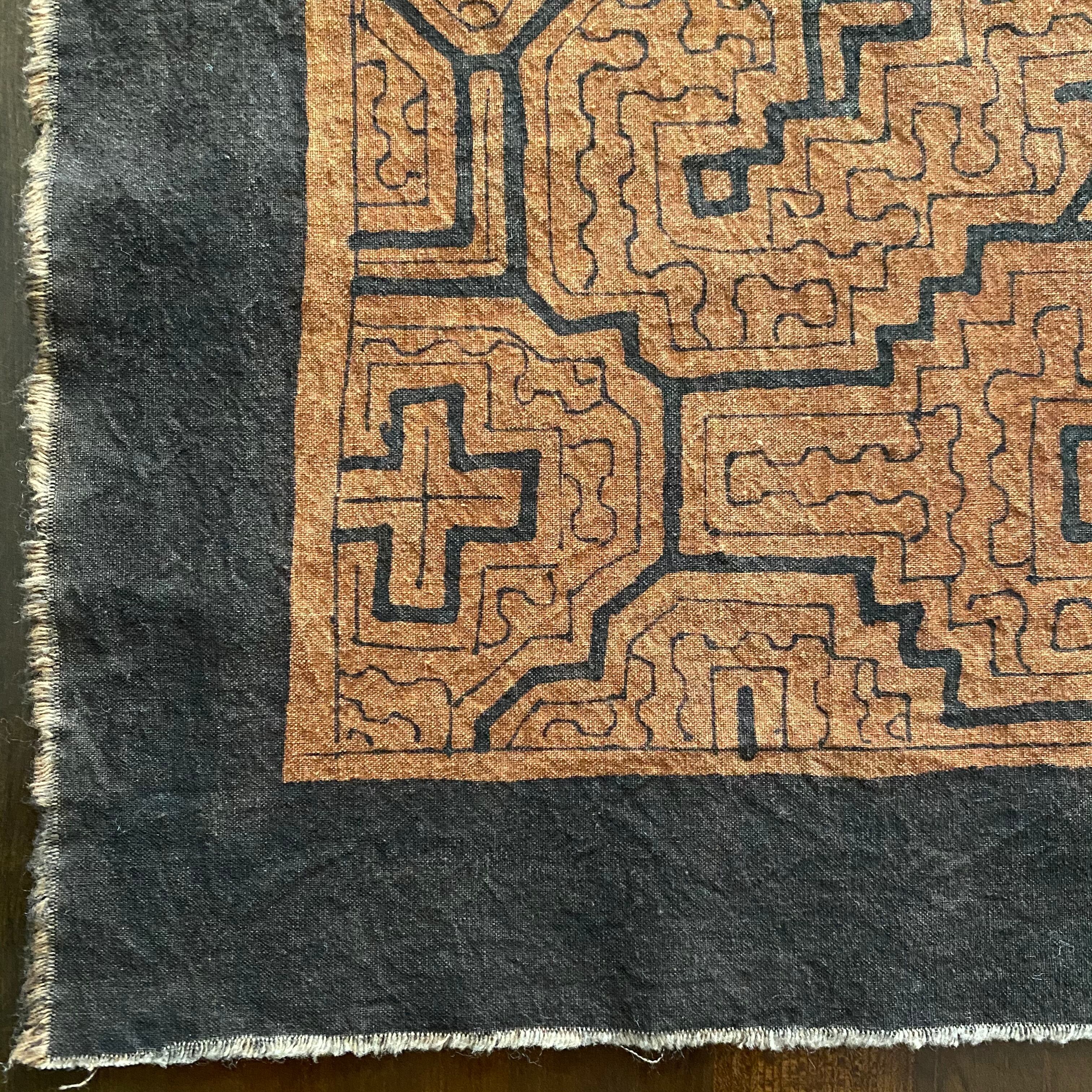 テーブルランナー茶 150x43cm AAA 薄い茶 厚地 シピボ族の泥染め | アマゾン屋 シピボ族の泥染めとバッグと雑貨