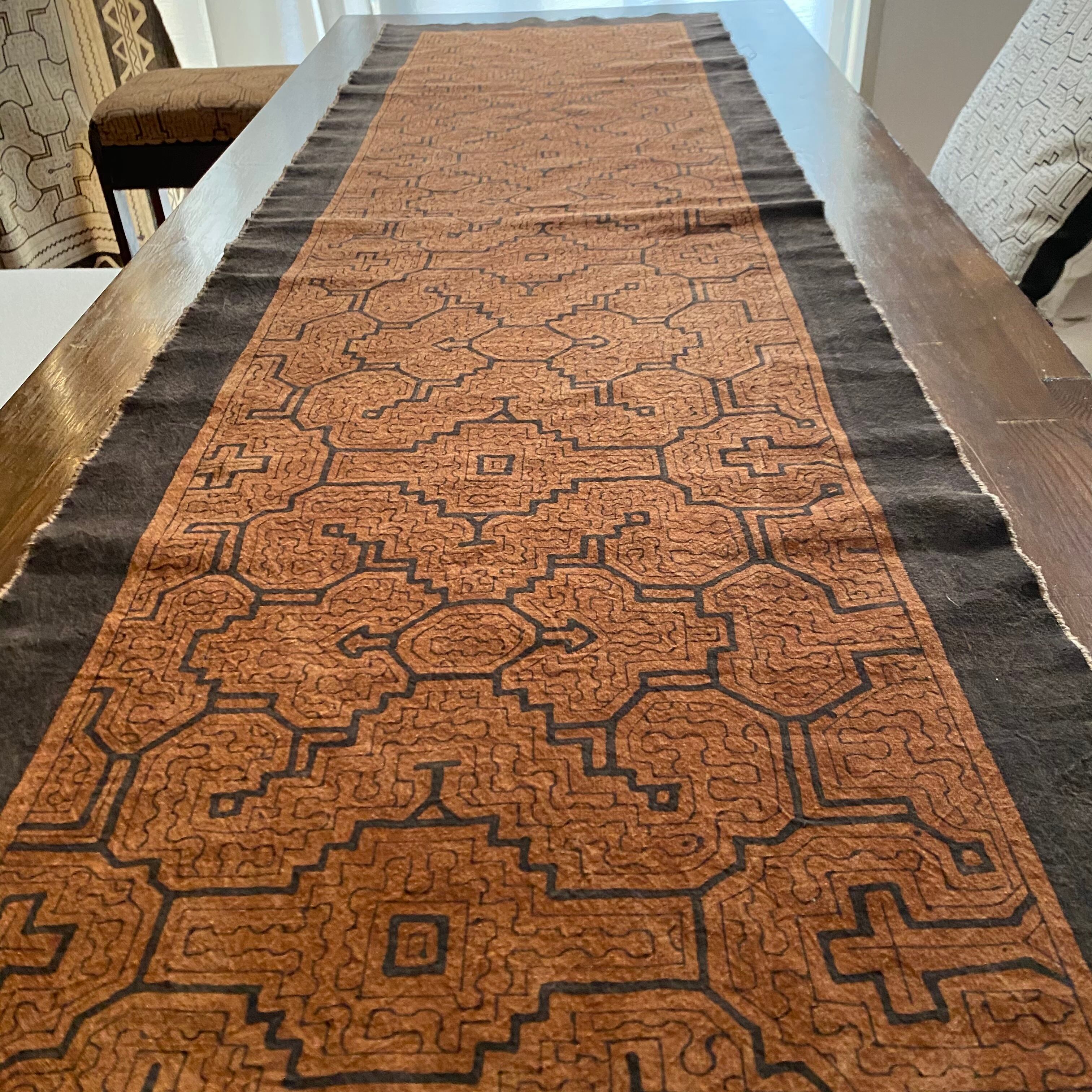 テーブルランナー茶 150x43cm AAA 薄い茶 厚地 シピボ族の泥染め
