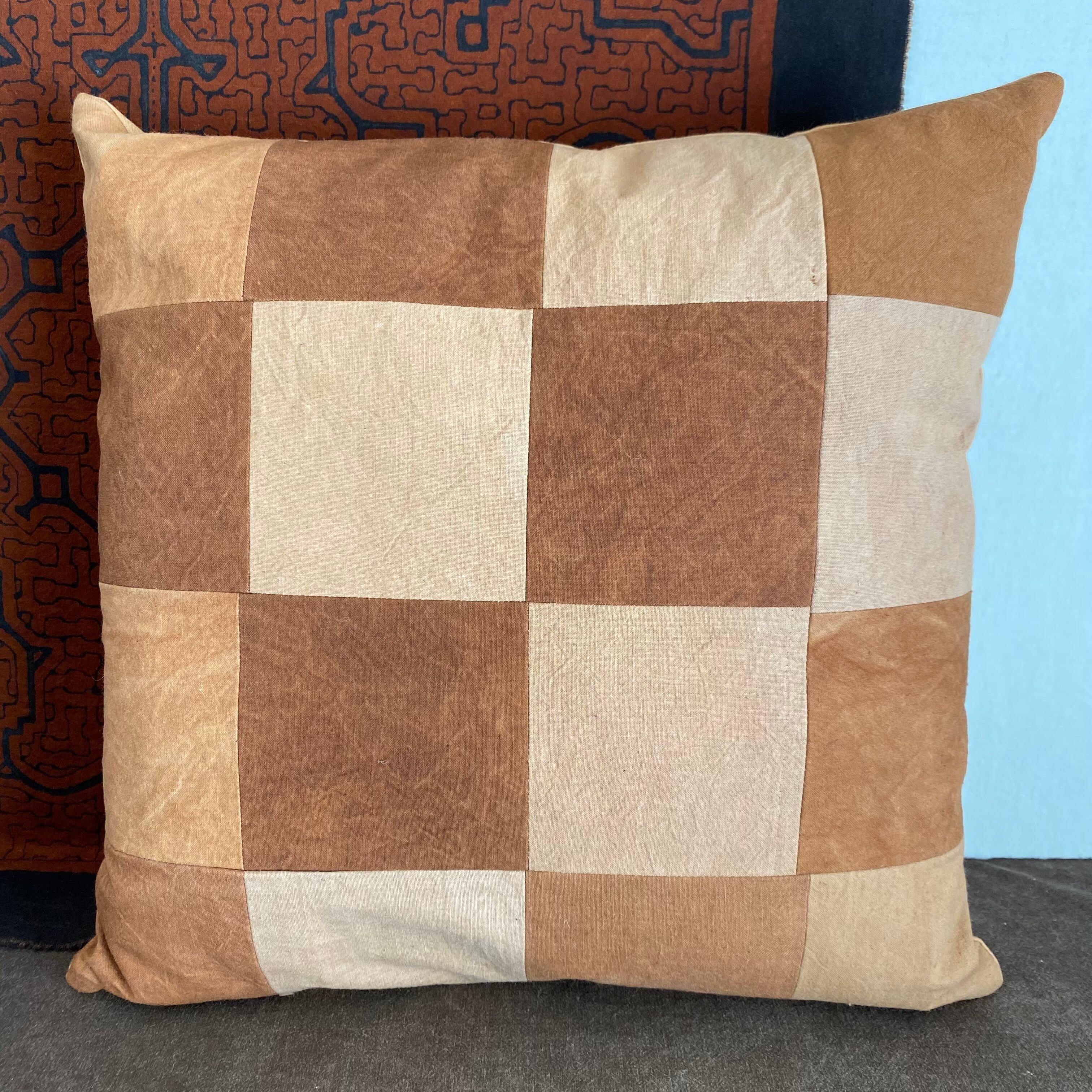 クッションカバー両面 35x35cm 茶パッチワーク シピボ族の泥染めカバー94 南米ペルーアマゾン 草木染め エスニック 民芸
