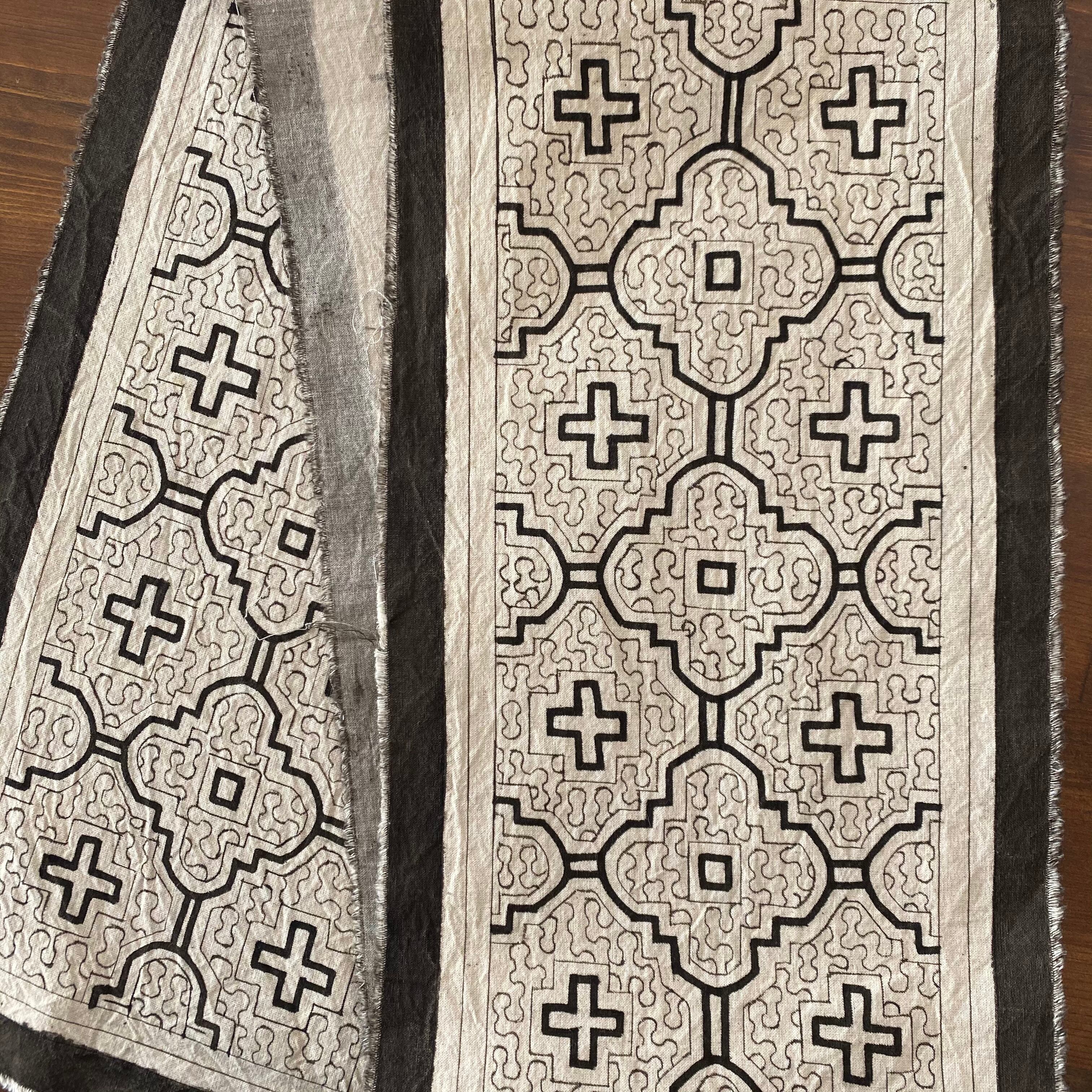 テーブルランナー12 AAA 153x24cm お花白 アマゾン シピボ族の泥染め