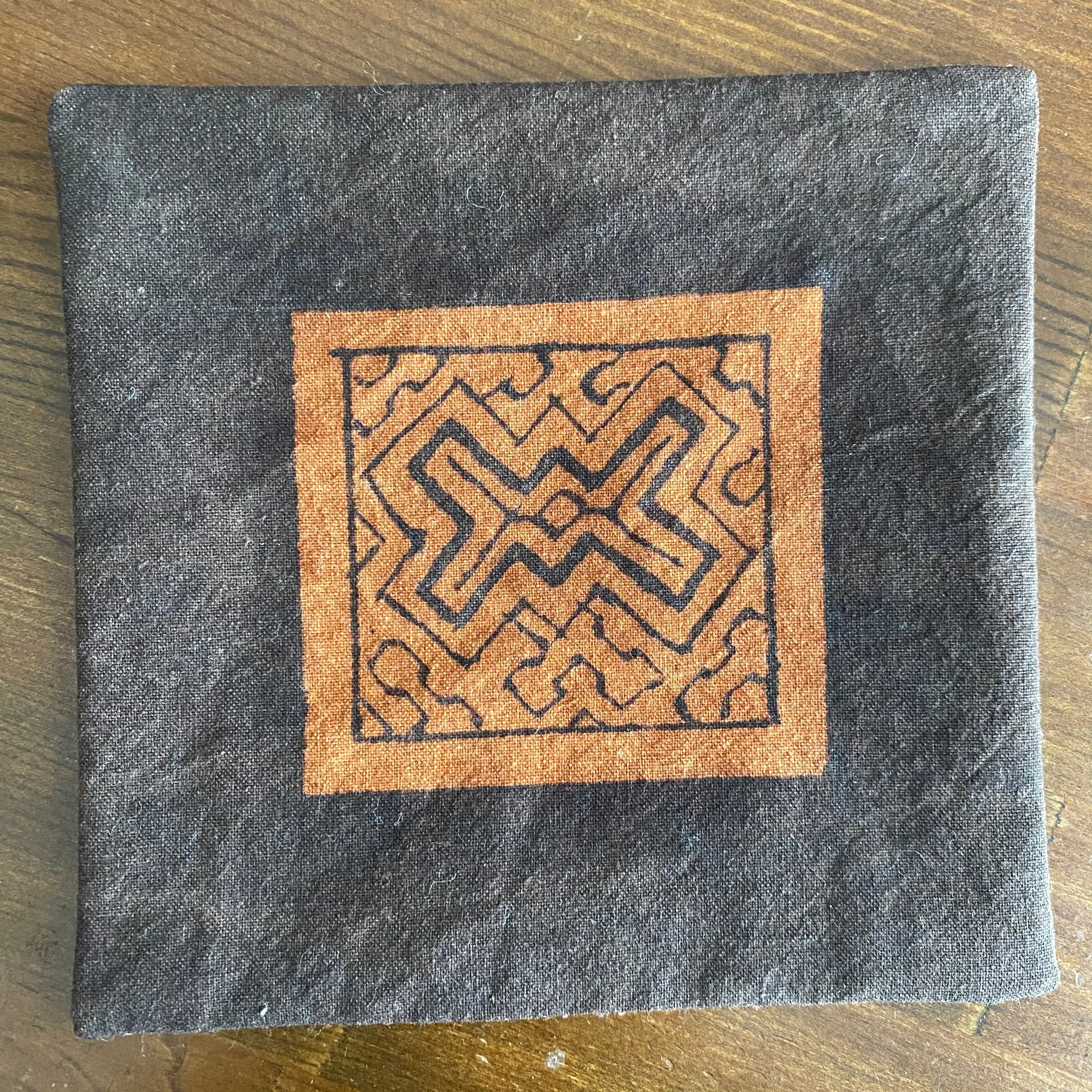 泥染めコースター 両面茶1 13x13cm 茶1おリボン
