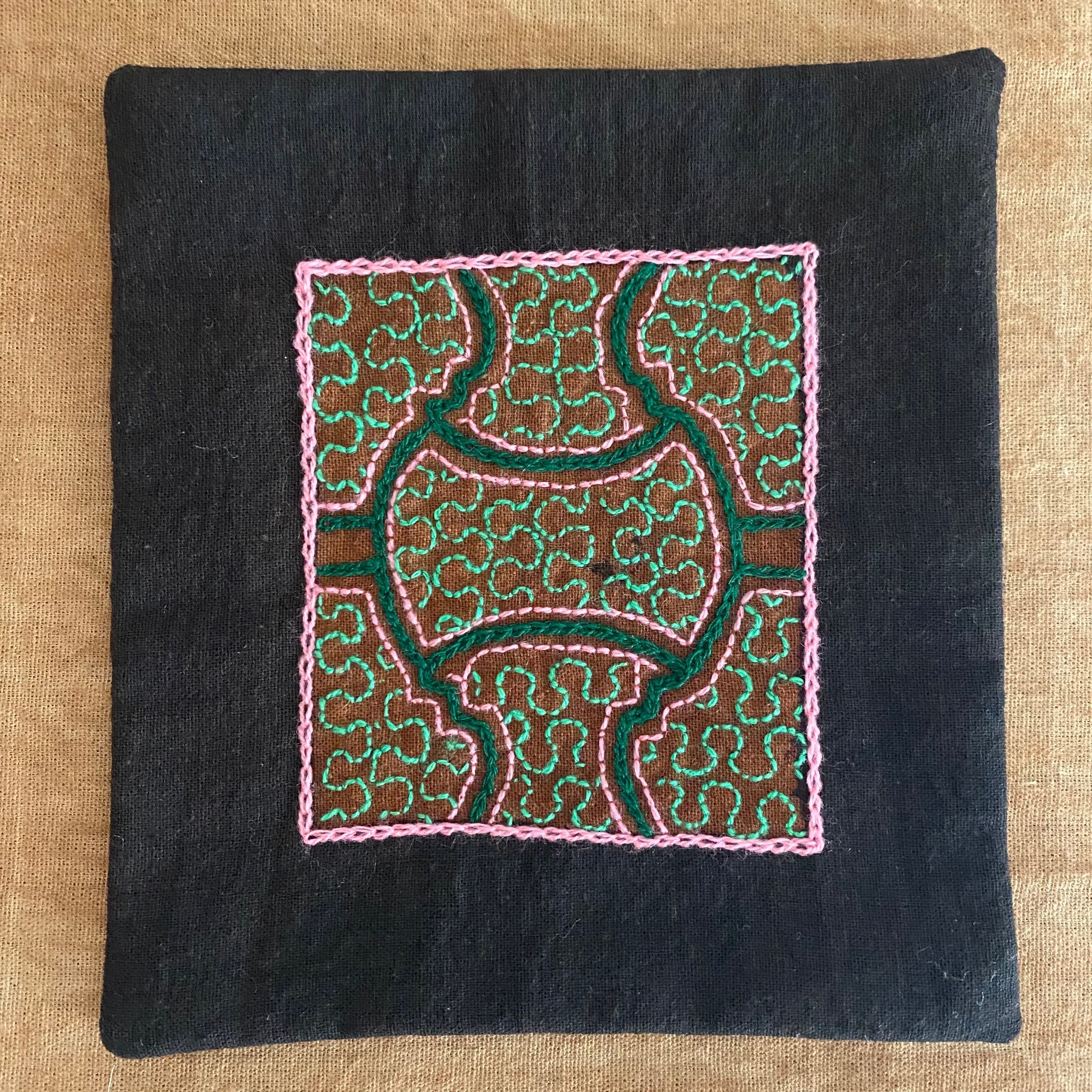 刺繍コースター シピボ族の泥染めと手刺繍 天然素材 両面
