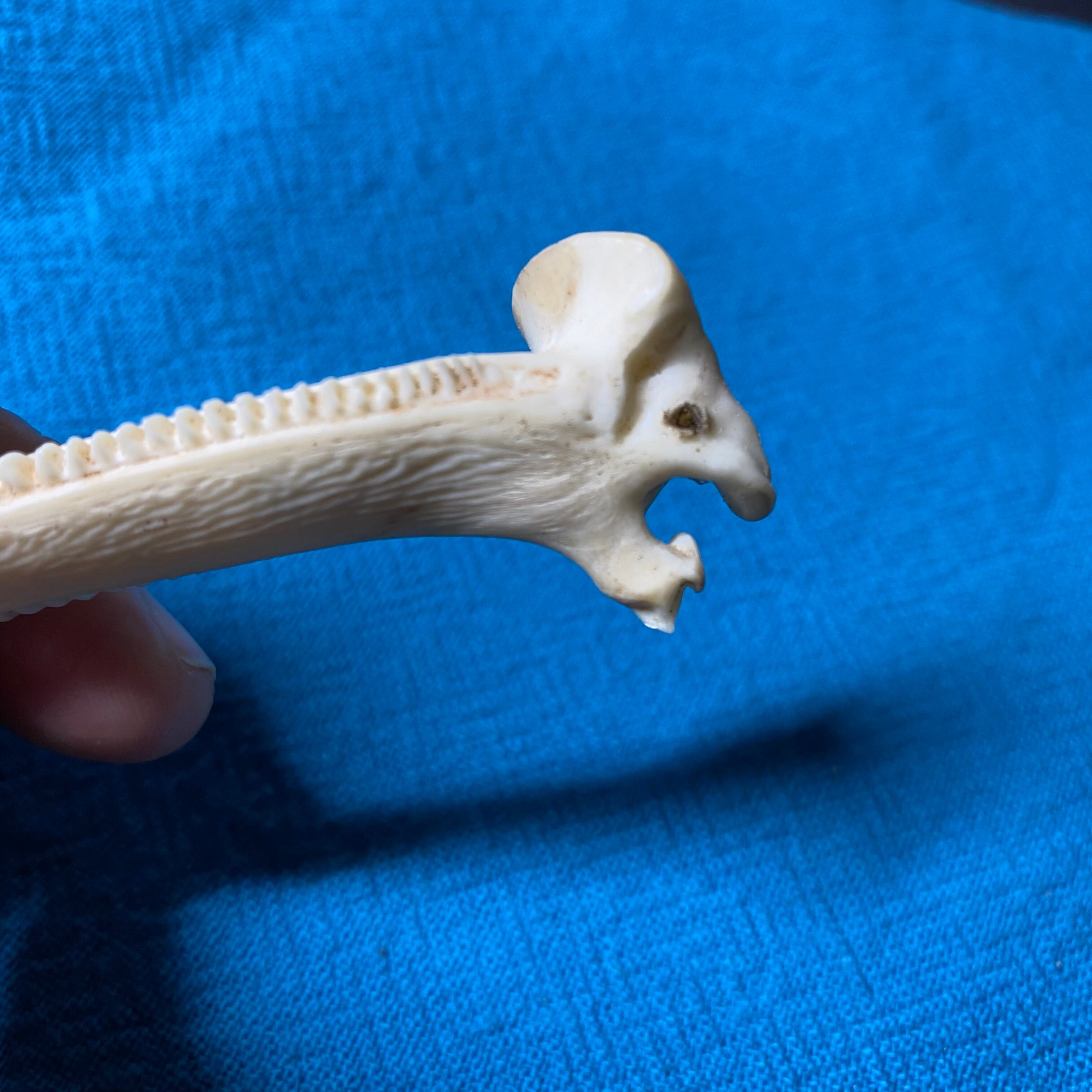 南米ペルーアマゾン地帯でよく食されている巨大ナマズのヒレの部分は鋭く切れる骨が。シピボ族女性により木の実をアレンジしたアクセサリーを作るのに使われることがあり、この骨には上部と中央に針が通るくらいの穴が空いています。