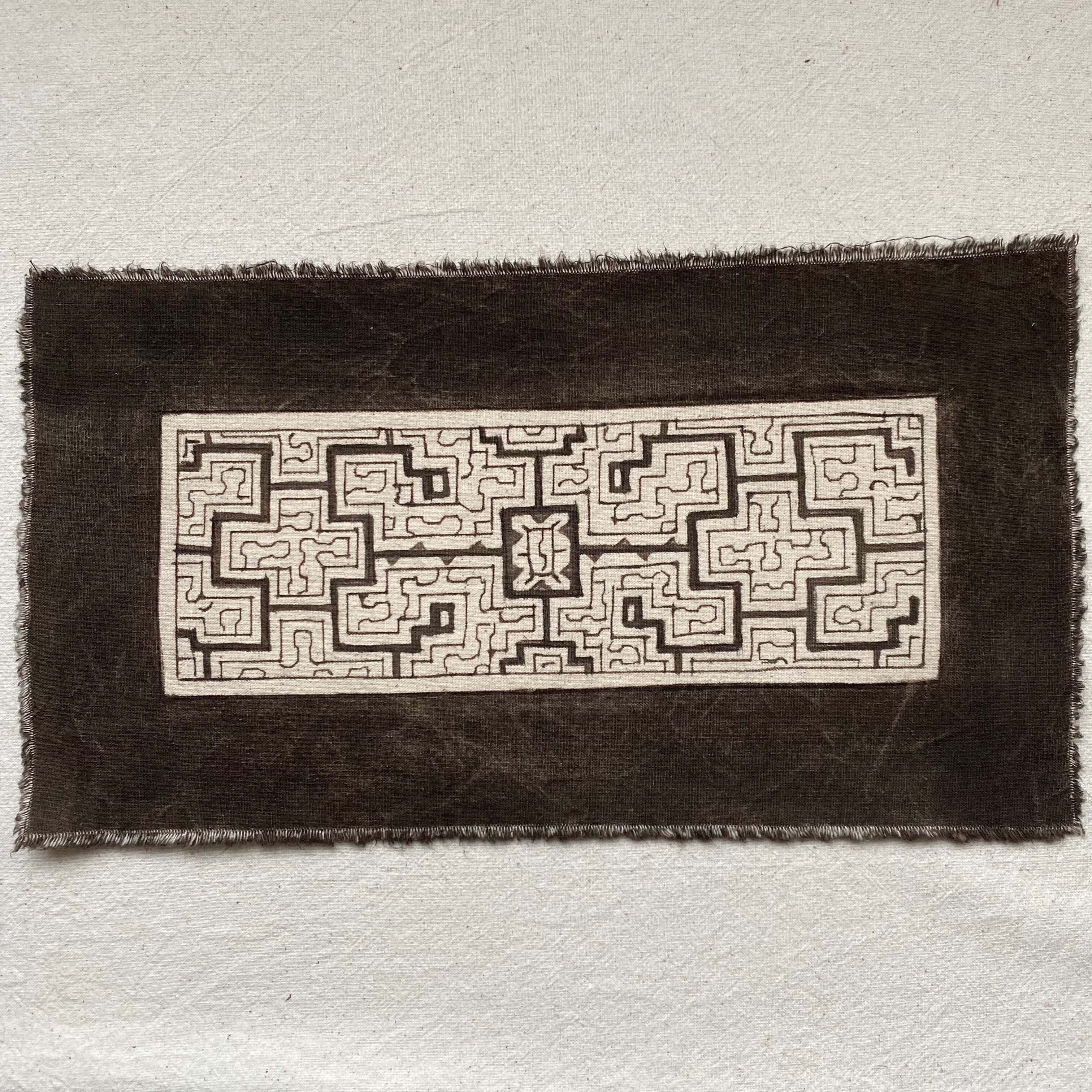 泥染めプレイスマット 16x30cm 白10 南米ペルー シピボ族の泥染め プレイスマット 額装
