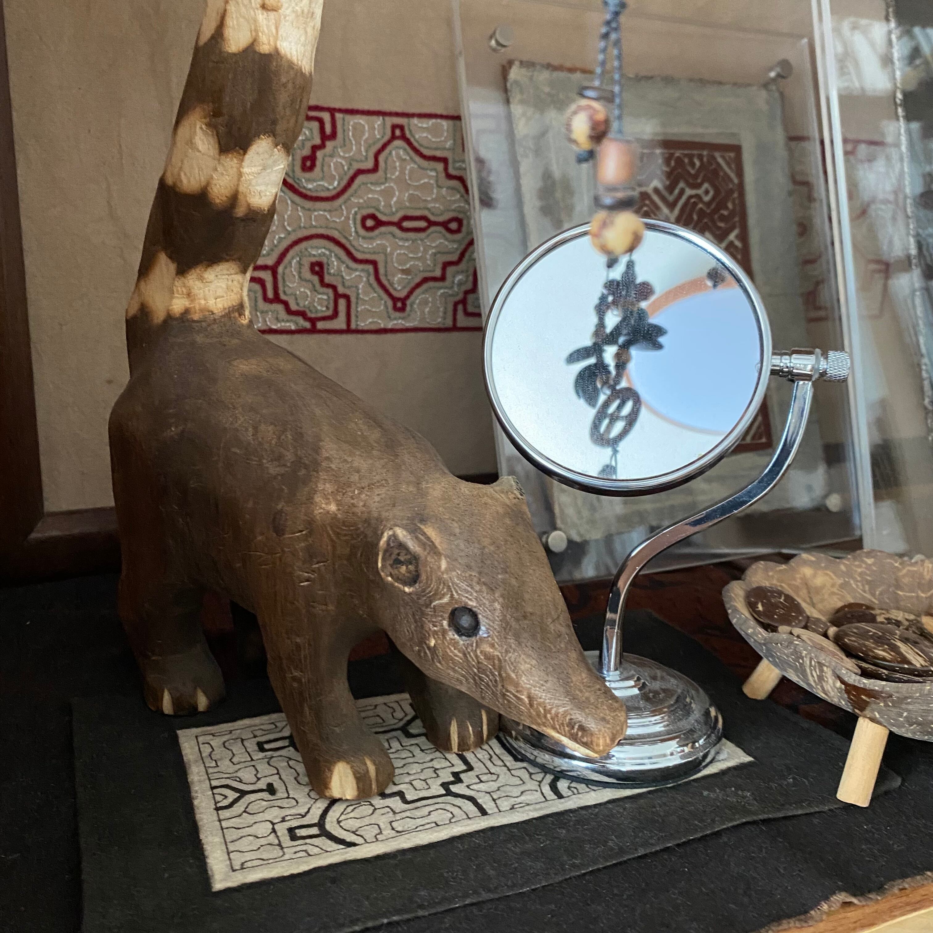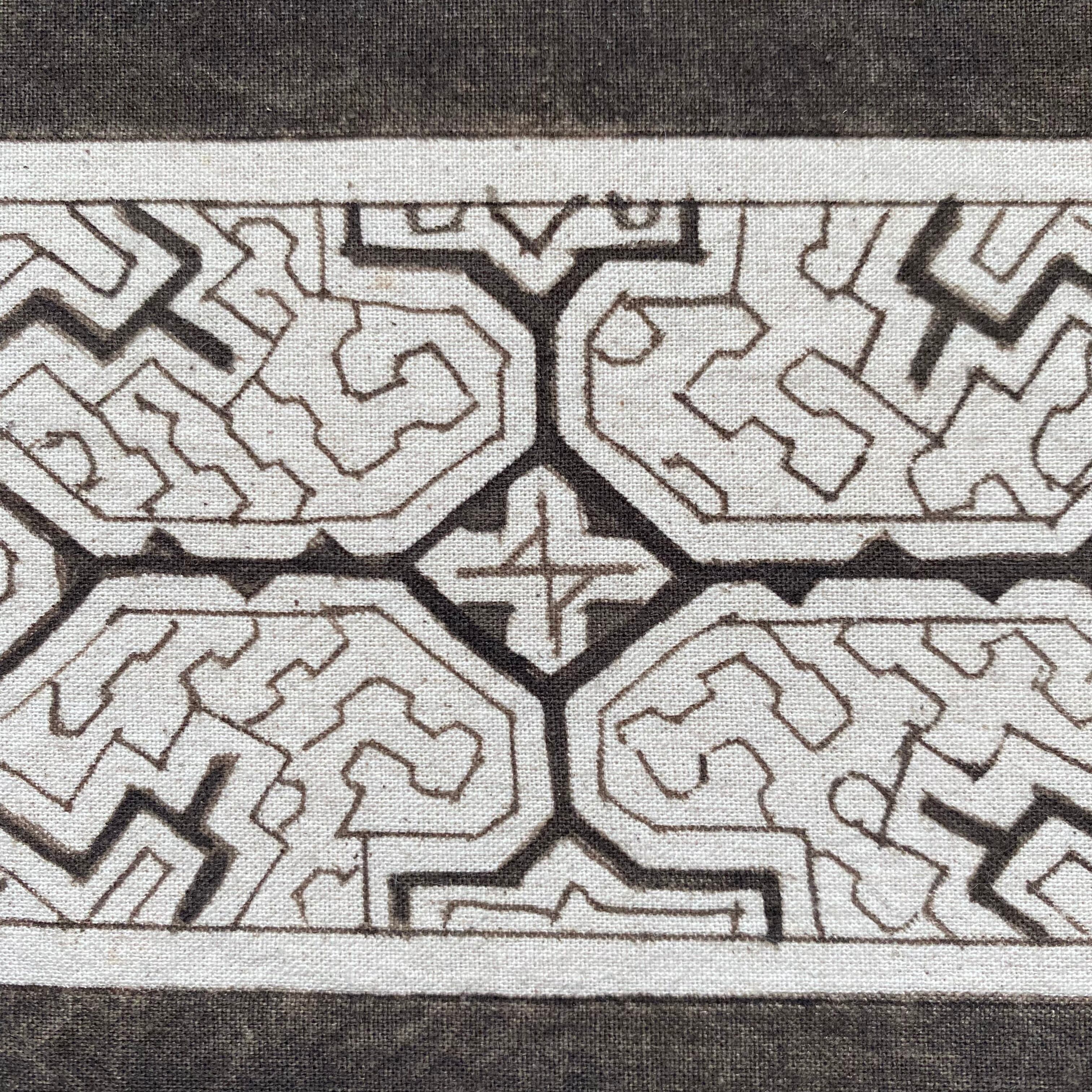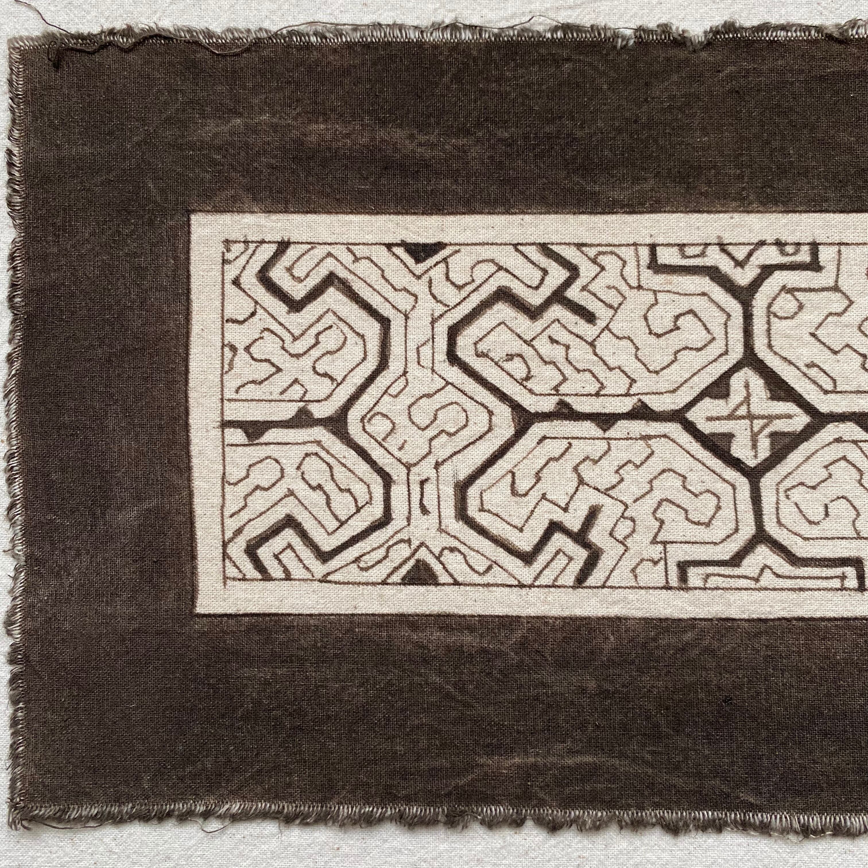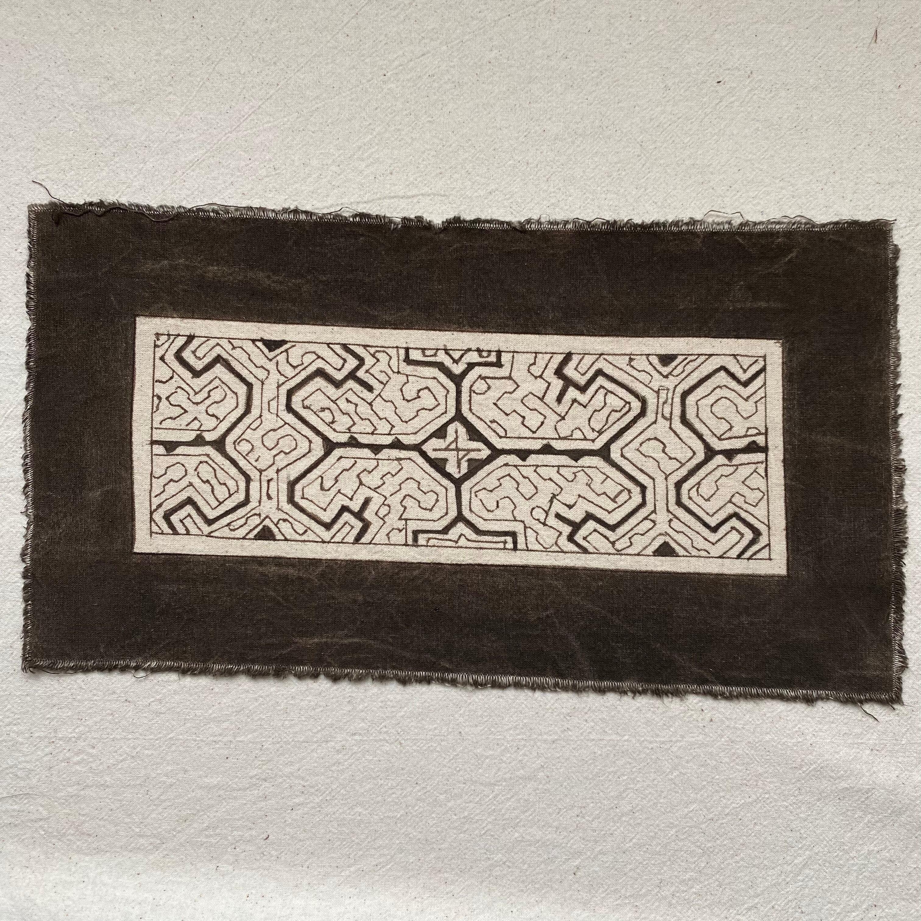 泥染めプレイスマット 16x30cm 白11 南米ペルー シピボ族の泥染め プレイスマット 額装