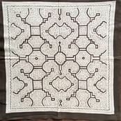 中型白 55x54cm 柔らかい布縁縫い AAA 南米ペルーシピボ族の泥染め布 テーブルセンター タペストリー 風呂敷 | アマゾン屋 シピボ族の泥染めとバッグと雑貨