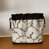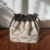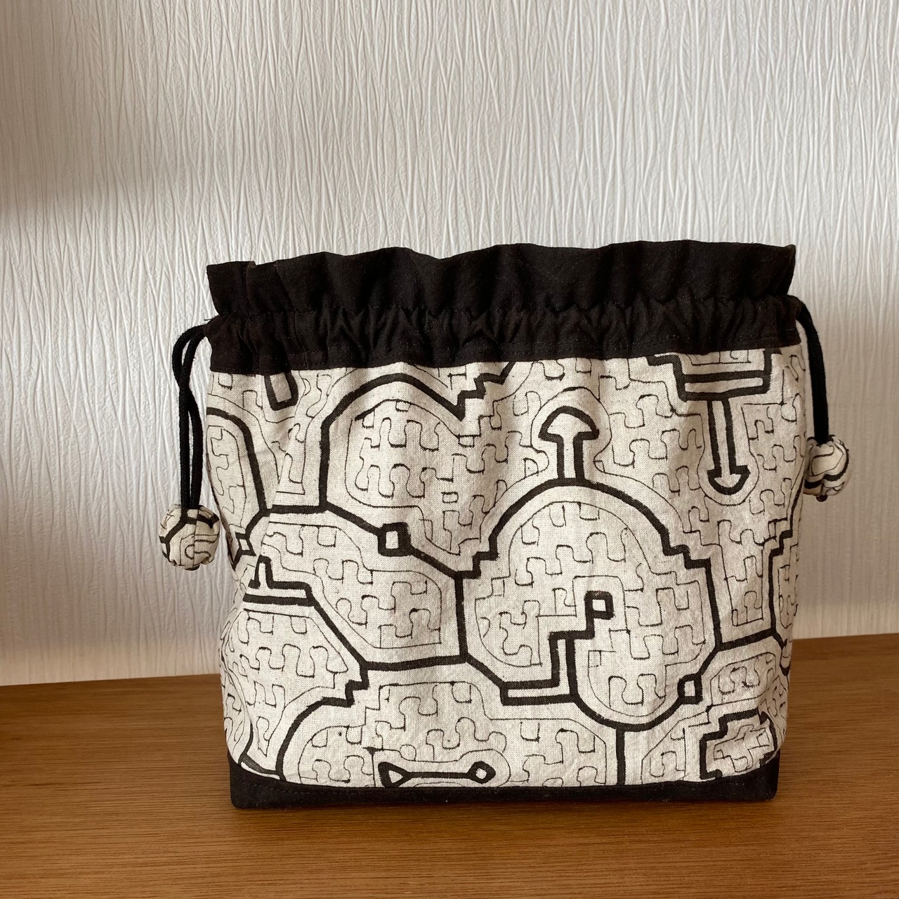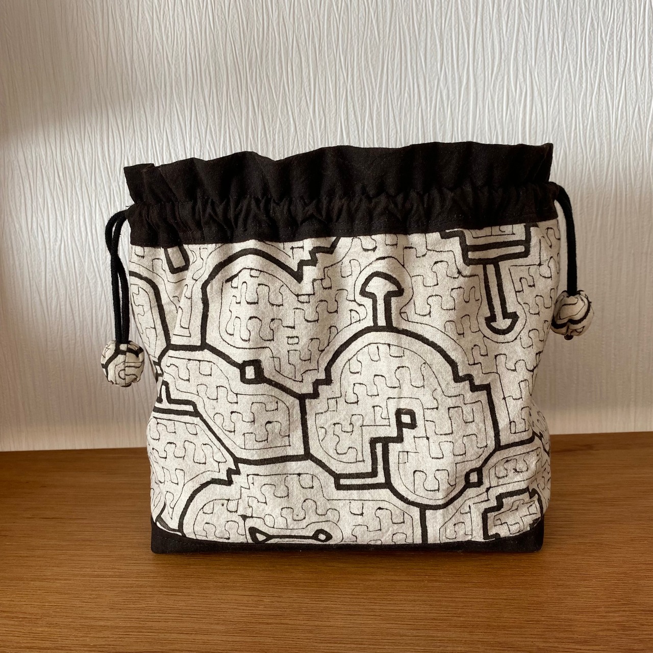 泥染め巾着袋2 白底20x10cm高さ20cm位