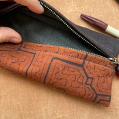 ポーチ25 茶と黒16cmファスナー ペンケース アマゾンの泥染め