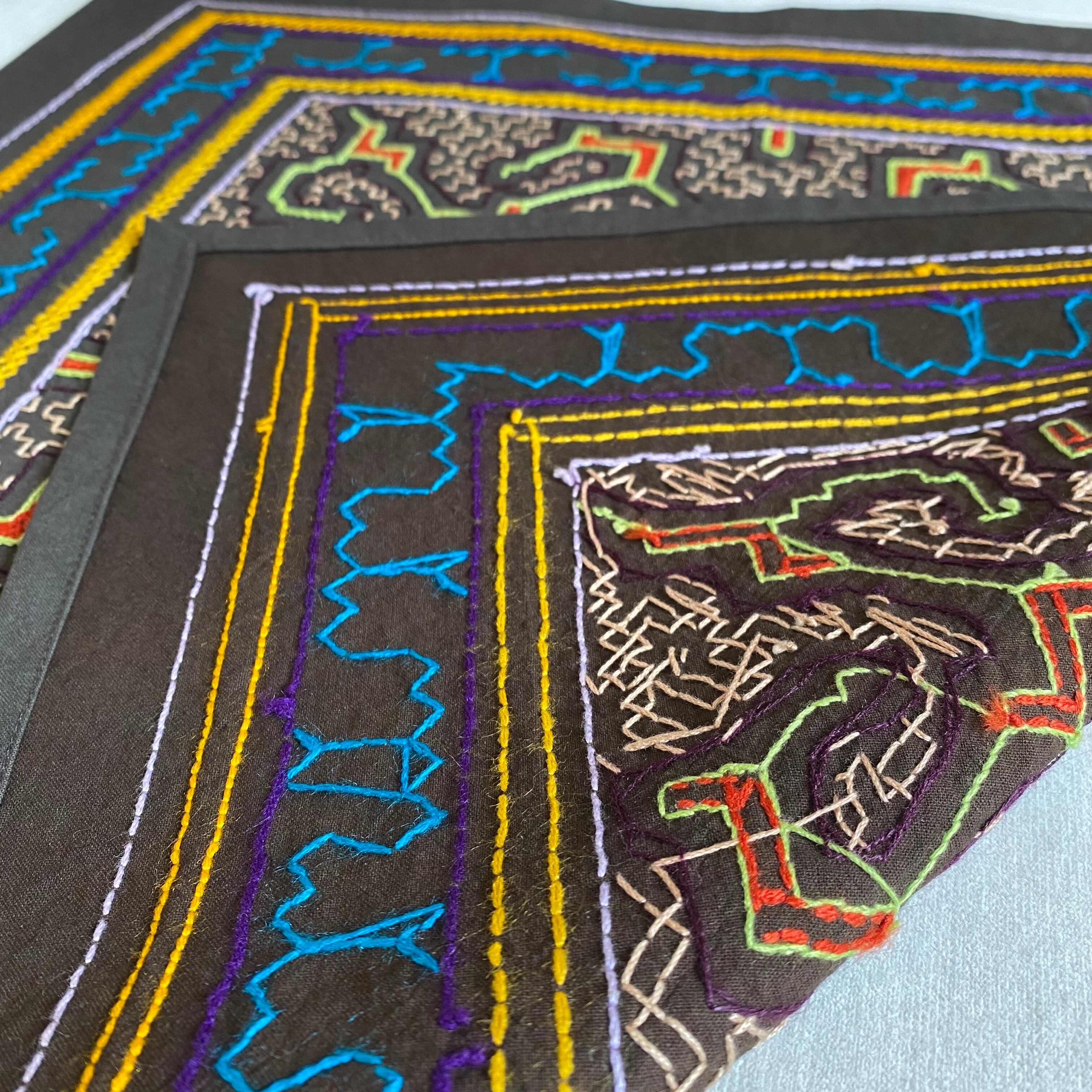 中型刺繍 55x55cm 縁縫 シピボ族の手刺繍 タペストリー 先住民族の工芸 テーブルセンター インテリア
