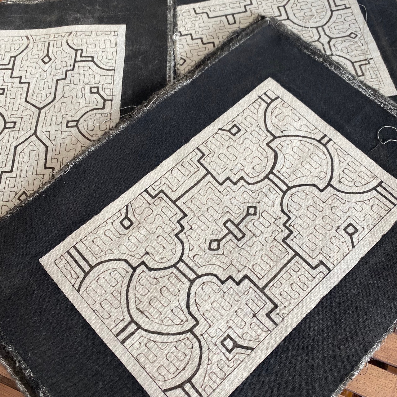 カフェマット1白 25x33cm シピボ族の泥染め白 アマゾンの先住民族の工芸 インテリア雑貨布 エスニック