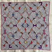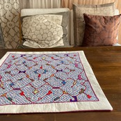 カラフル刺繍9 茜と薄紫 40x40cm 裏付きマット シピボ族の刺繍 南米アマゾン先住民族の工芸