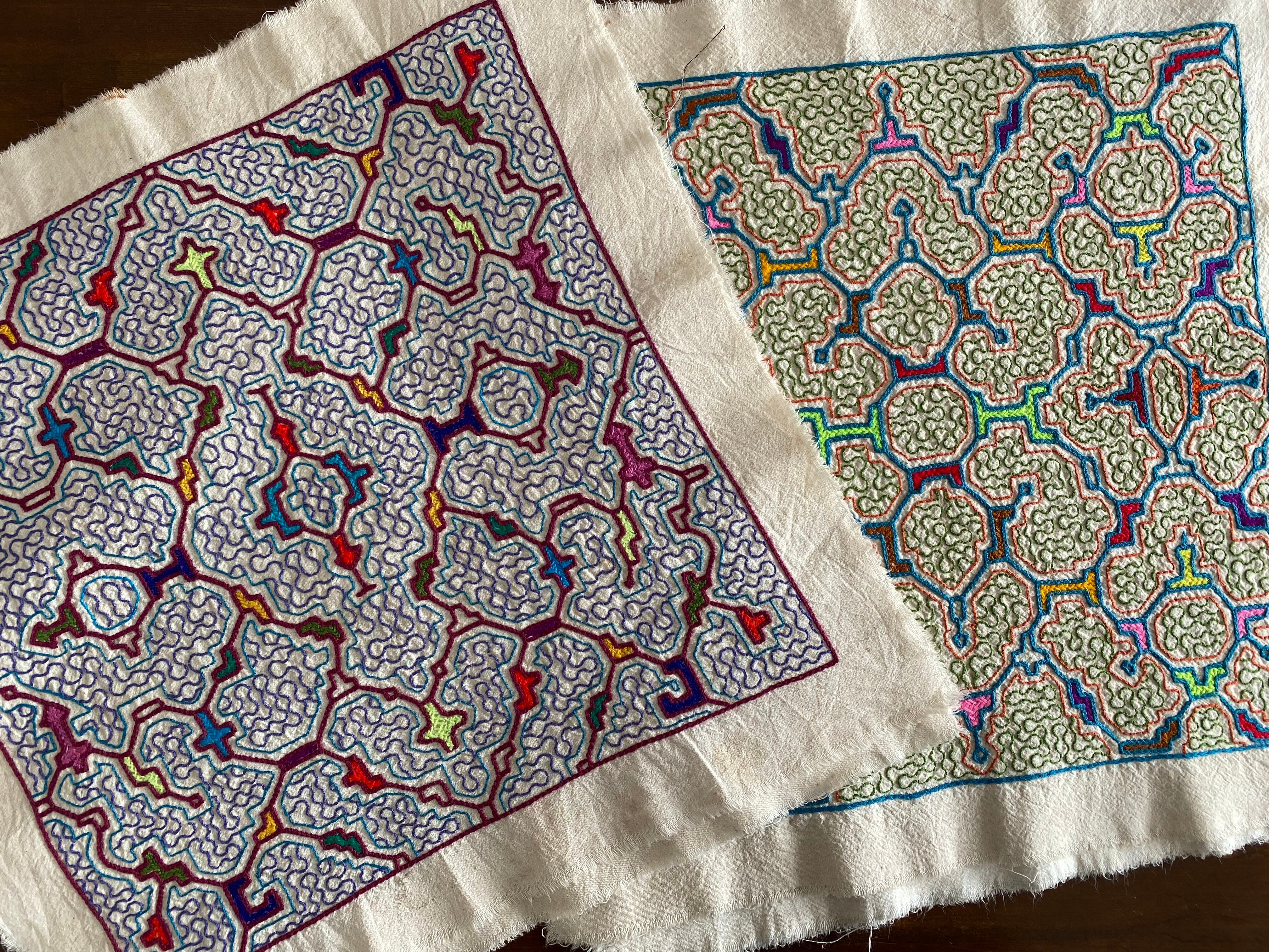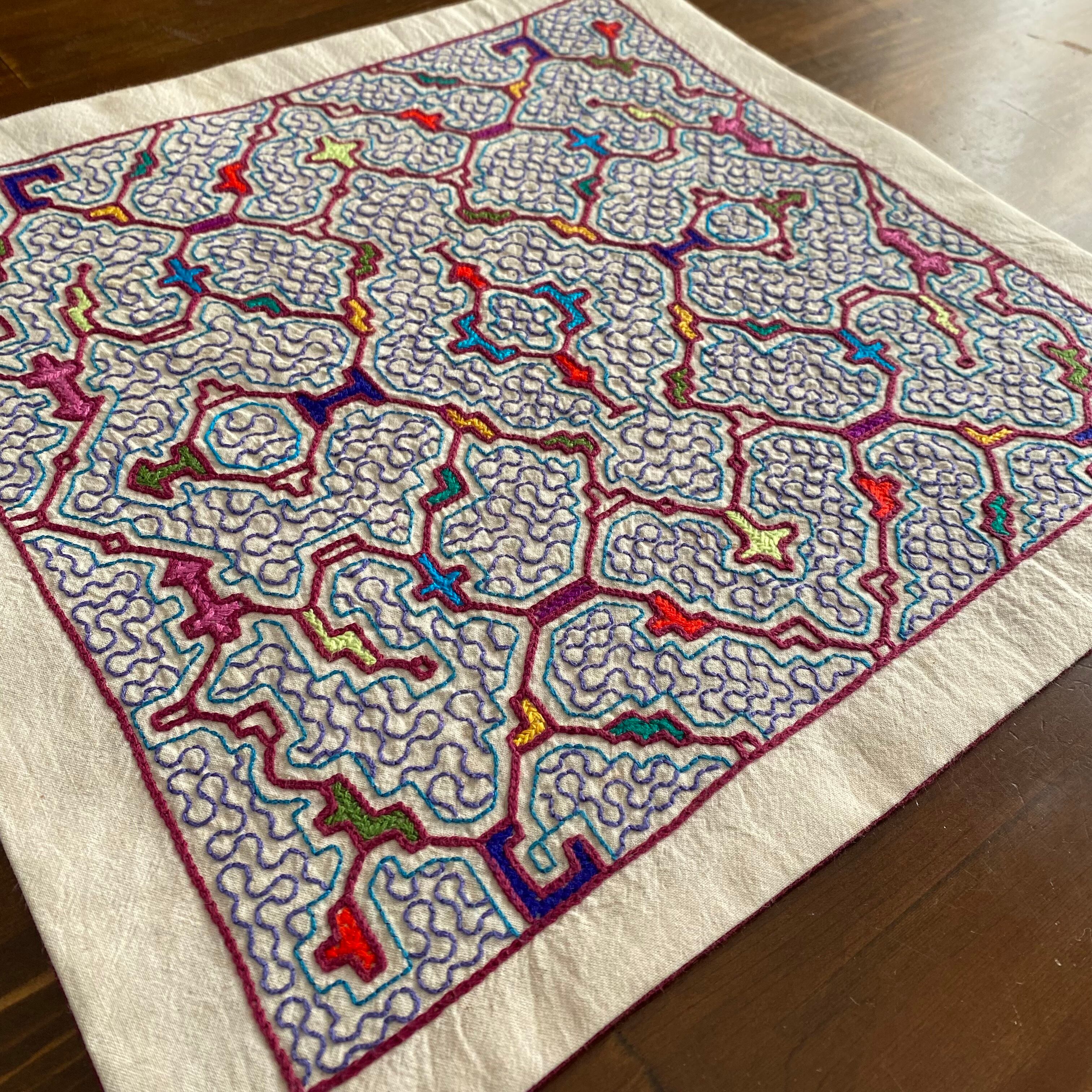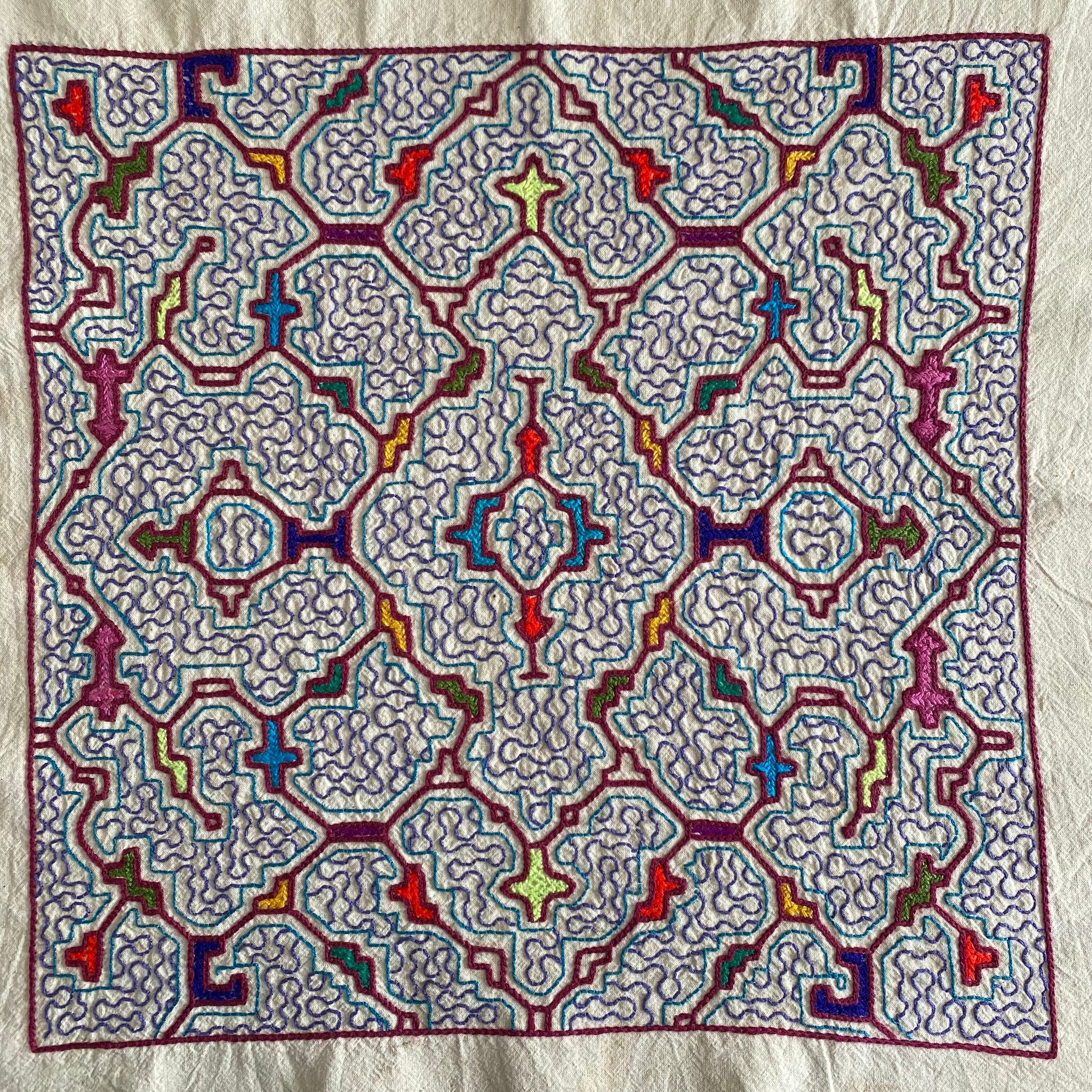 南米アマゾン地域の先住民シピボ族の女性によるフリーハンドの手刺繍です。