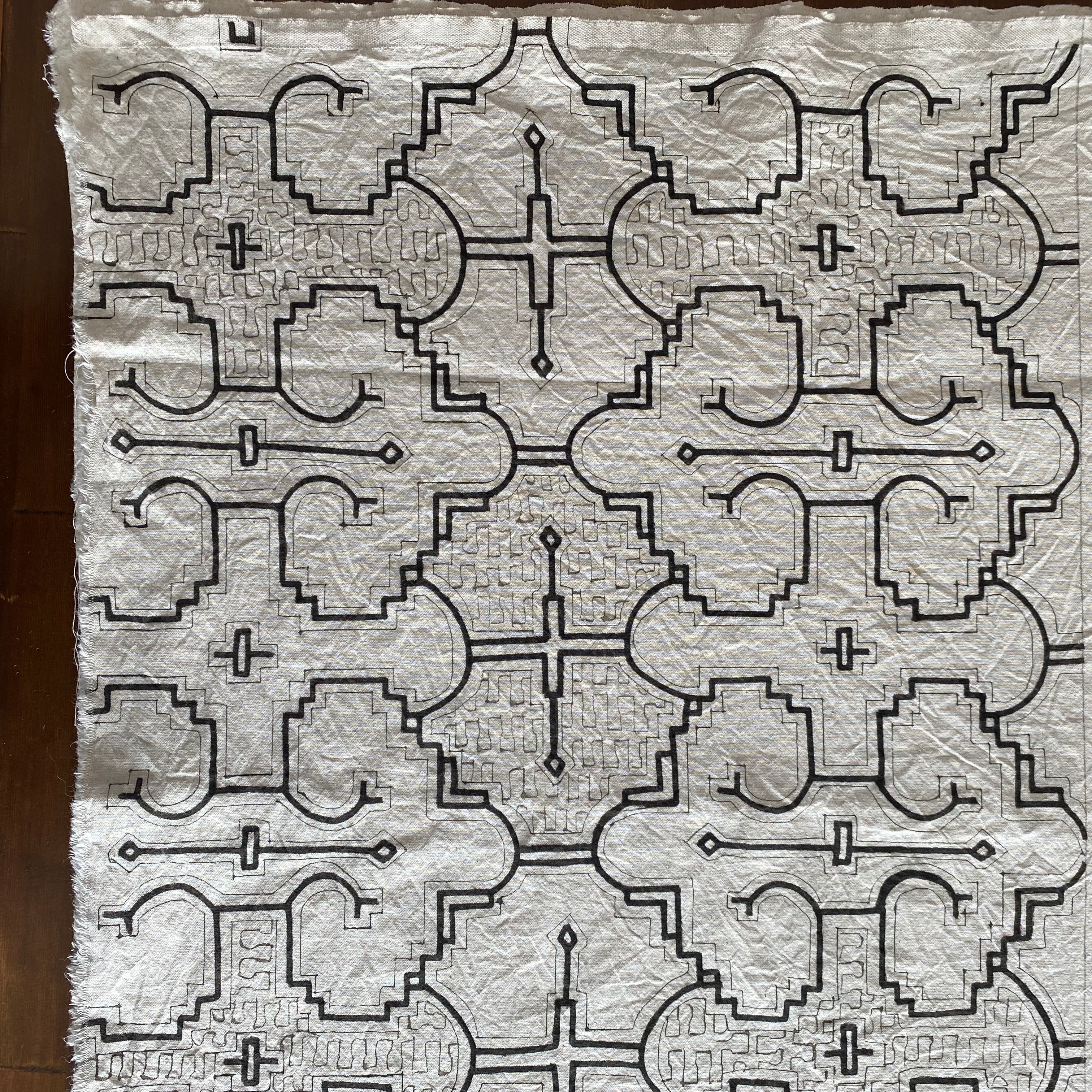 シピボ族による手書きの模様を泥染めで黒く染めた天然素材の工芸布です。
