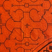 00大判円オレンジ 152x135cm シピボ族の泥染め アマゾンの先住民族の工芸 インテリア、テーブルクロス、タペストリー、カーテン、マルチカバー