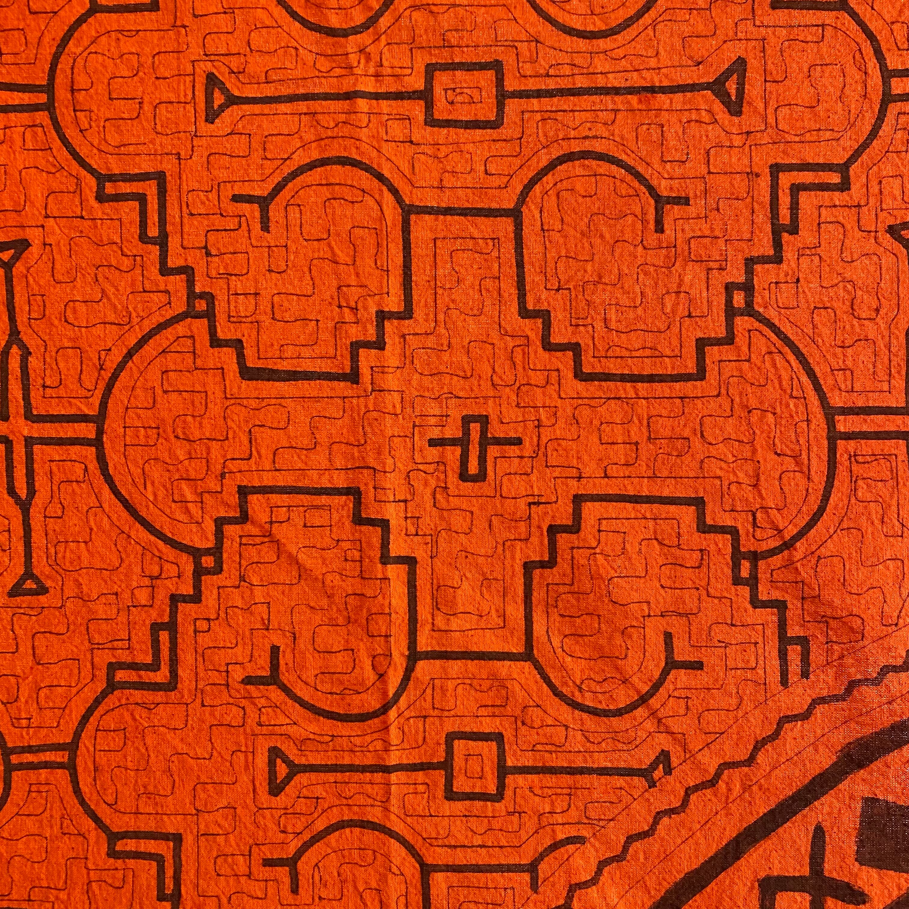 このオレンジ色はアチョーテという食紅にも使われる植物の実(種)を沢山使って染めたもので、天然の草木染めとは思えないような激しい発色で目を奪われます。