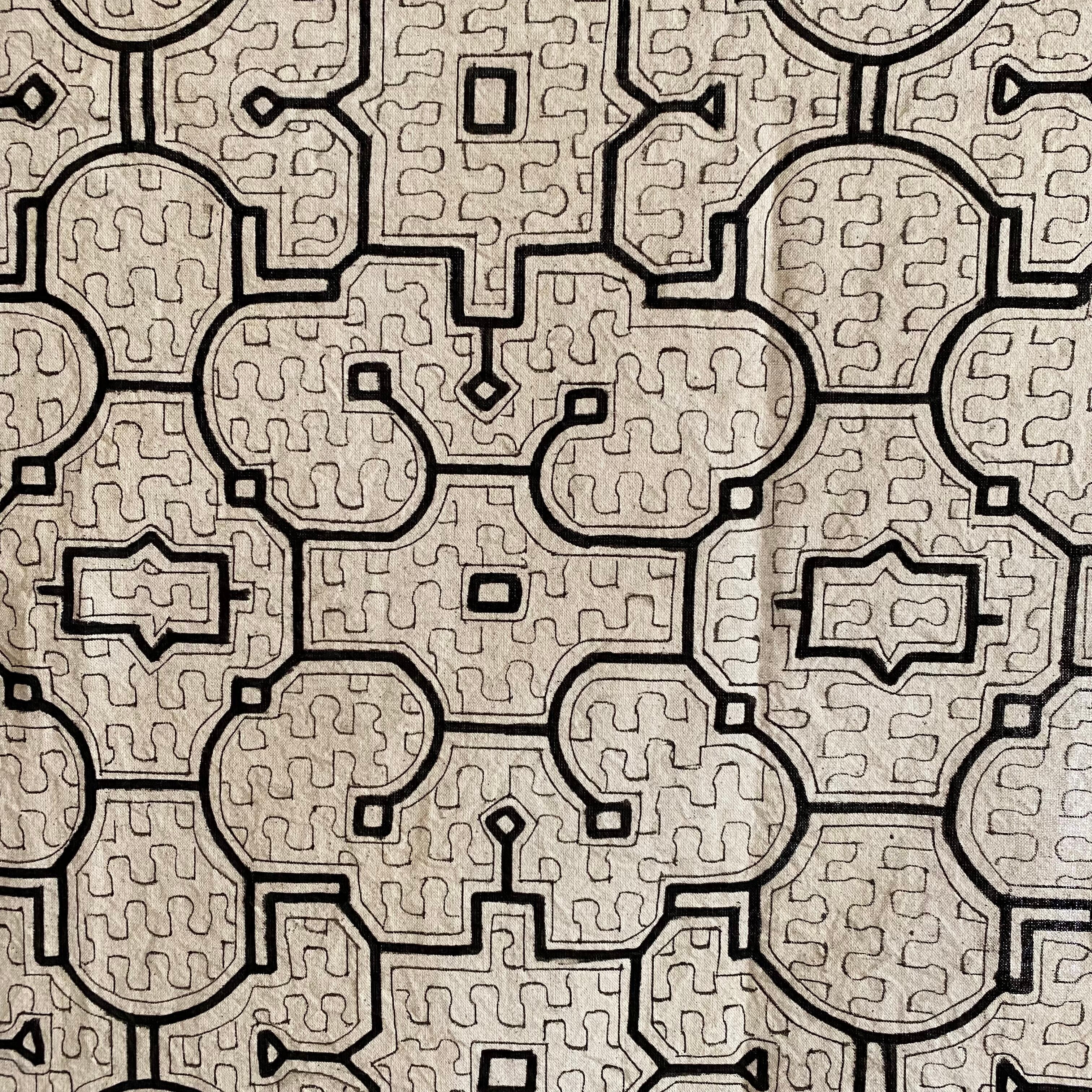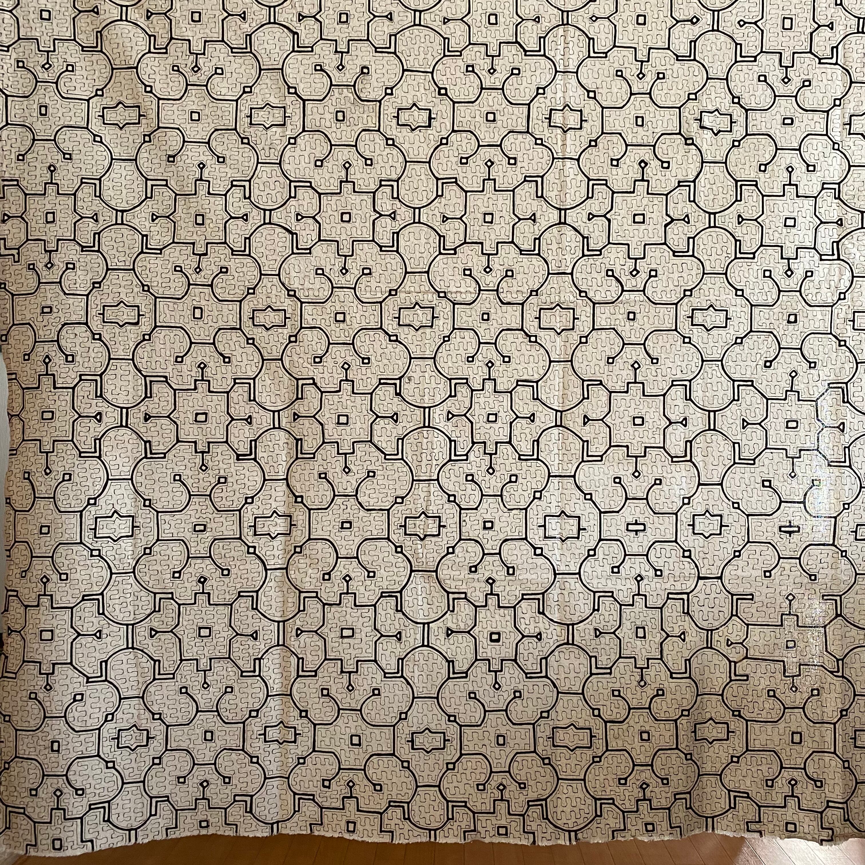 どの部分を中心に見つめるかによって別の表情が生まれ、精神世界を映し出すというフリーハンドの模様はずっと見ていても永遠に飽きない布です。