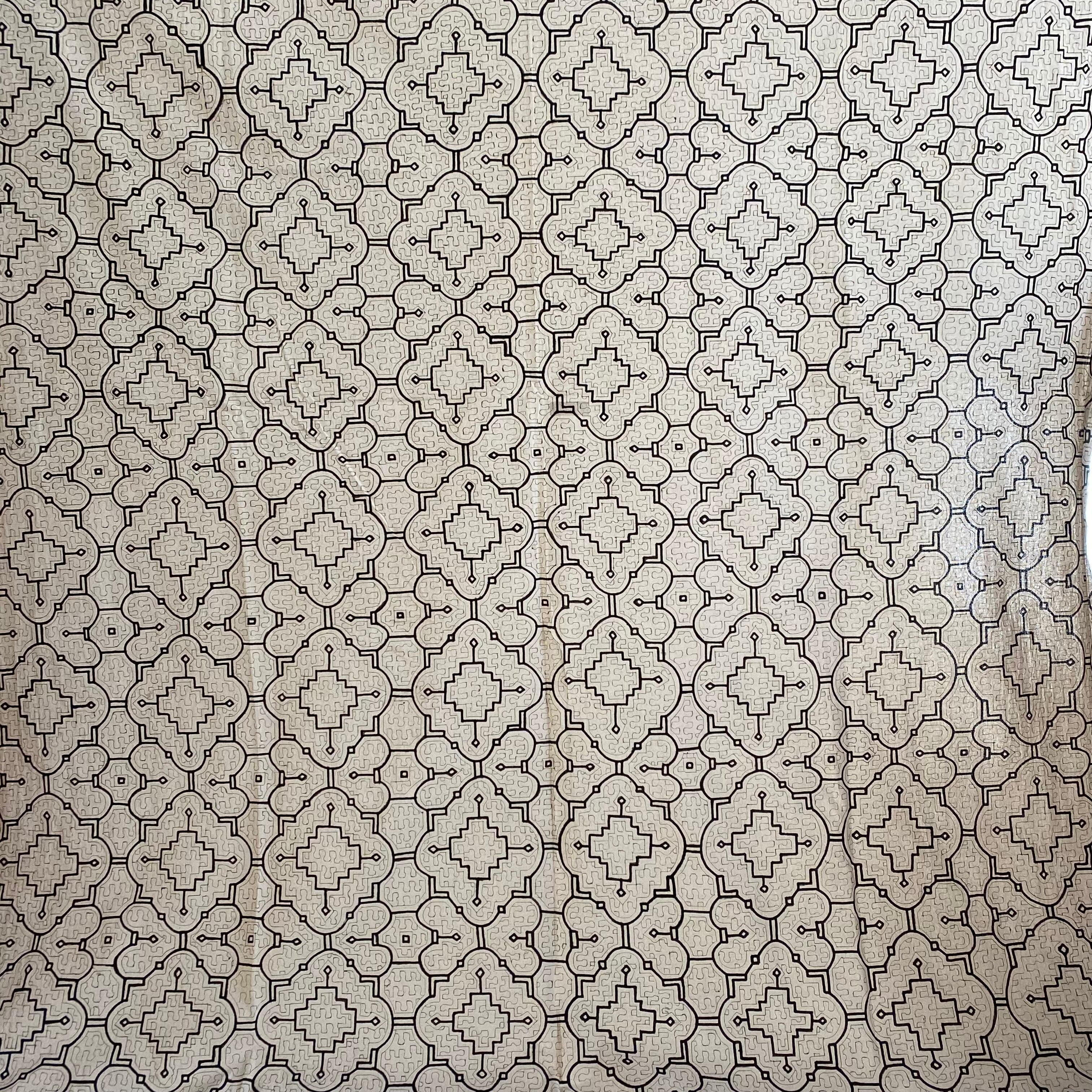 茶色と白地の二種類あり、どちらも「タンニン」を含む樹皮を煮出した染料と、森の奥地から採取する「鉄分」の強い特別な泥の化合を利用した染色方法で、フリーハンドで描かれる幾何学模様のデザインの部分だけが黒く染まることが特徴です。