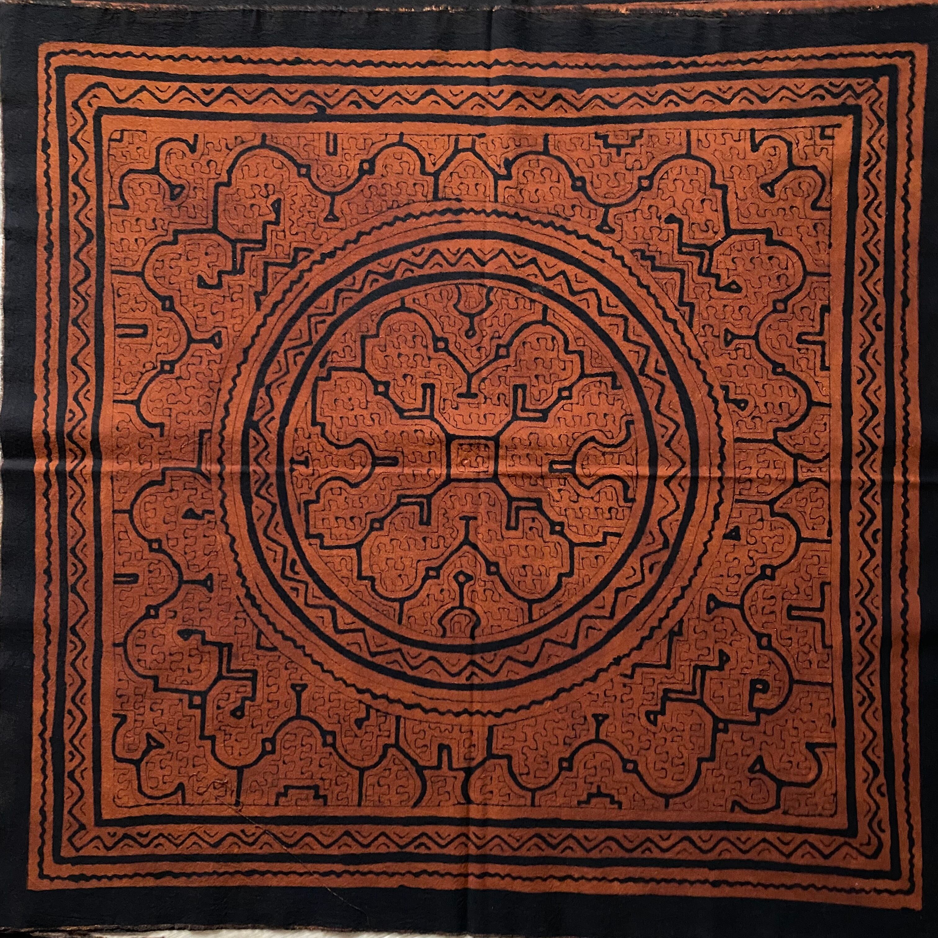 中型茶円70x72cm-06シピボ族の泥染め 風呂敷 テーブルセンター