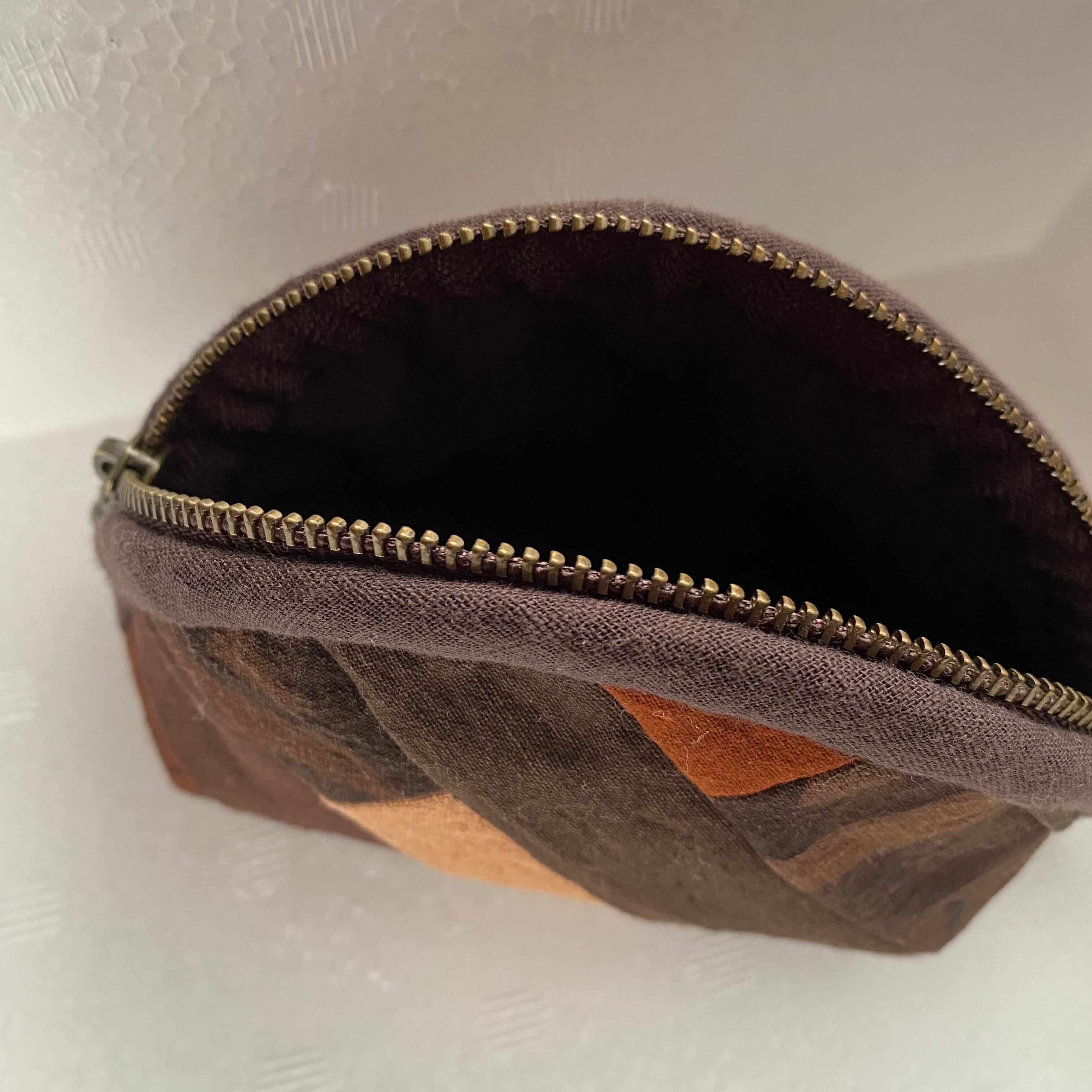Po6丸ポーチ30 中 草木染めパッチワーク シピボ族の泥染め ペルーアマゾンの先住民族 シピボ族の泥染め 草木染め | アマゾン屋 シピボ族の泥染めとバッグと雑貨
