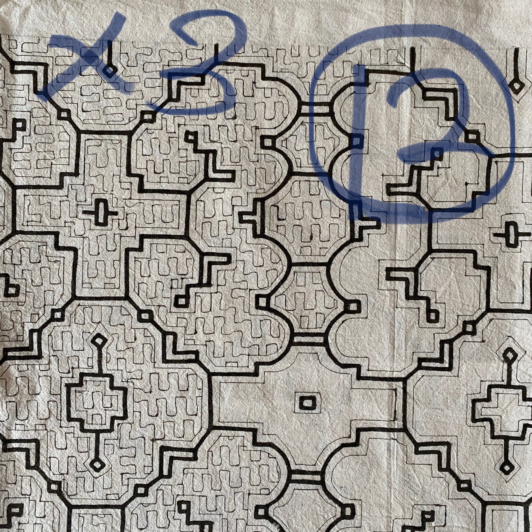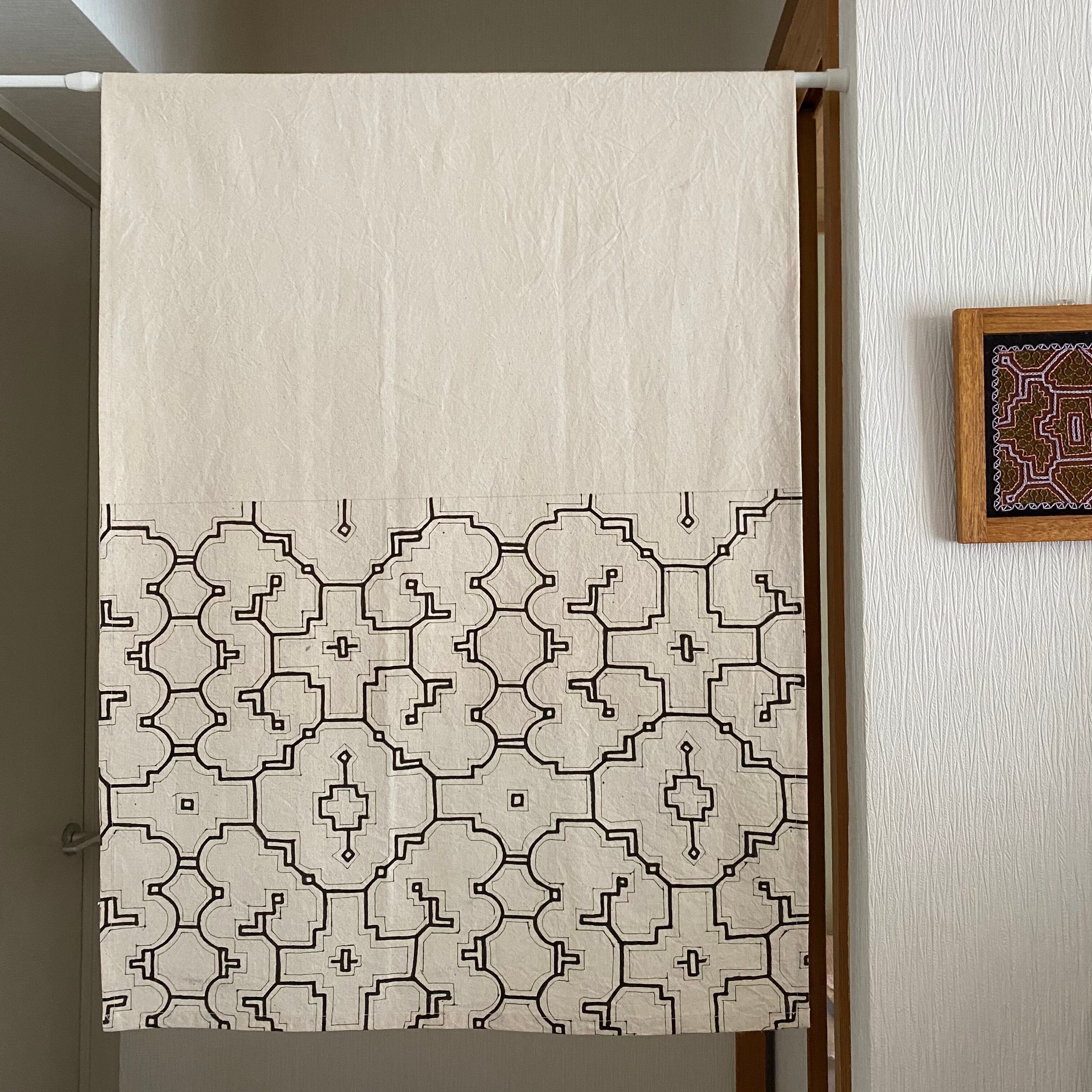 のれん12 途中図 3枚組 40+40+35cmx140cm シピボ族の泥染め暖簾 先住民族の手仕事 スピリチュアルなインテリア