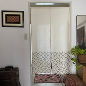 南米アマゾンの先住民族の伝統的な手書き模様を暖簾のサイズに染めた一点ものの商品です。