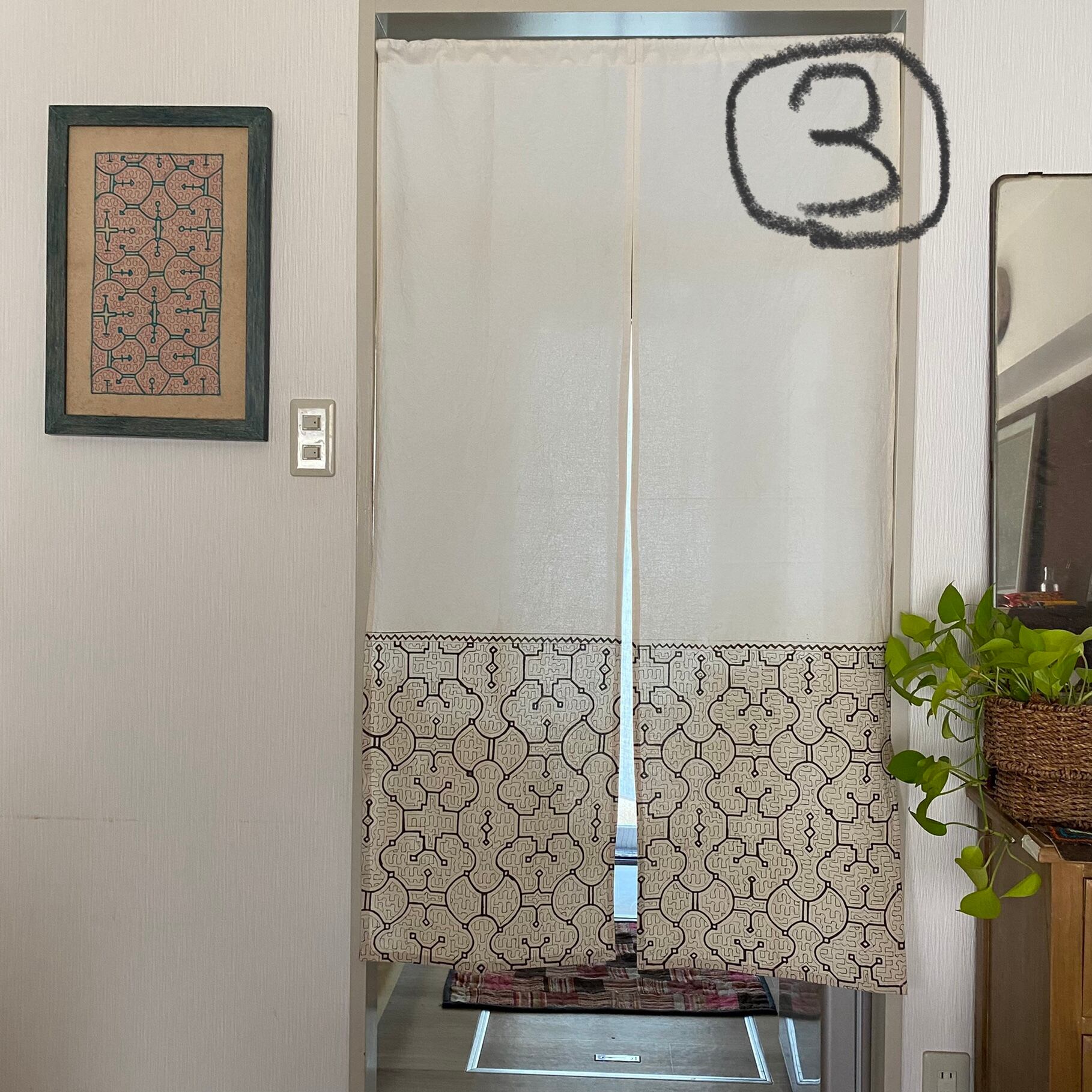 のれん13 途中図ロング 3枚組 120x140cm シピボ族の泥染め 先住民族の手仕事 スピリチュアルなインテリア