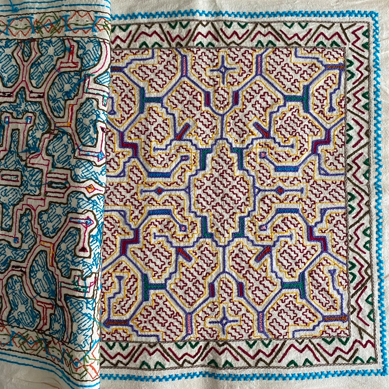 シピボ族の刺繍10 中型45cm 赤 シピボ族手刺繍 スピリチュアルアート 先住民族の工芸Shipibo | アマゾン屋 シピボ族の泥染めとバッグと雑貨