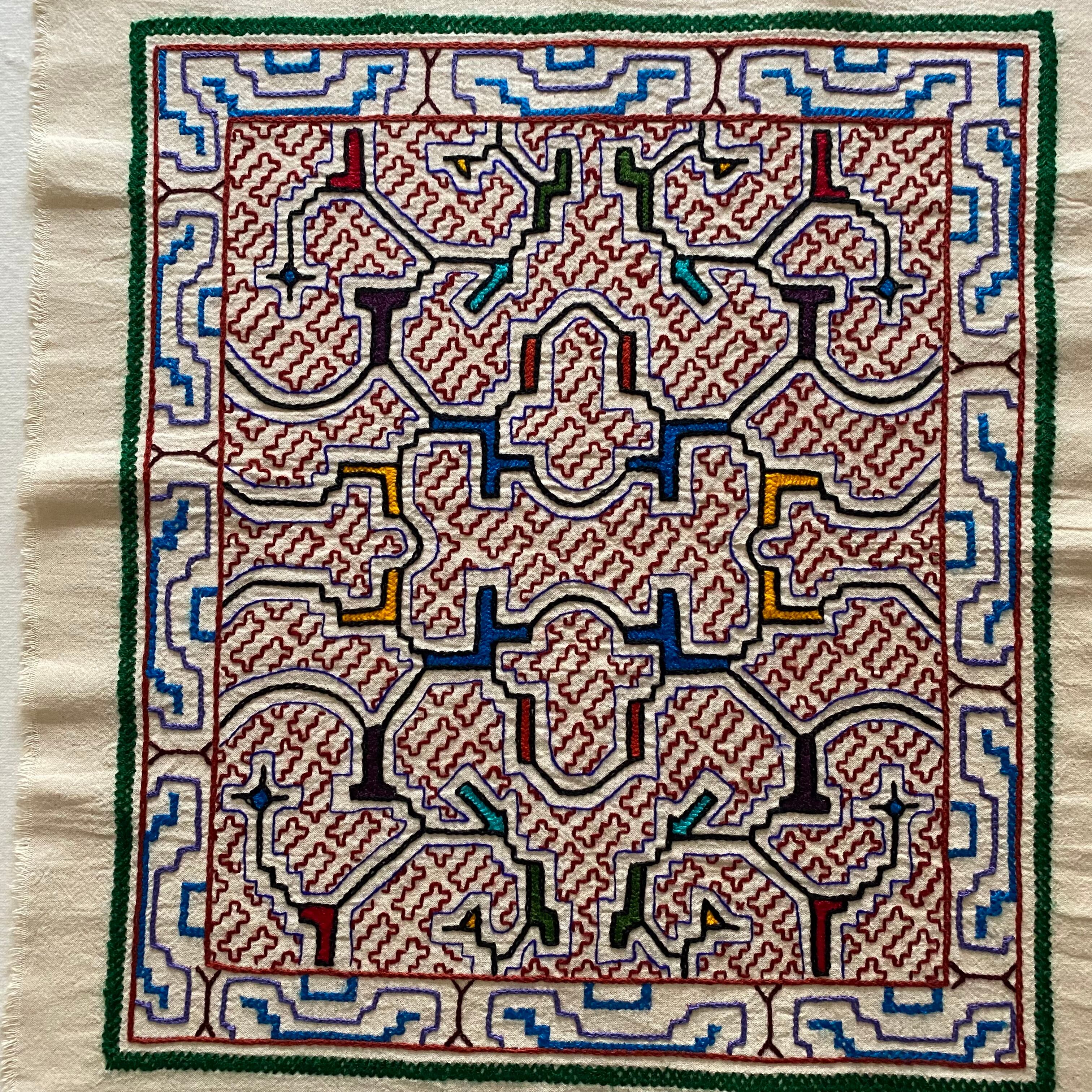 シピボ族の刺繍8 中型45cm 赤シピボ族手刺繍 スピリチュアルアート 先住民族の工芸Shipibo | アマゾン屋 シピボ族の泥染めとバッグと雑貨