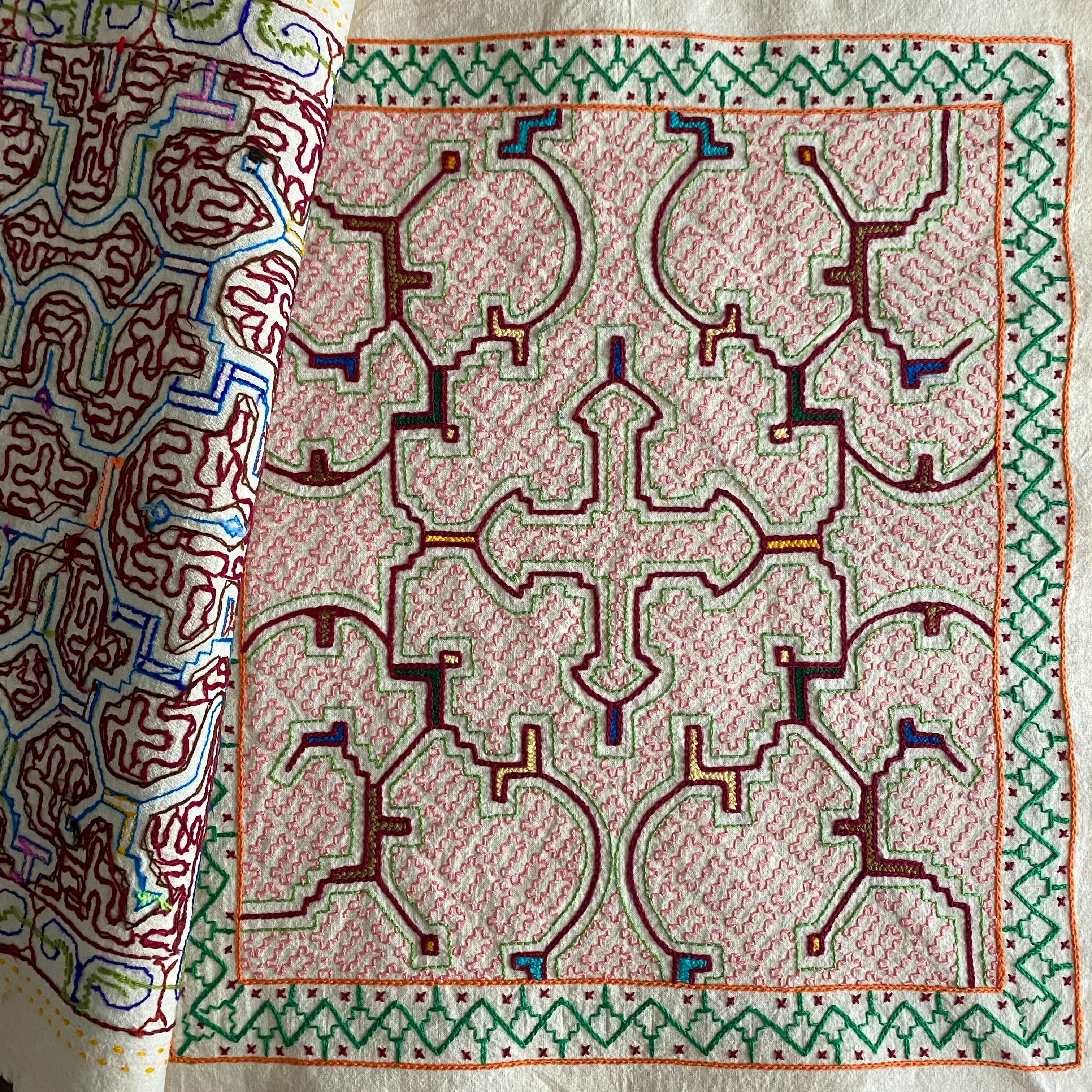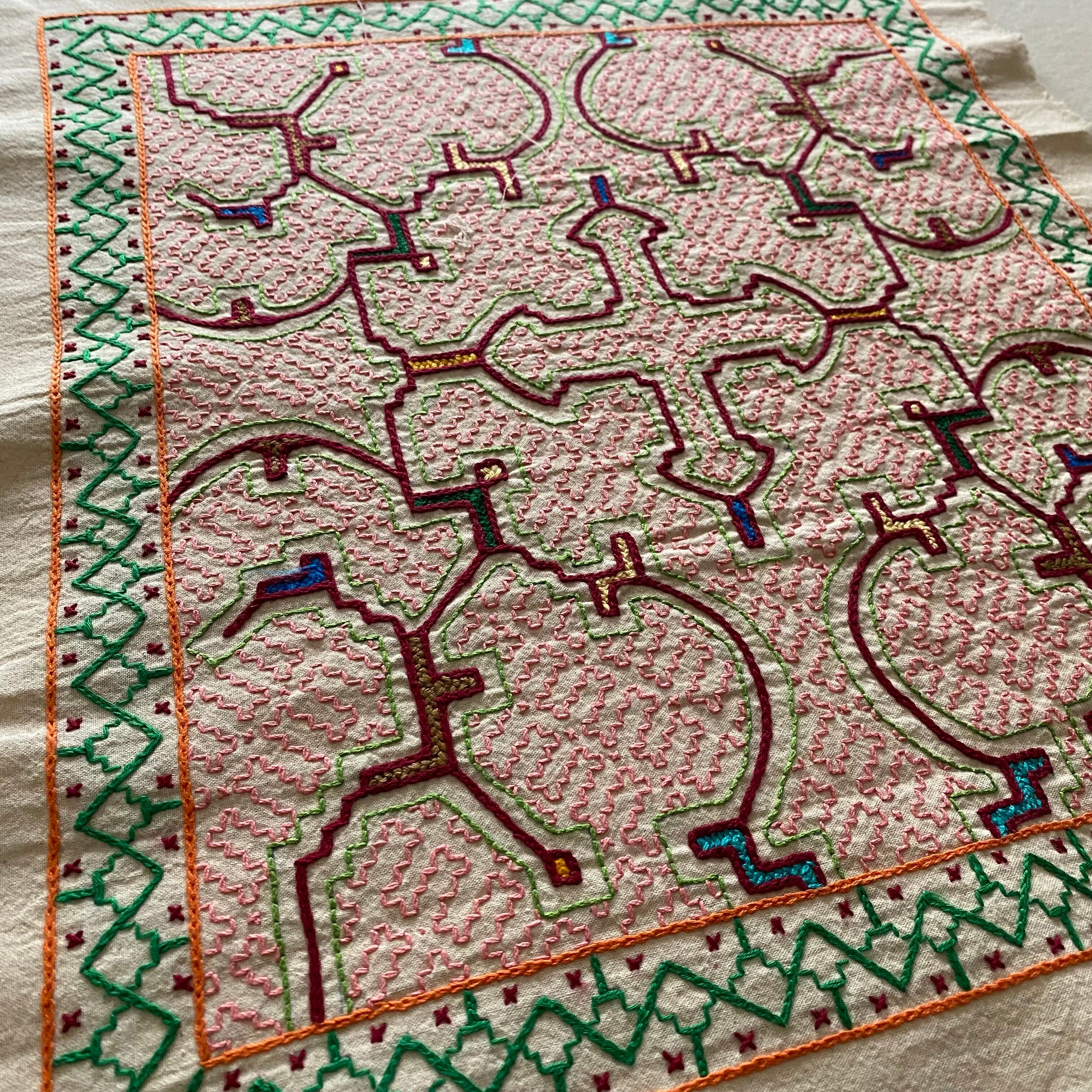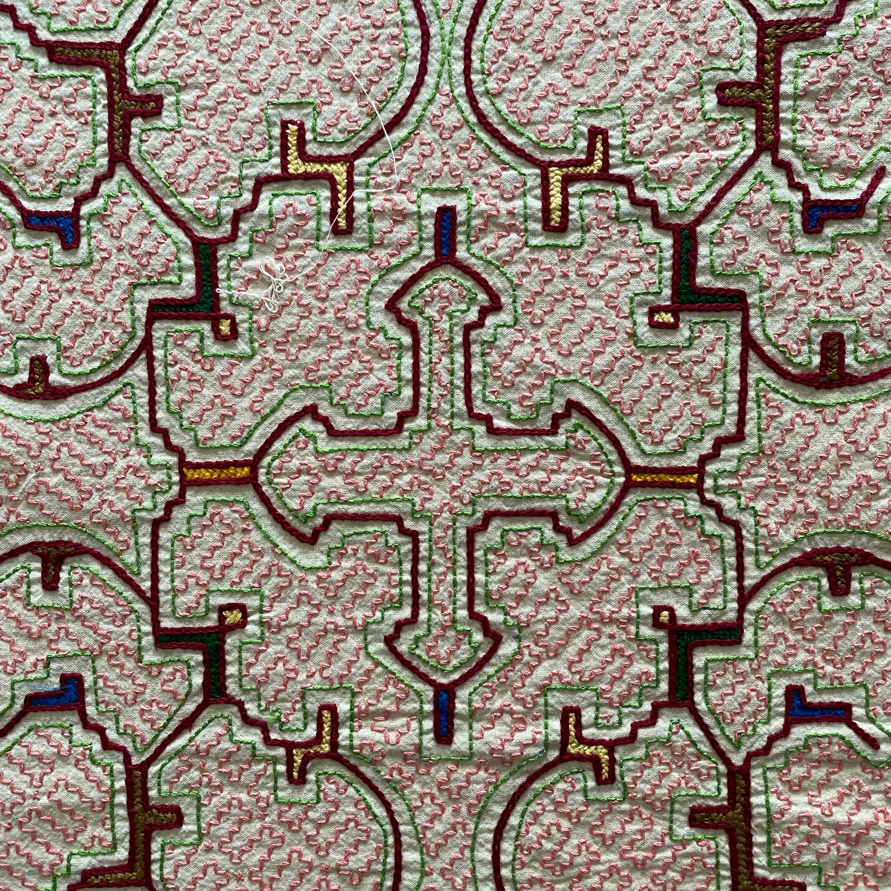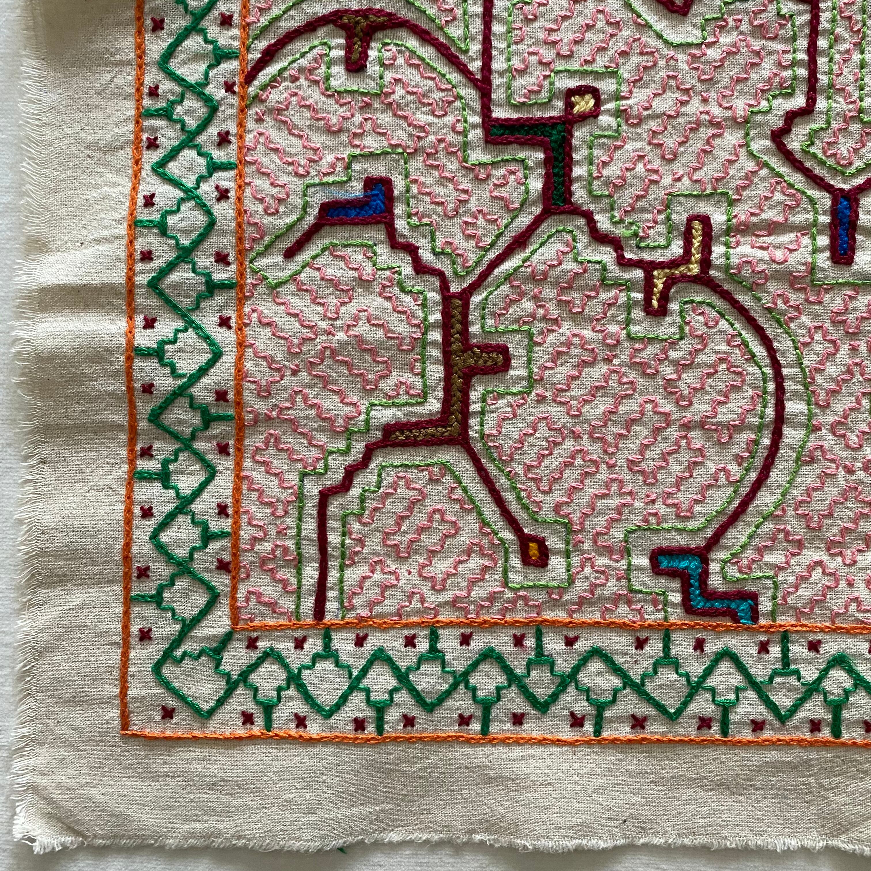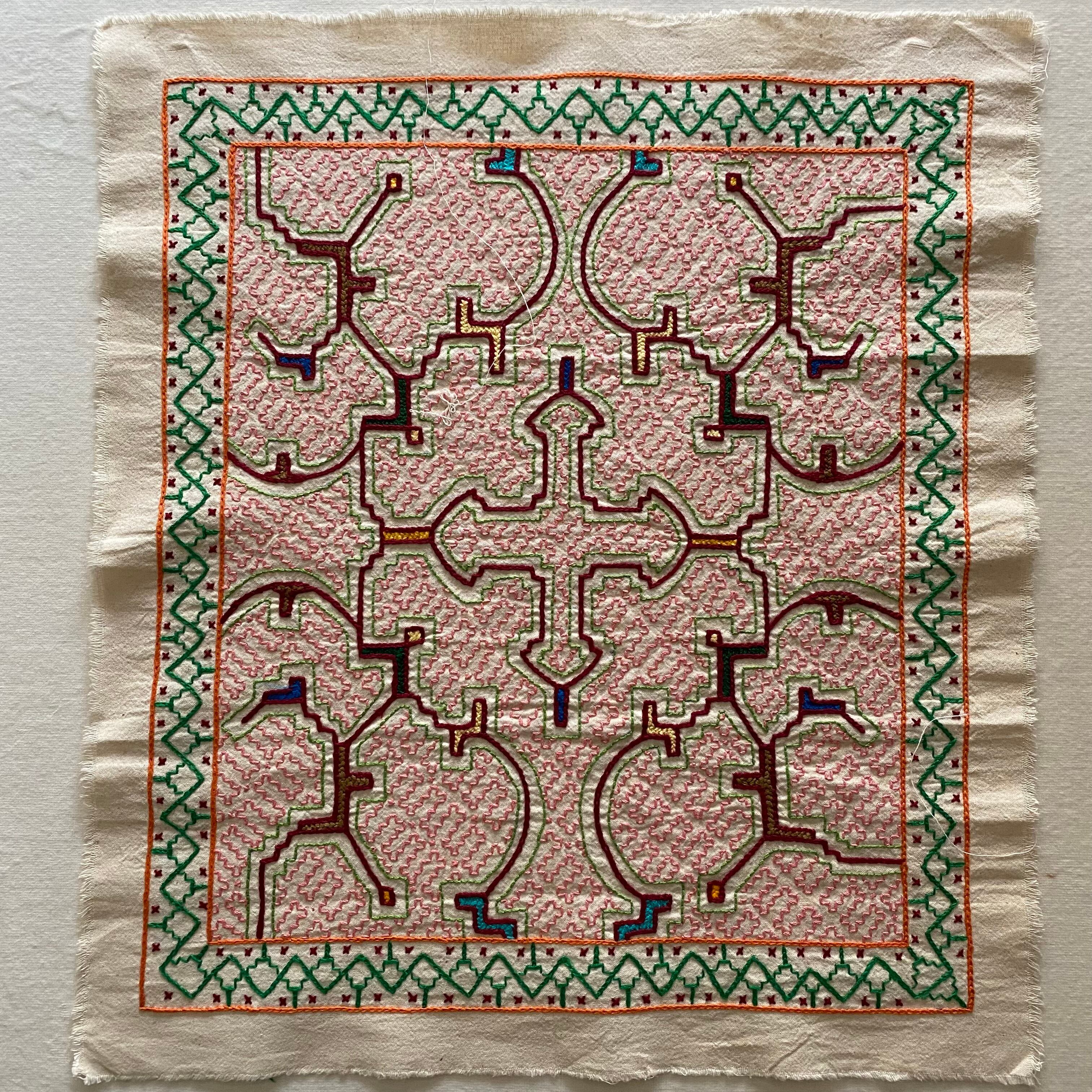 シピボ族の刺繍5 中型45cm ピンク シピボ族手刺繍 スピリチュアルアート 先住民族の工芸Shipibo