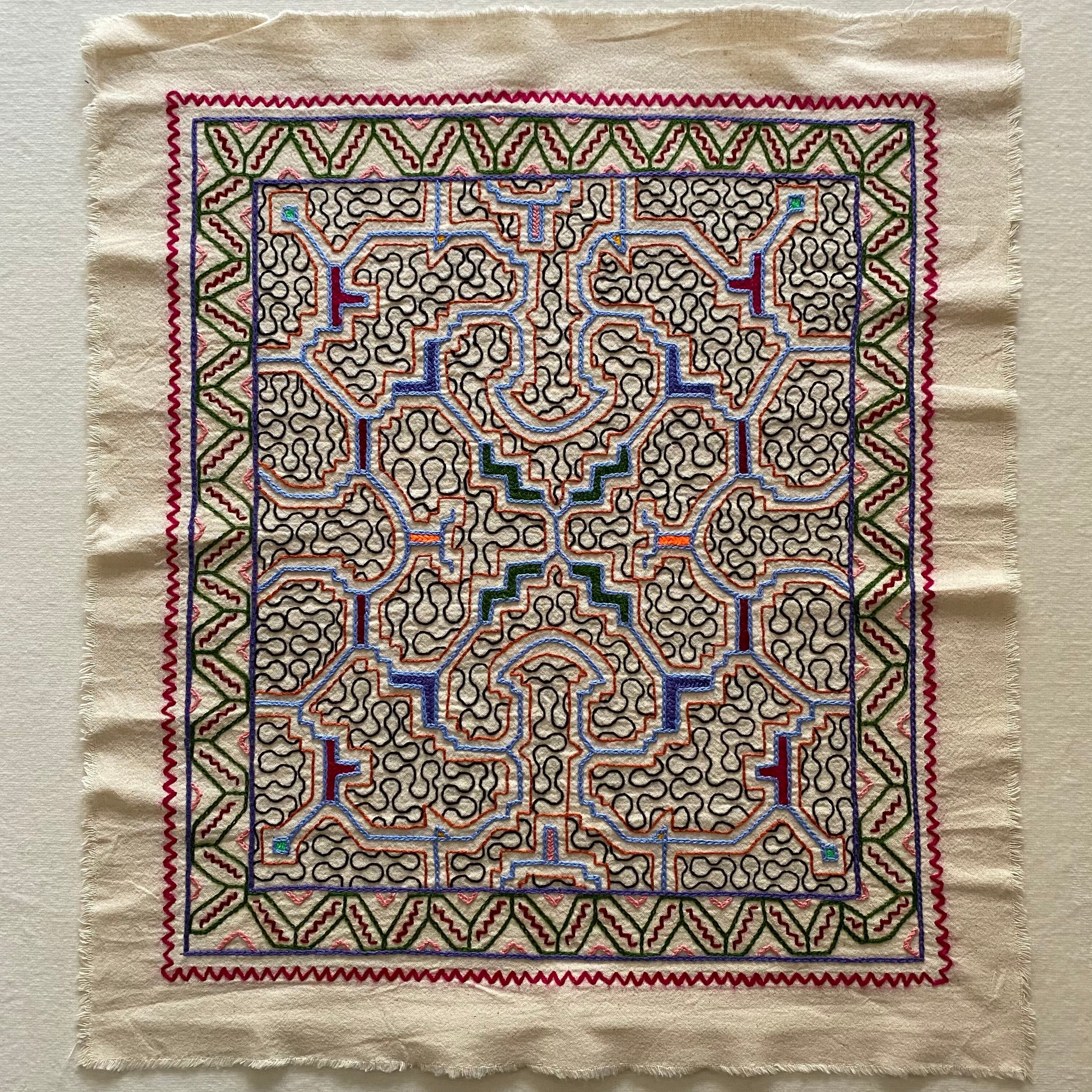シピボ族の刺繍7 中型45cm 黒シピボ族手刺繍 スピリチュアルアート 先住民族の工芸Shipibo