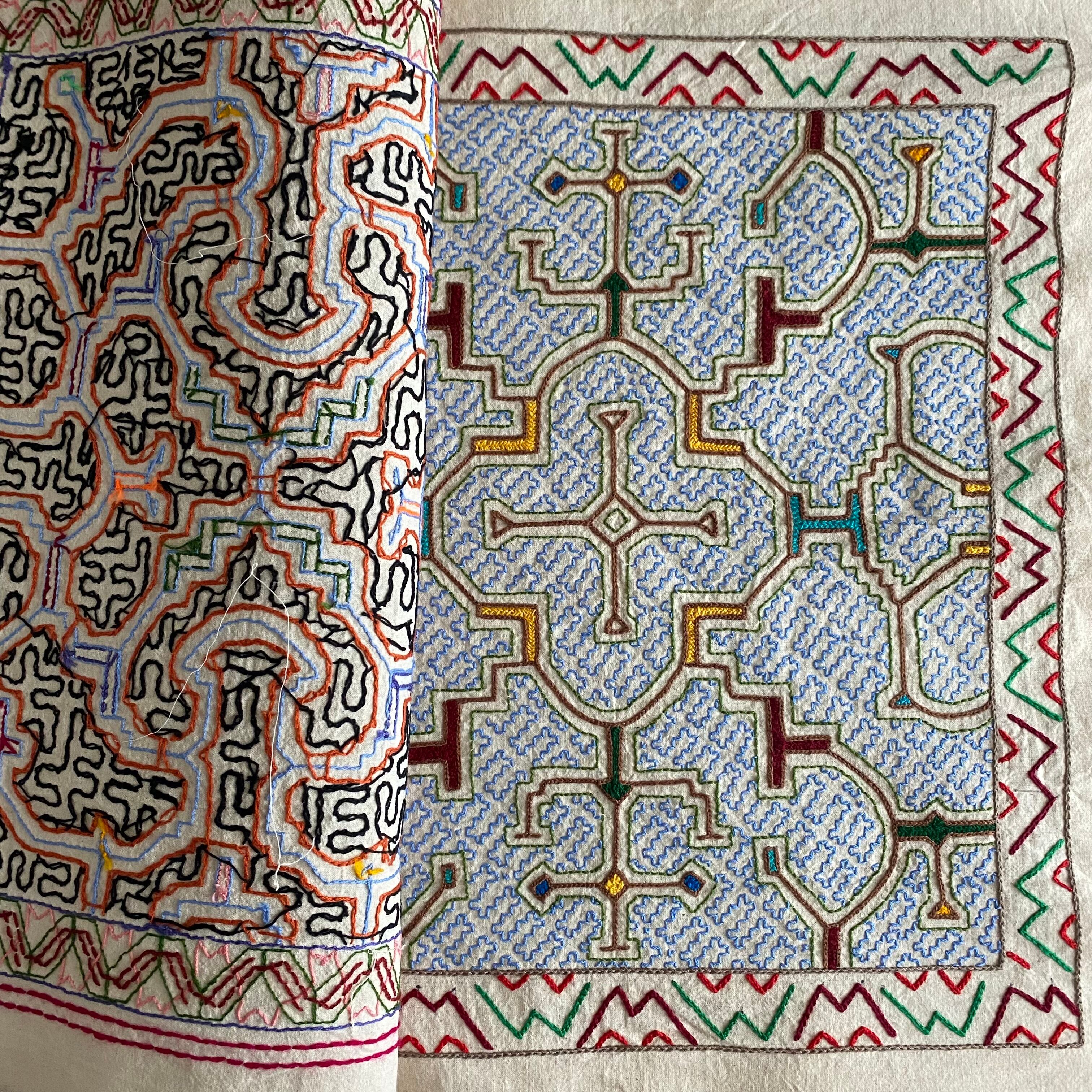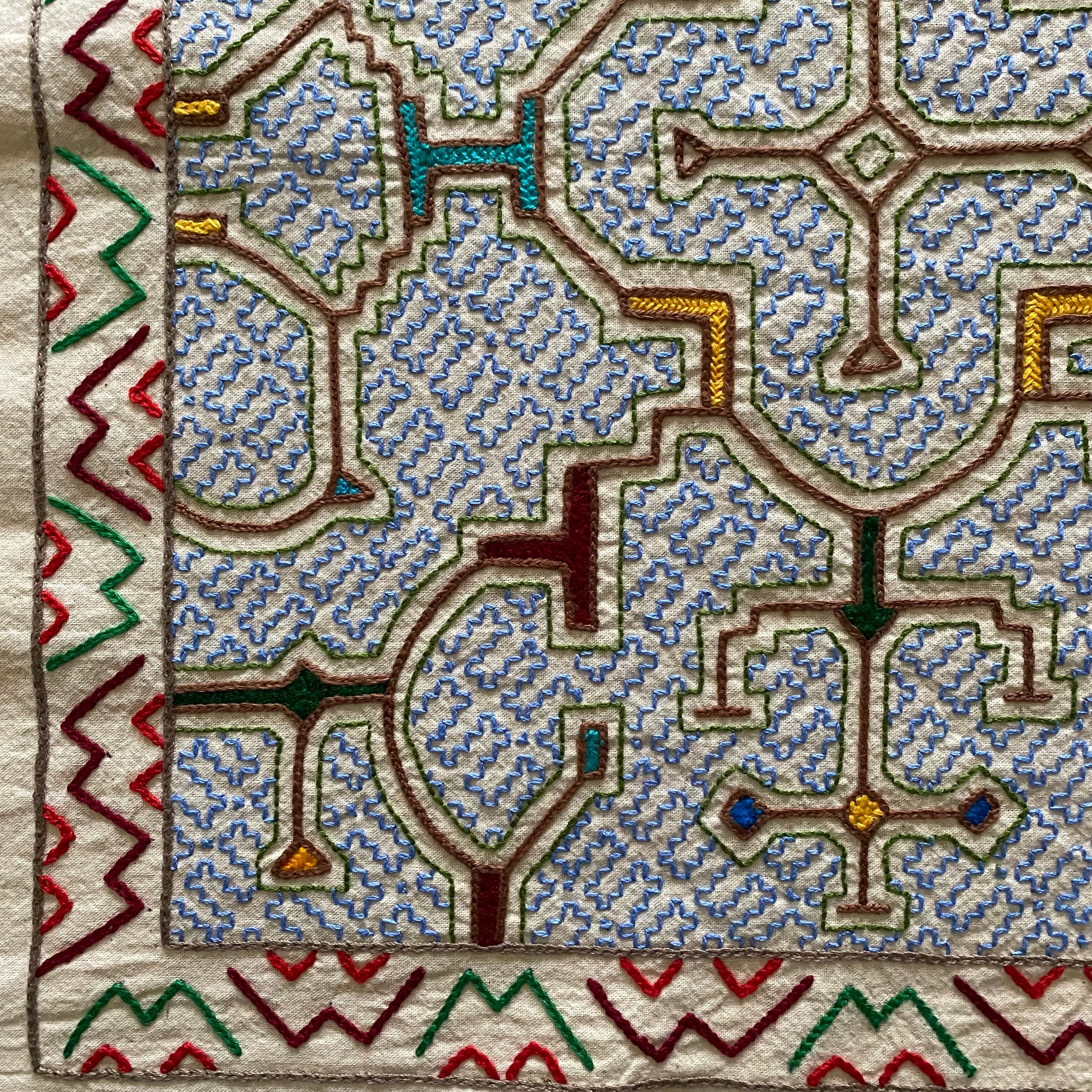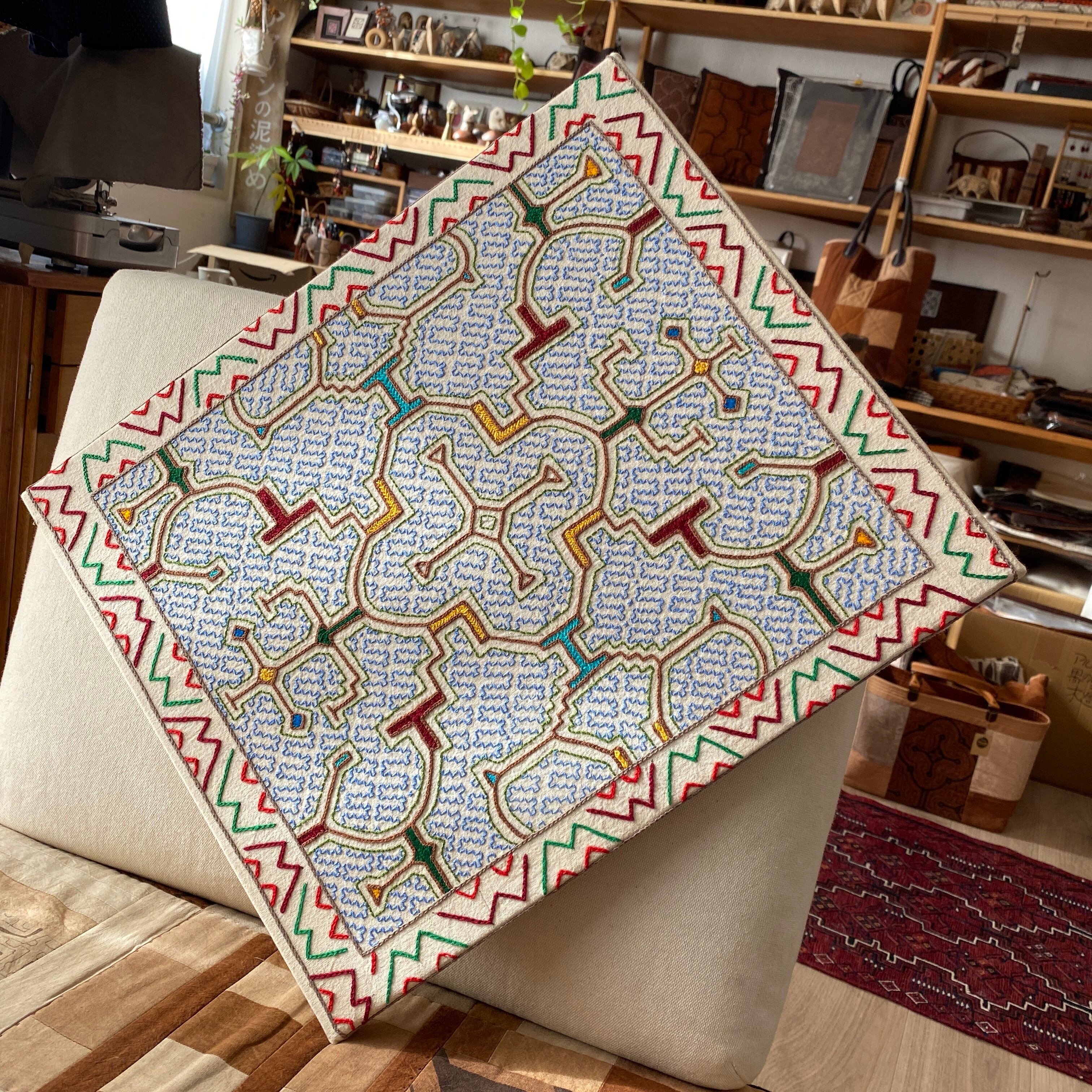 木綿のキャンバス生地にシピボ族の女性がフラーハンドの模様を手刺繍したもので、模様も色の組み合わせも全てが一点ものです。