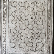白地●デザインを描いた上から全面に泥を付けて模様だけが染まり、最後に泥は洗い流します。
