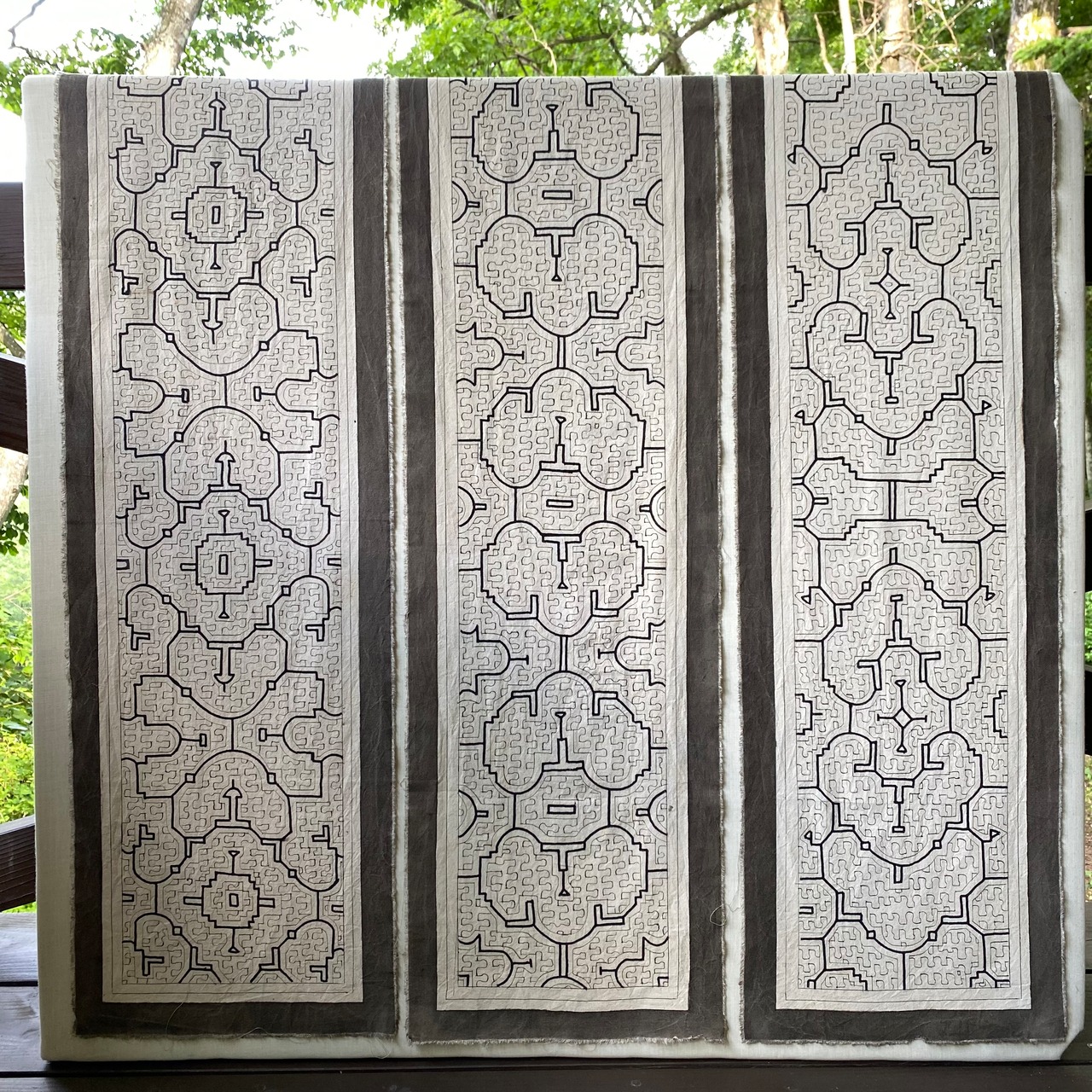 テーブルランナー 30x190cm ve3 シピボ族の泥染め 南米アマゾンの先住民族の工芸 天然染め