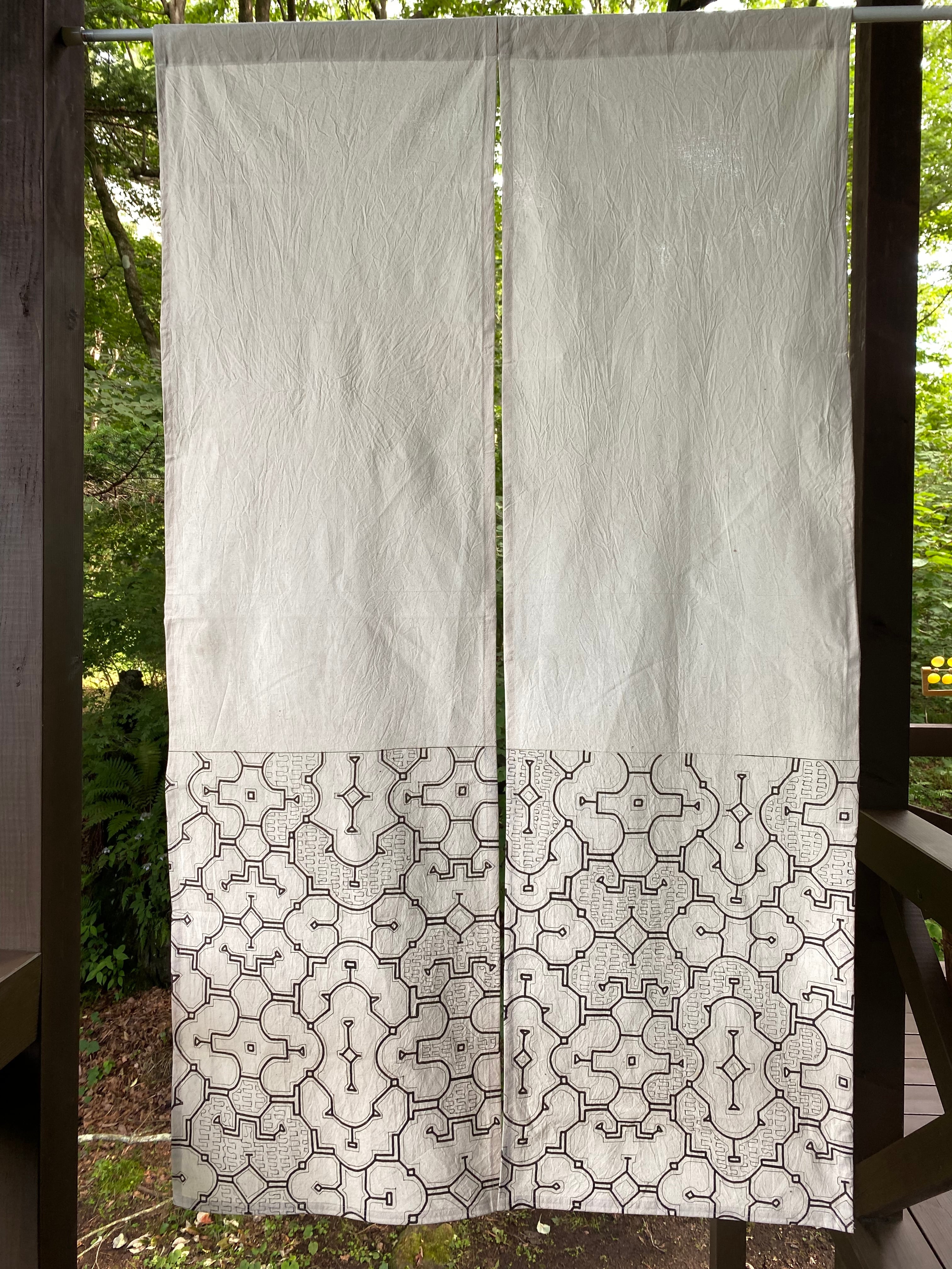 のれん14 途中図白80cmx140xm シピボ族の泥染め 先住民族の手仕事 スピリチュアルなインテリア