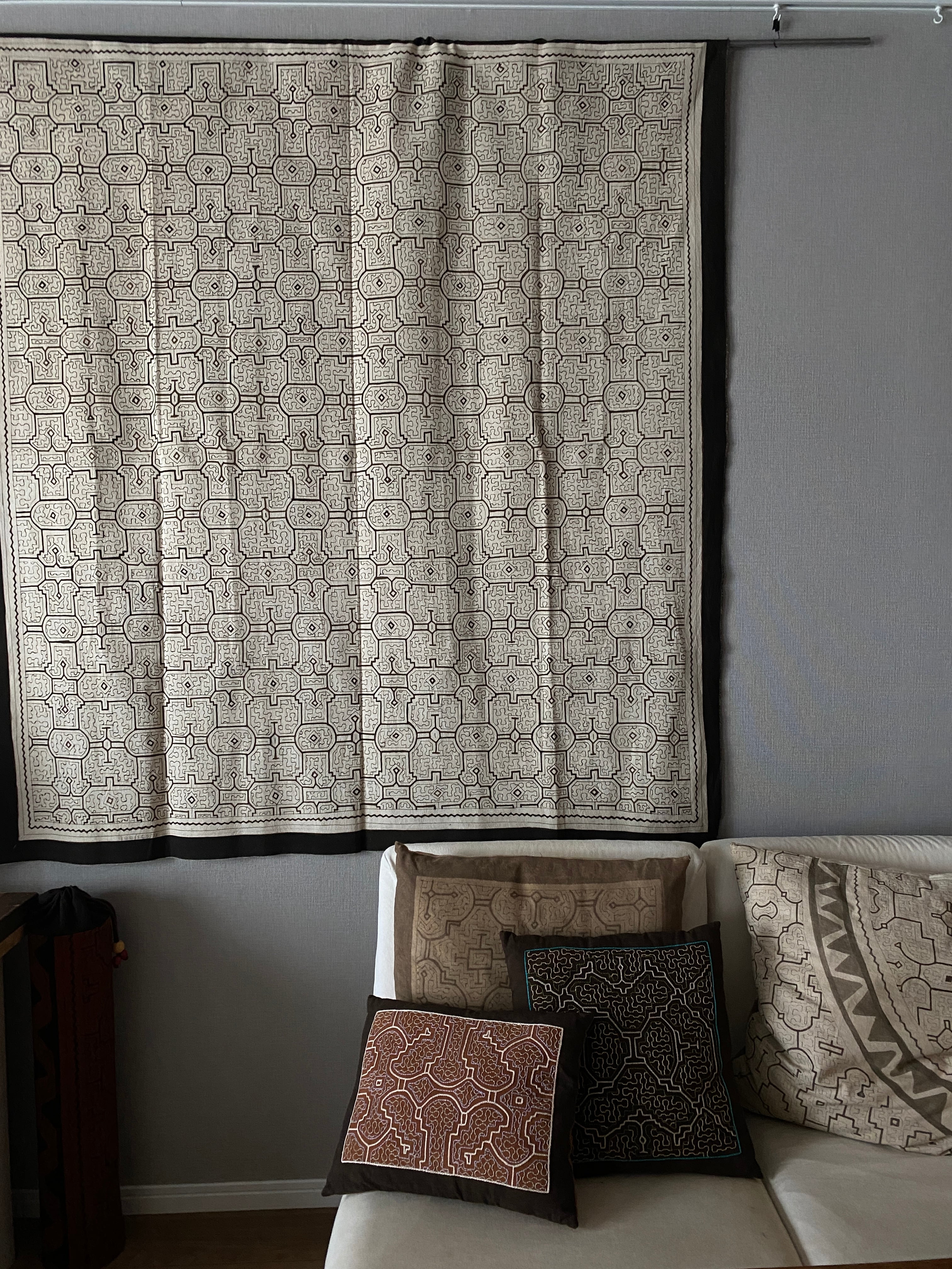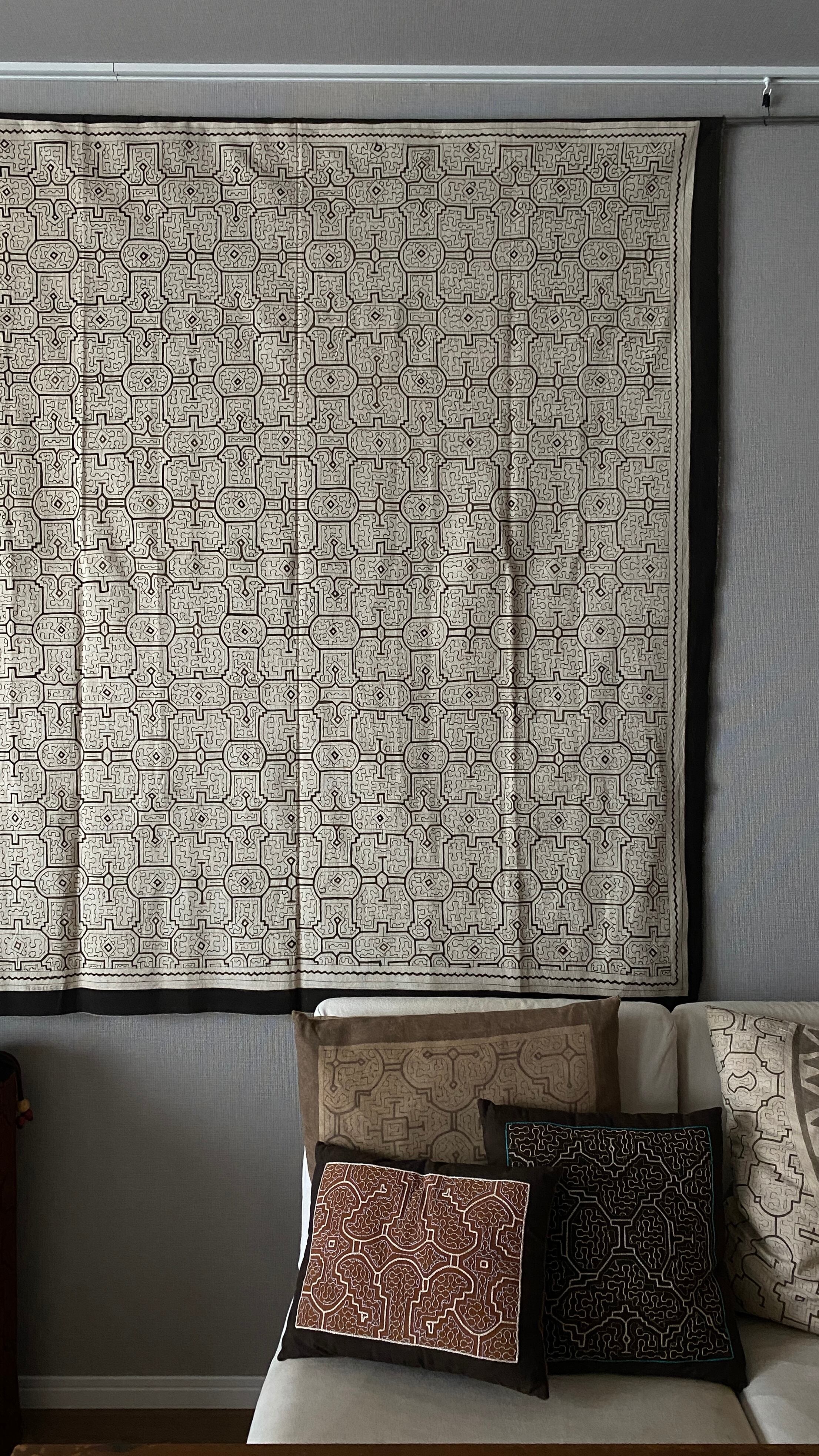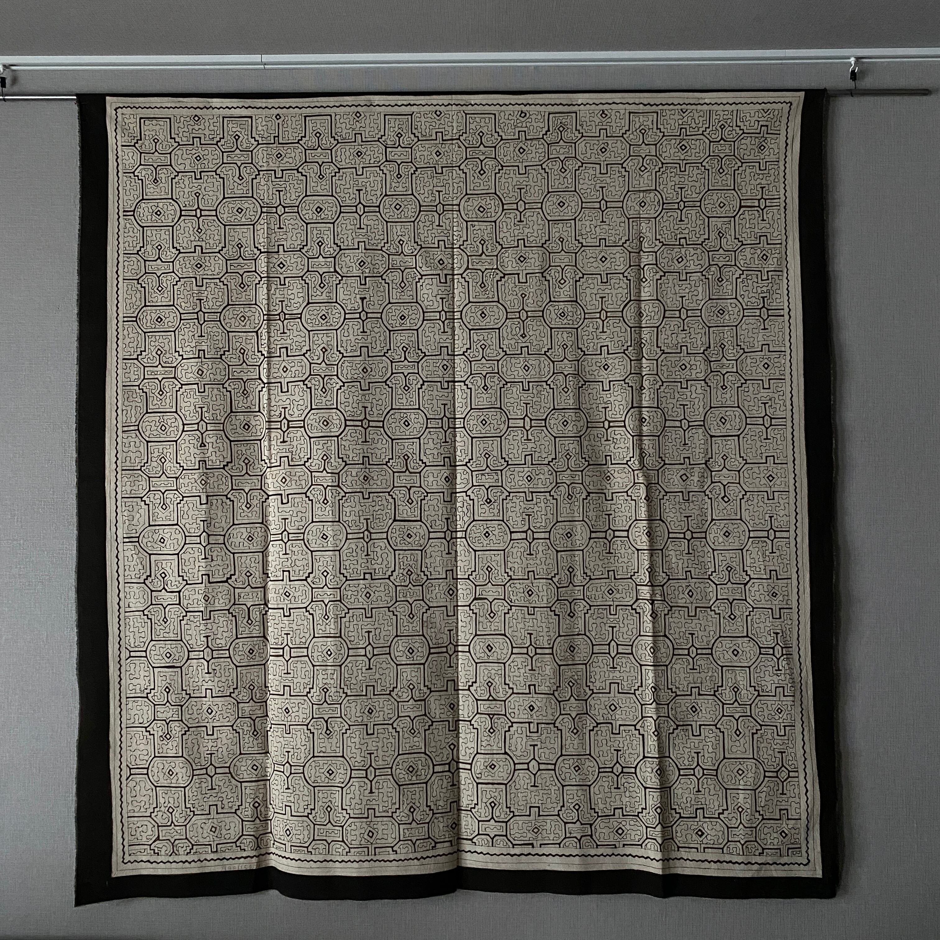 29大判白L9 143x153cm  シピボ族の泥染め アマゾンの先住民族の工芸 天然染めインテリア、テーブルクロス、タペストリー、カーテン、マルチカバー