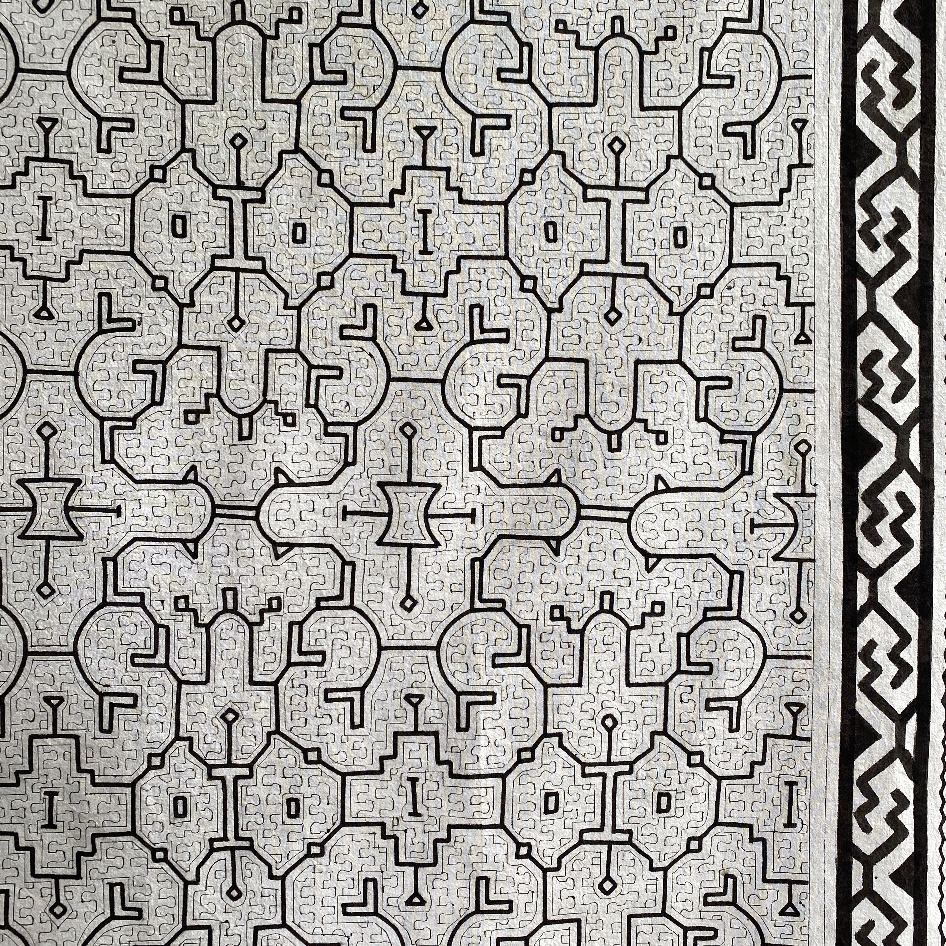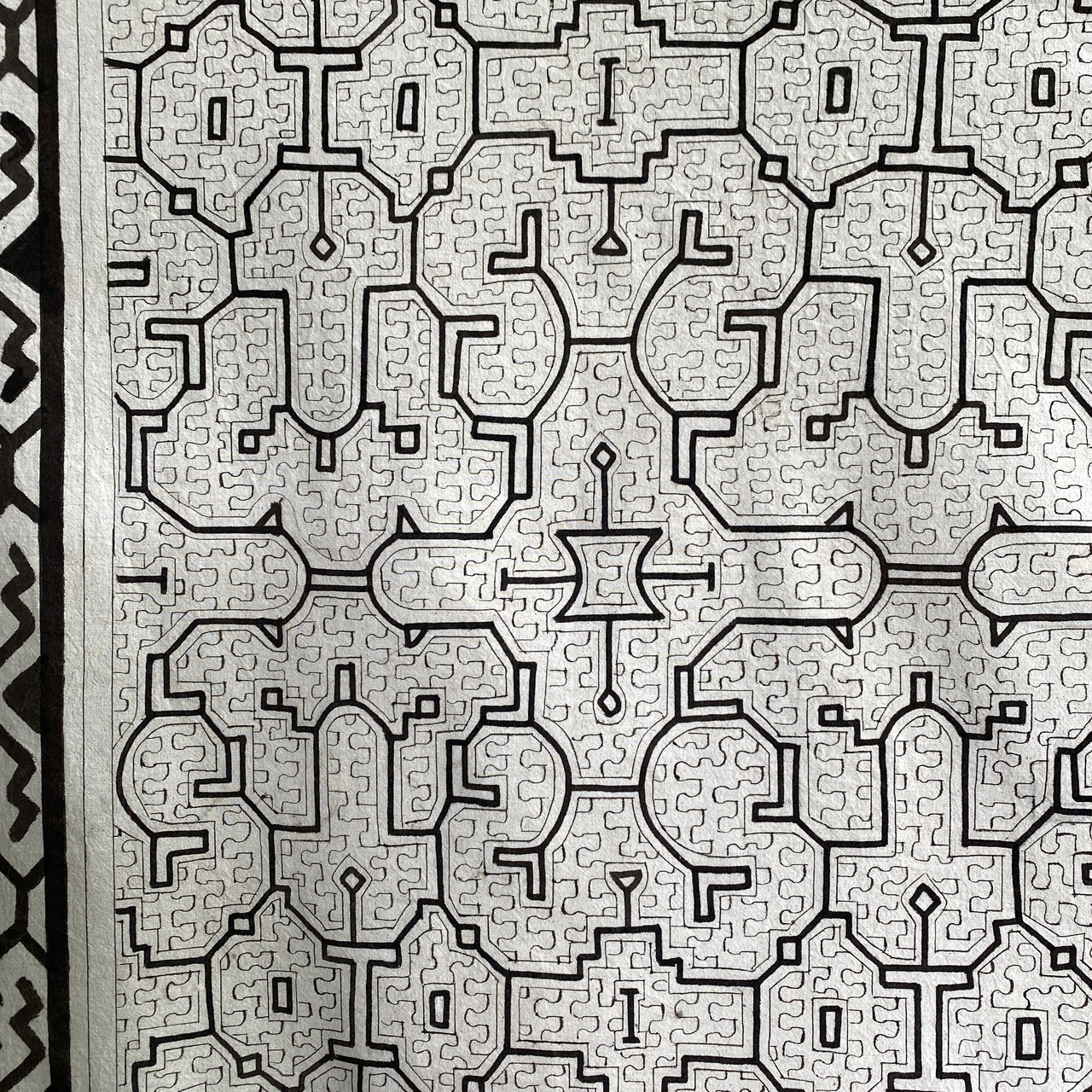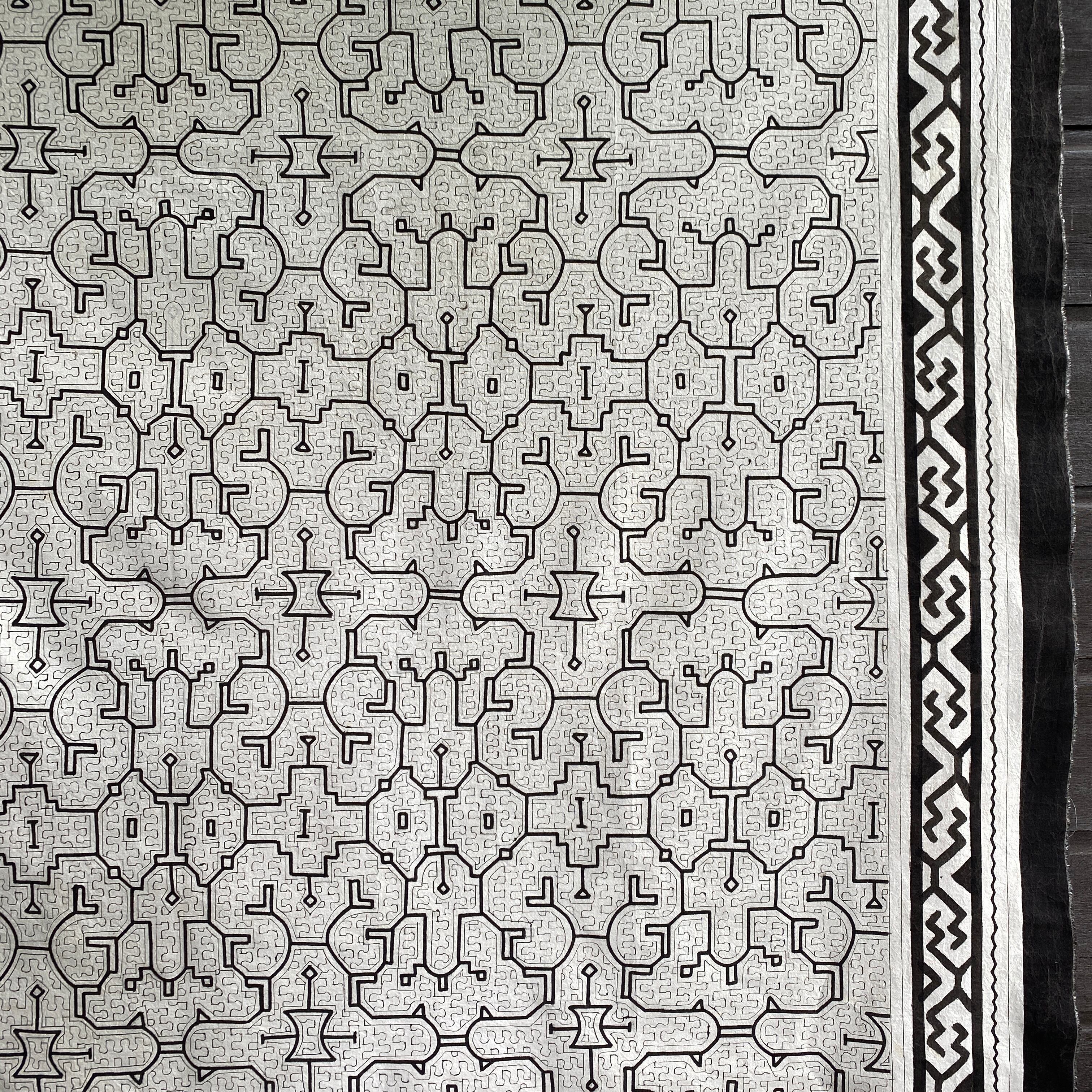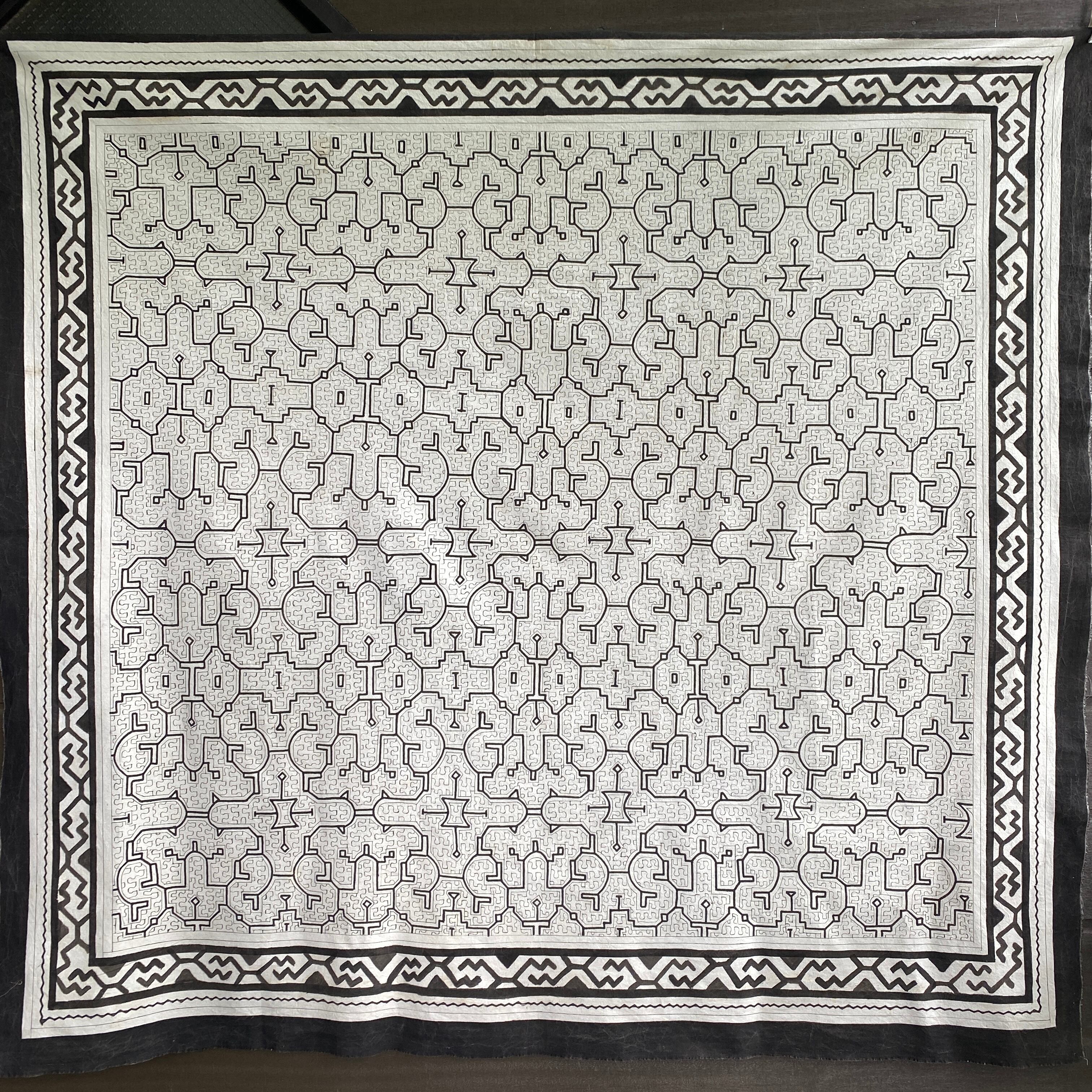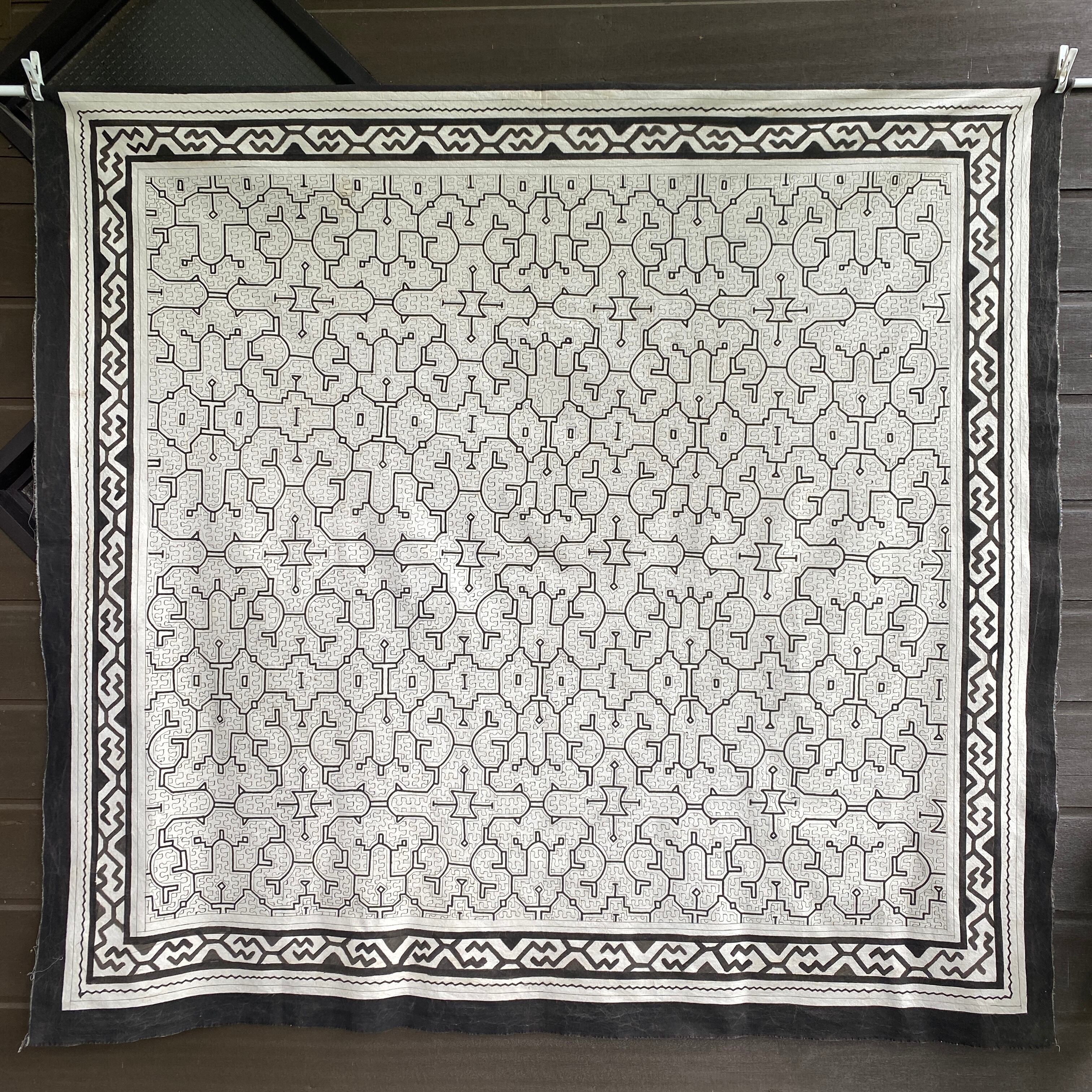 24⭕️大判白T5 AAA 大きめ153x162cm シピボ族の泥染め アマゾンの先住民族の工芸 インテリア、テーブルクロス、タペストリー、カーテン、マルチカバー | アマゾン屋 シピボ族の泥染めとバッグと雑貨