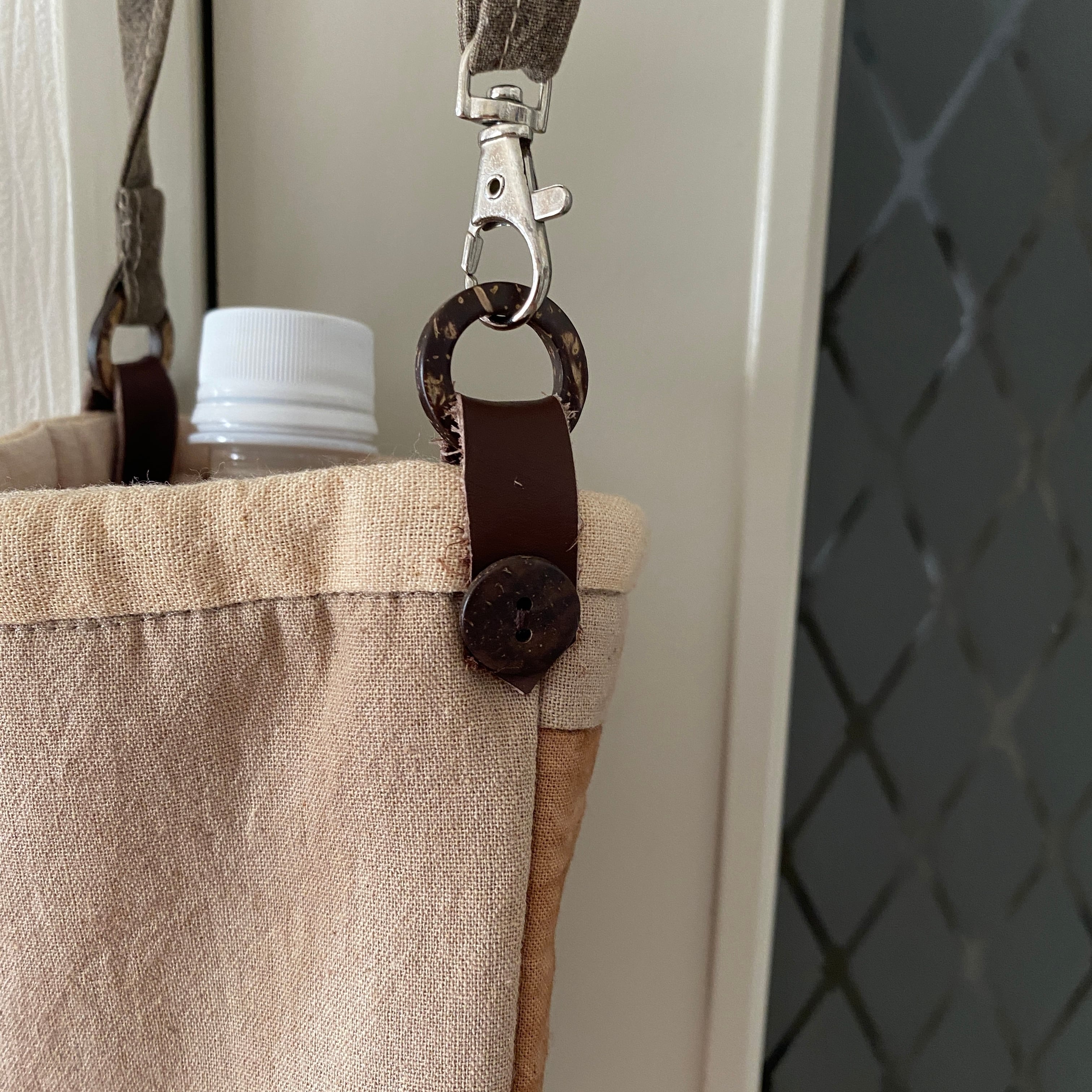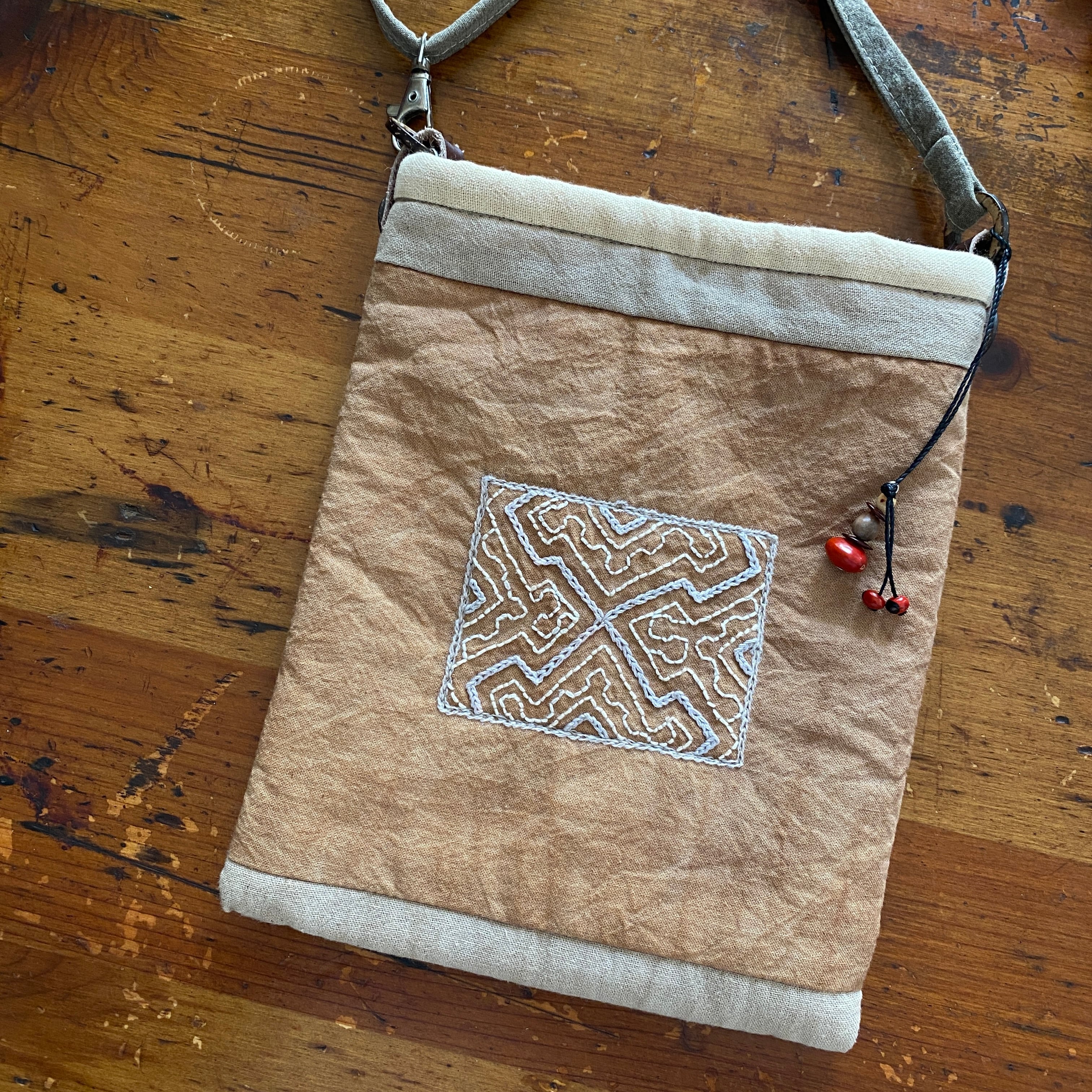 ポシェット36 泥染め刺繍ベージュ キルト入り草木染め