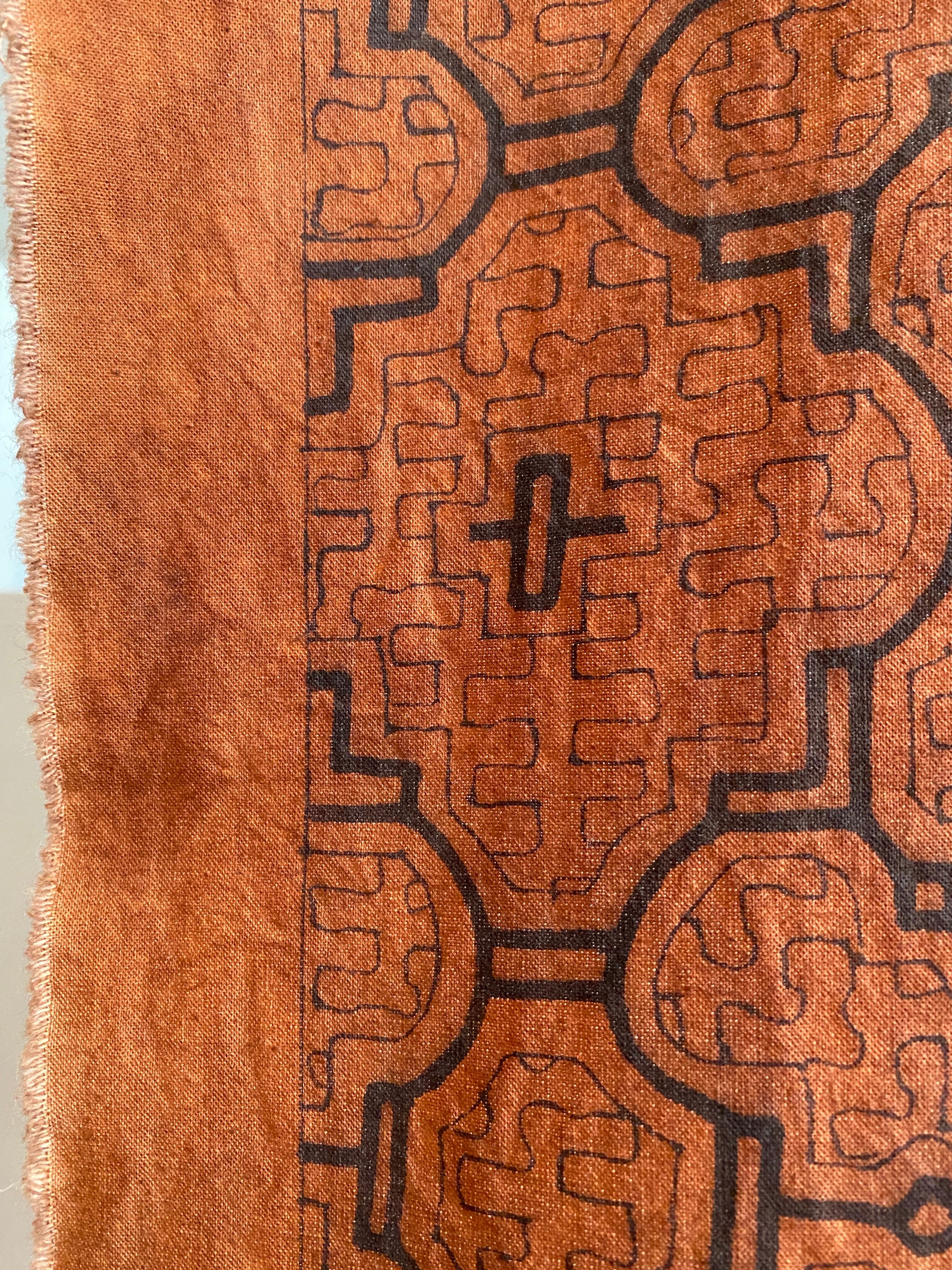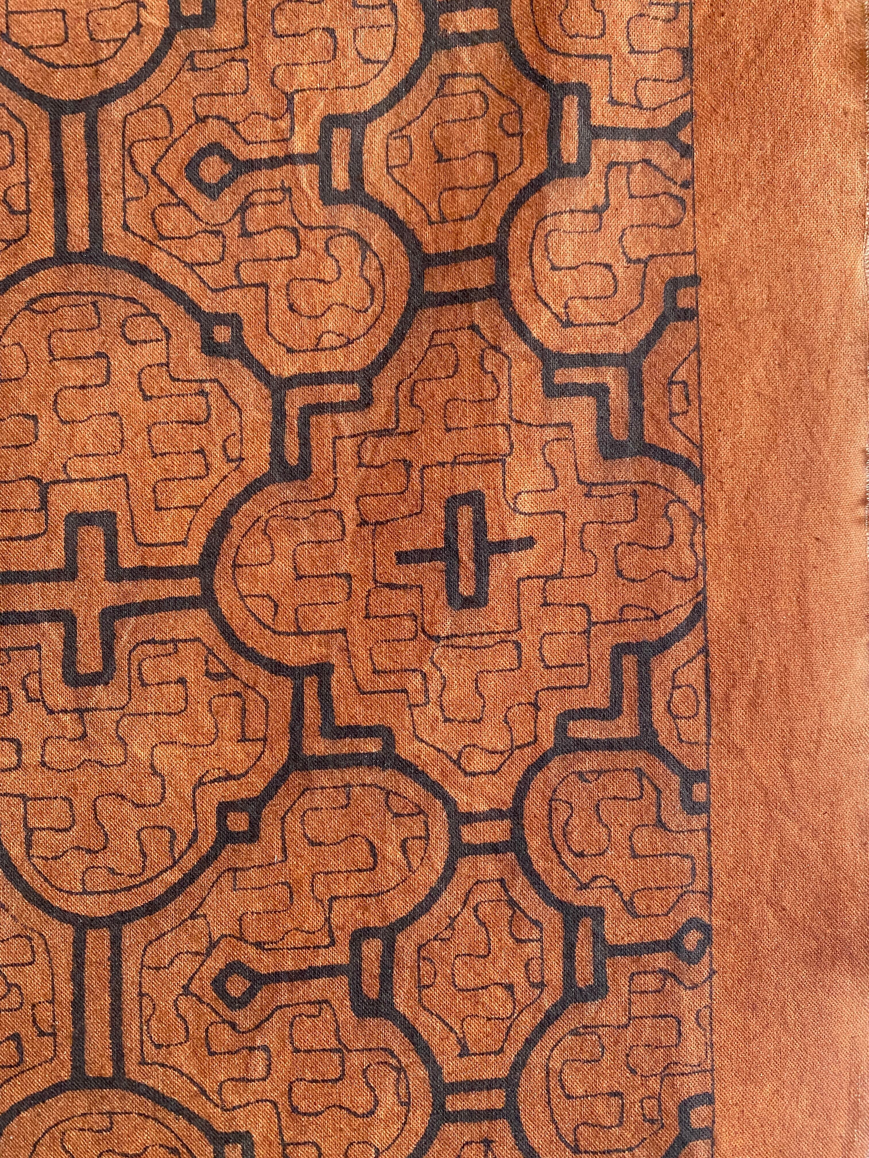16中型茶ハーフ 150x75 Te1 シピボ族の泥染め アマゾンの先住民族の工芸 キャンバス生地
