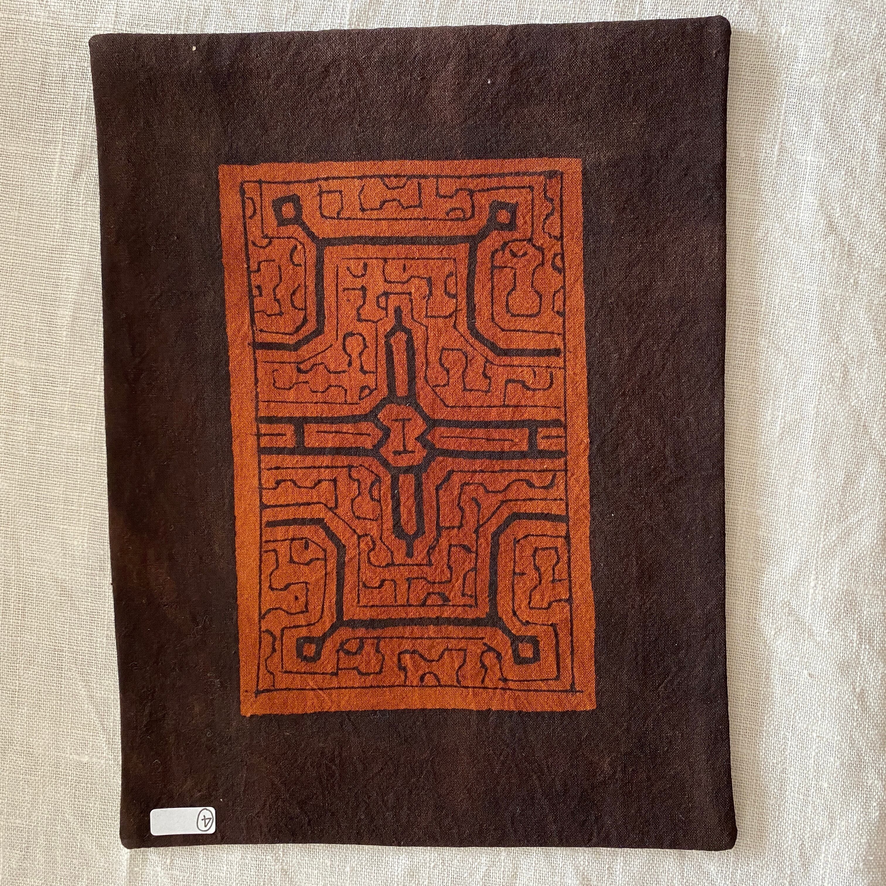 シピボ族の泥染めで、天然の色素を使用しています。サイズは20x25cmで、カフェでのティータイムや食卓でのプレイスマットとして最適です。また、小物を置くプレイスマットやコースターとしてもご利用いただけます。デザインも素朴で、額装してインテリアとして使用するのもおすすめです。