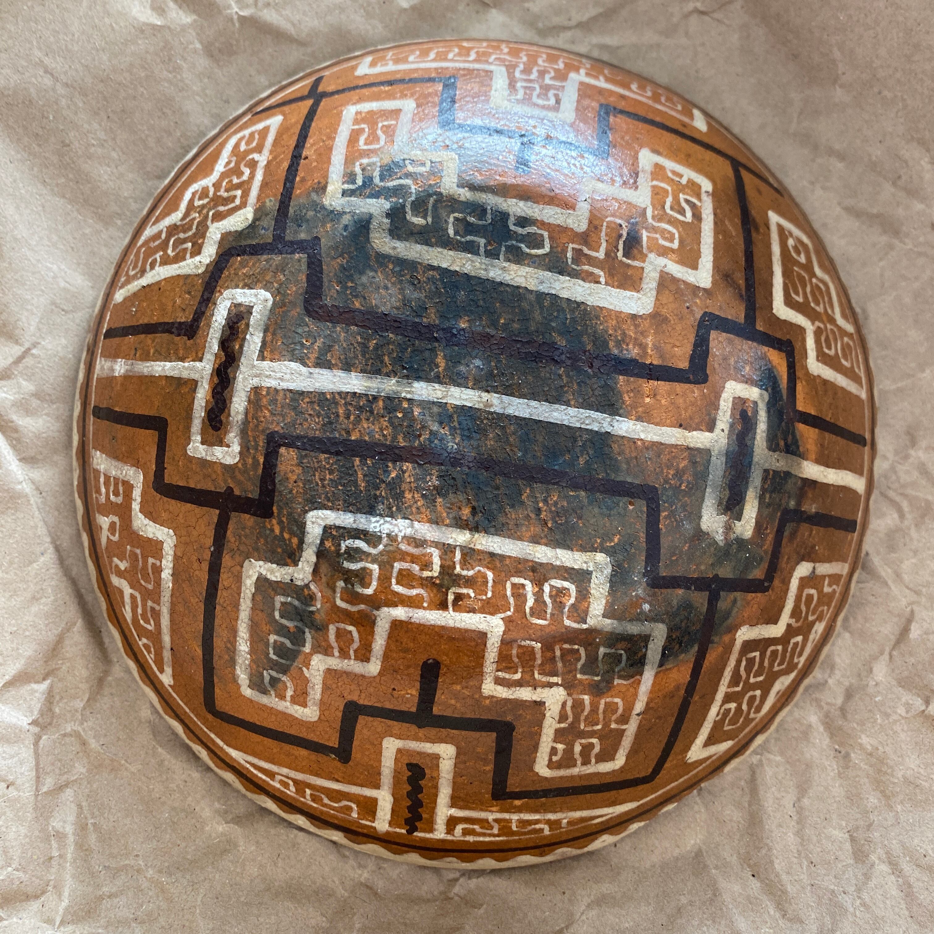 かなりお値打ちものです。シピボ族の素焼きの皿。南米ペルーアマゾン地域、プカルパ市のシピボ族の女性が1つ1つ素焼きで作る伝統工芸です。