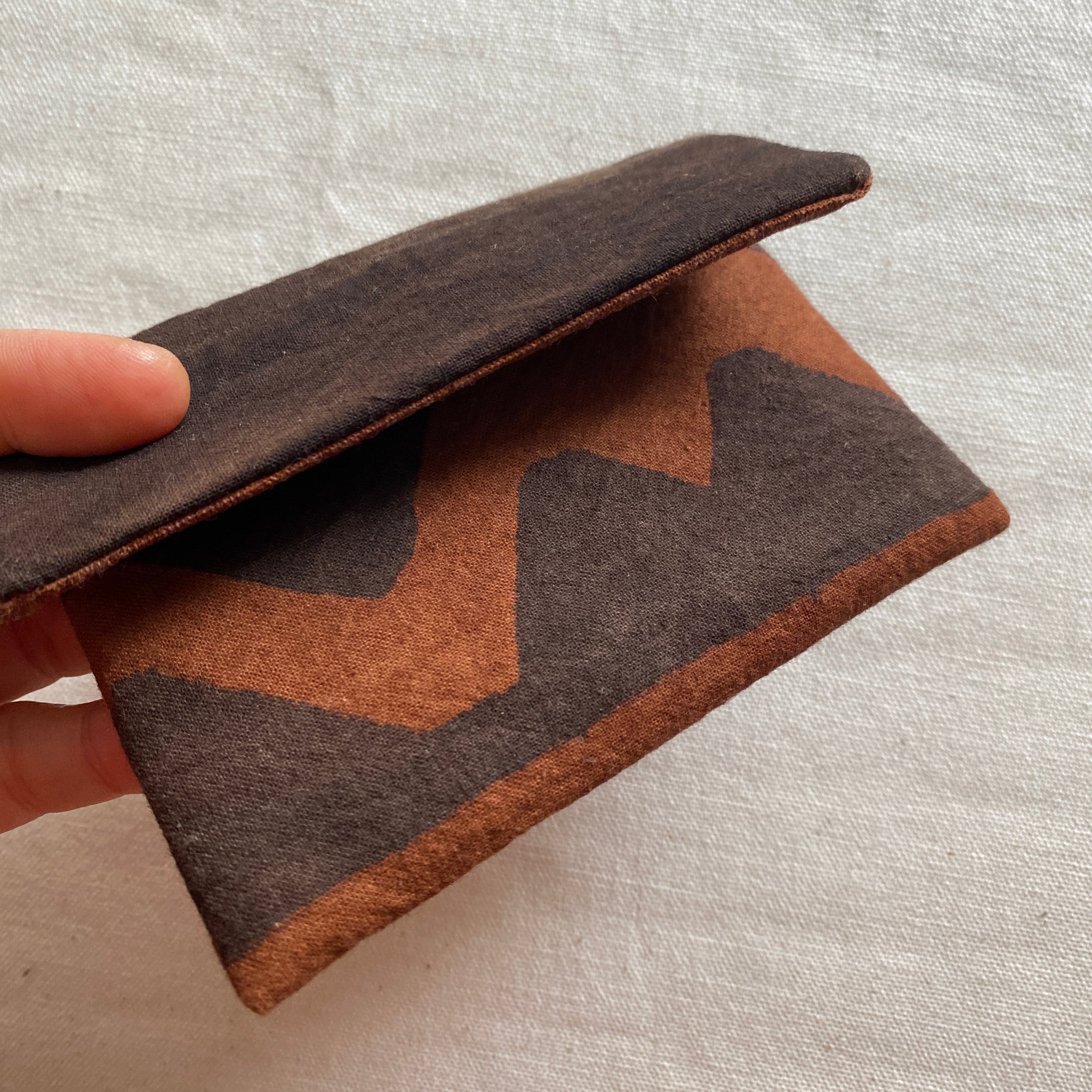 アマゾンの泥染めは、先住民族シピボ族の伝統工芸で、フリーハンドの幾何学模様を染める、希少価値の高い手工芸です。この布を使ってオーナー(AYACHI S)がバッグや布雑貨を手作りしています。 貴重な伝統工芸を少しでも長く作り続けて欲しいという想いから続けている活動です。