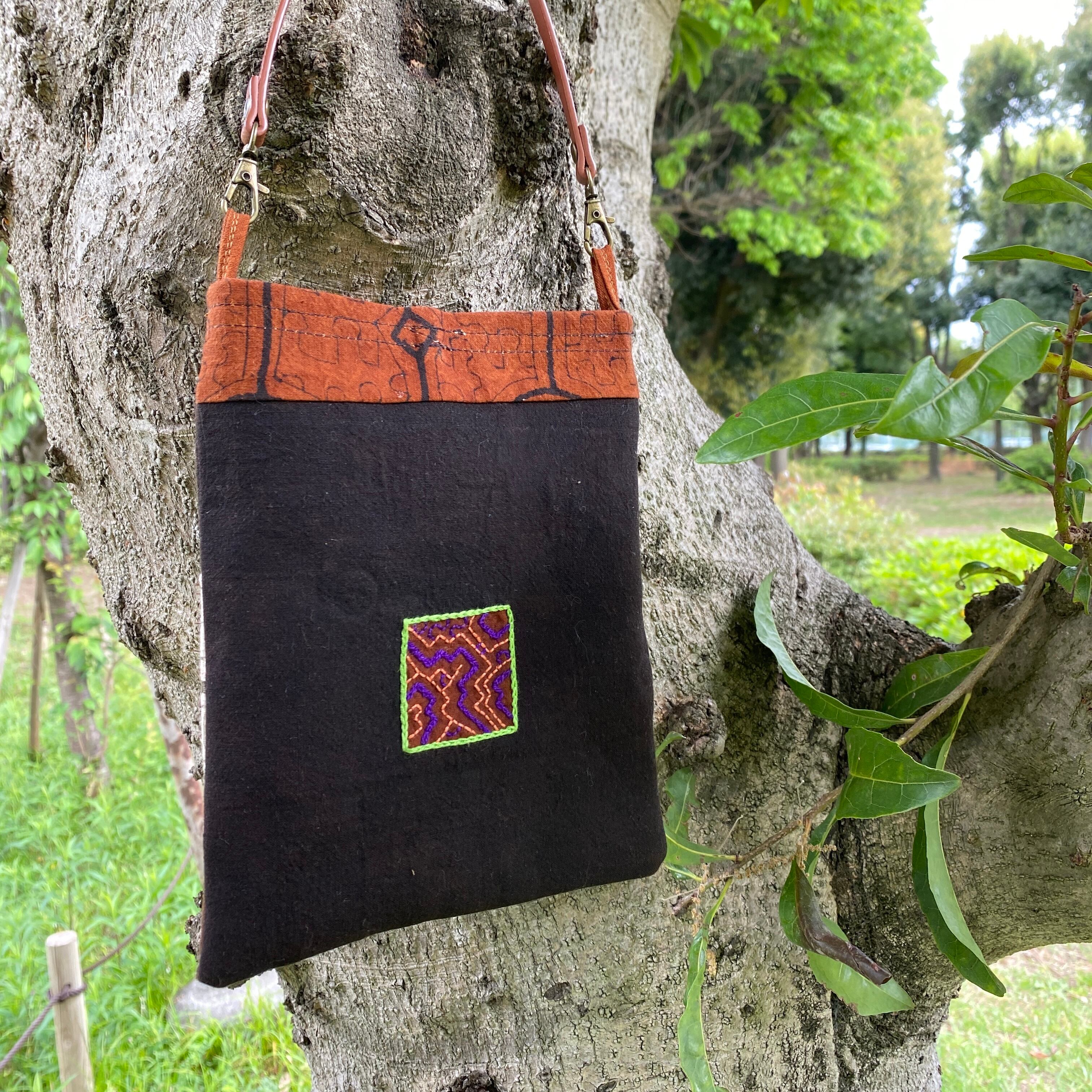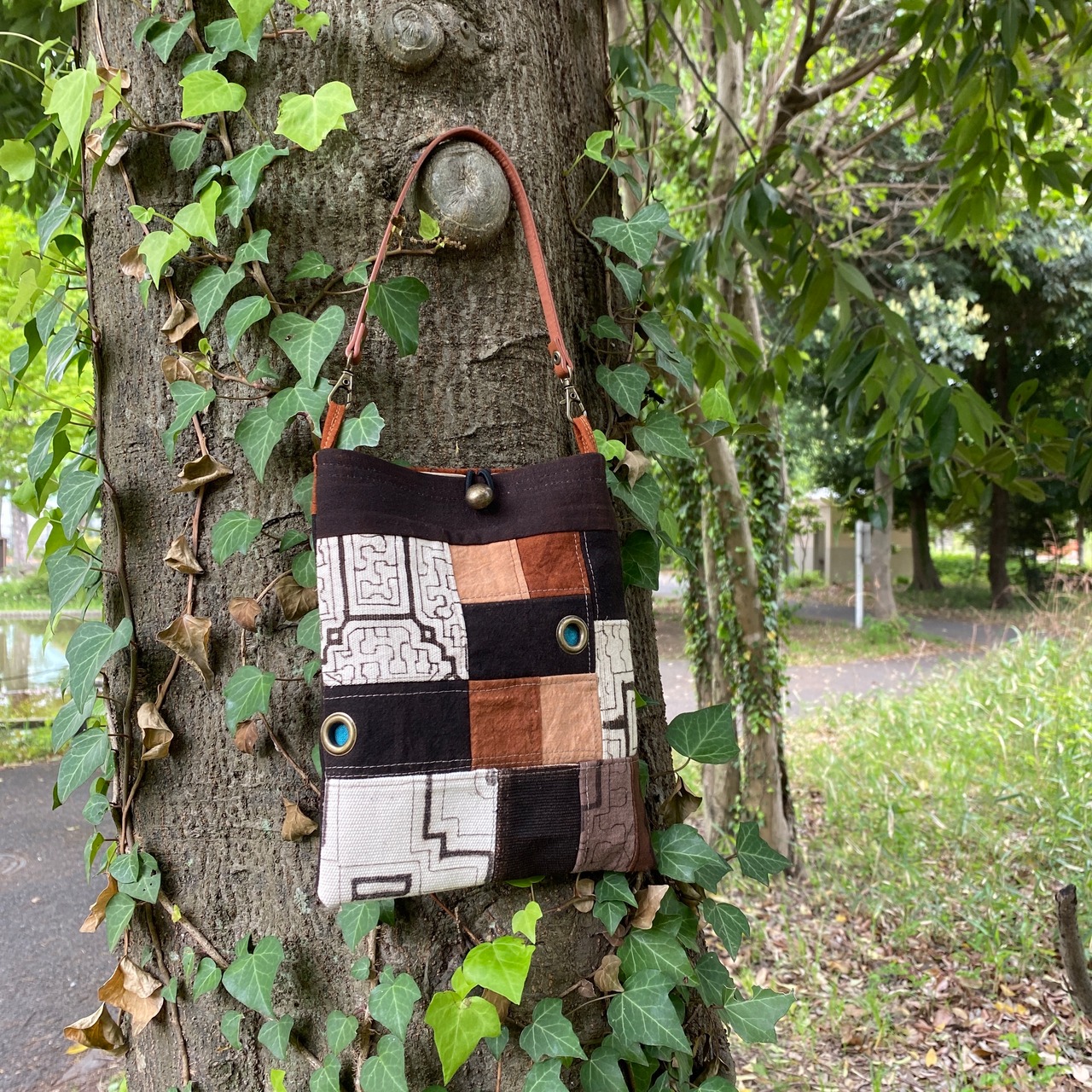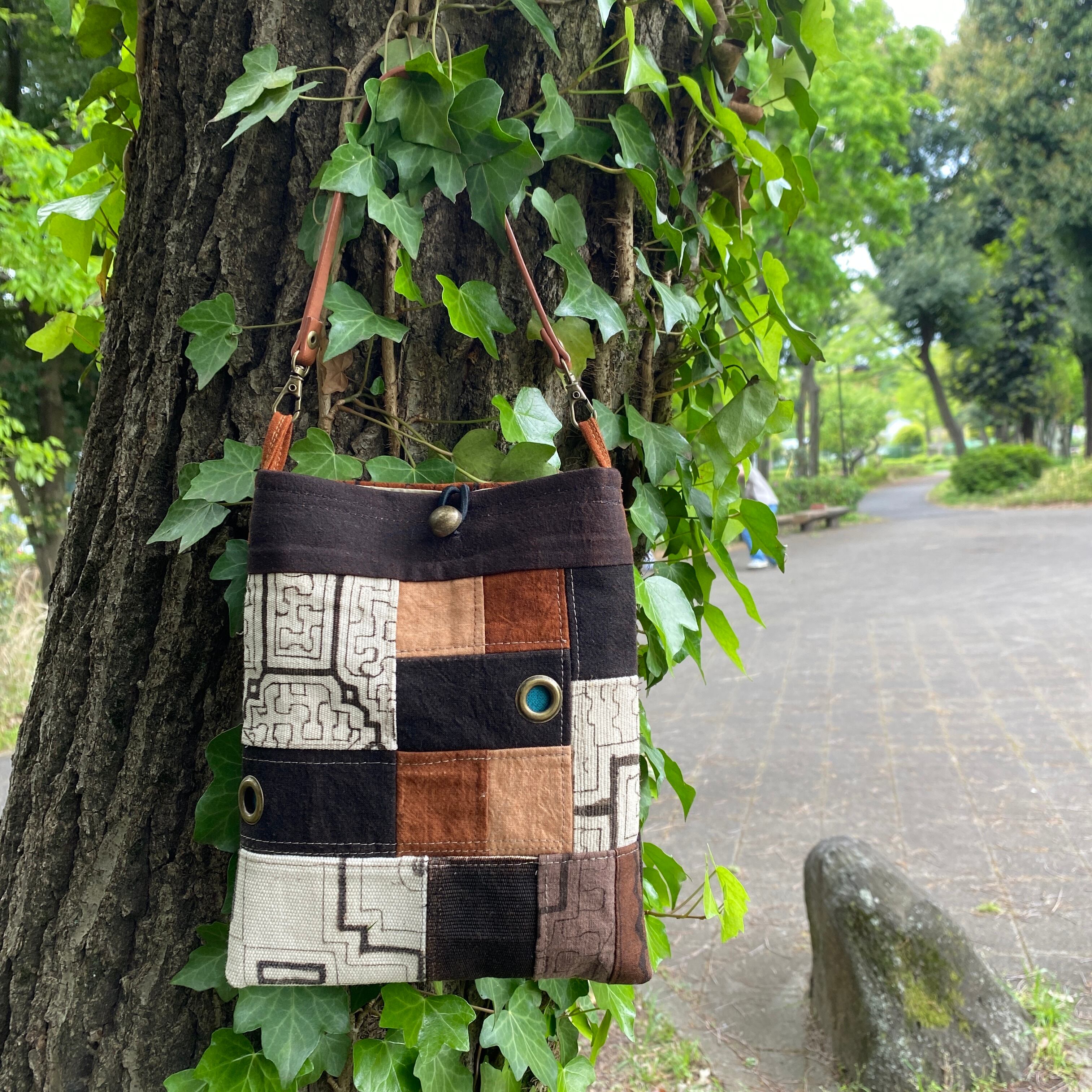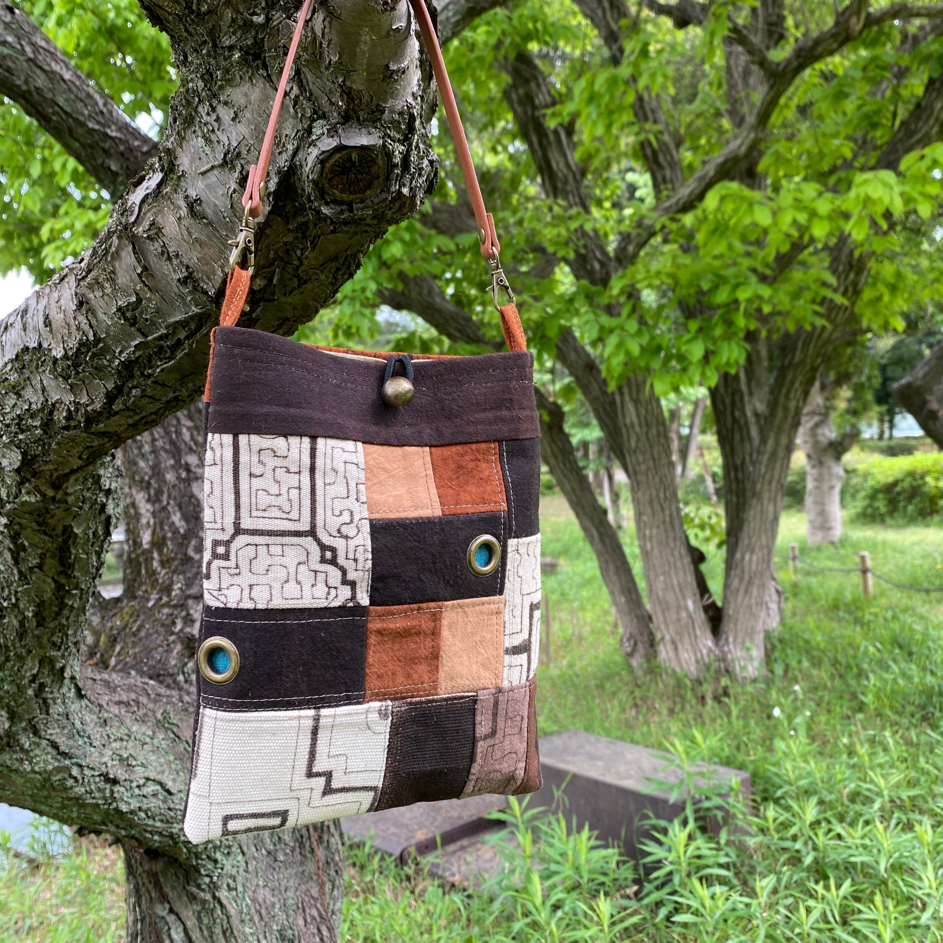 ポシェット51 帆布パッチワーク 裏ワンポ刺繍 リングハトメ